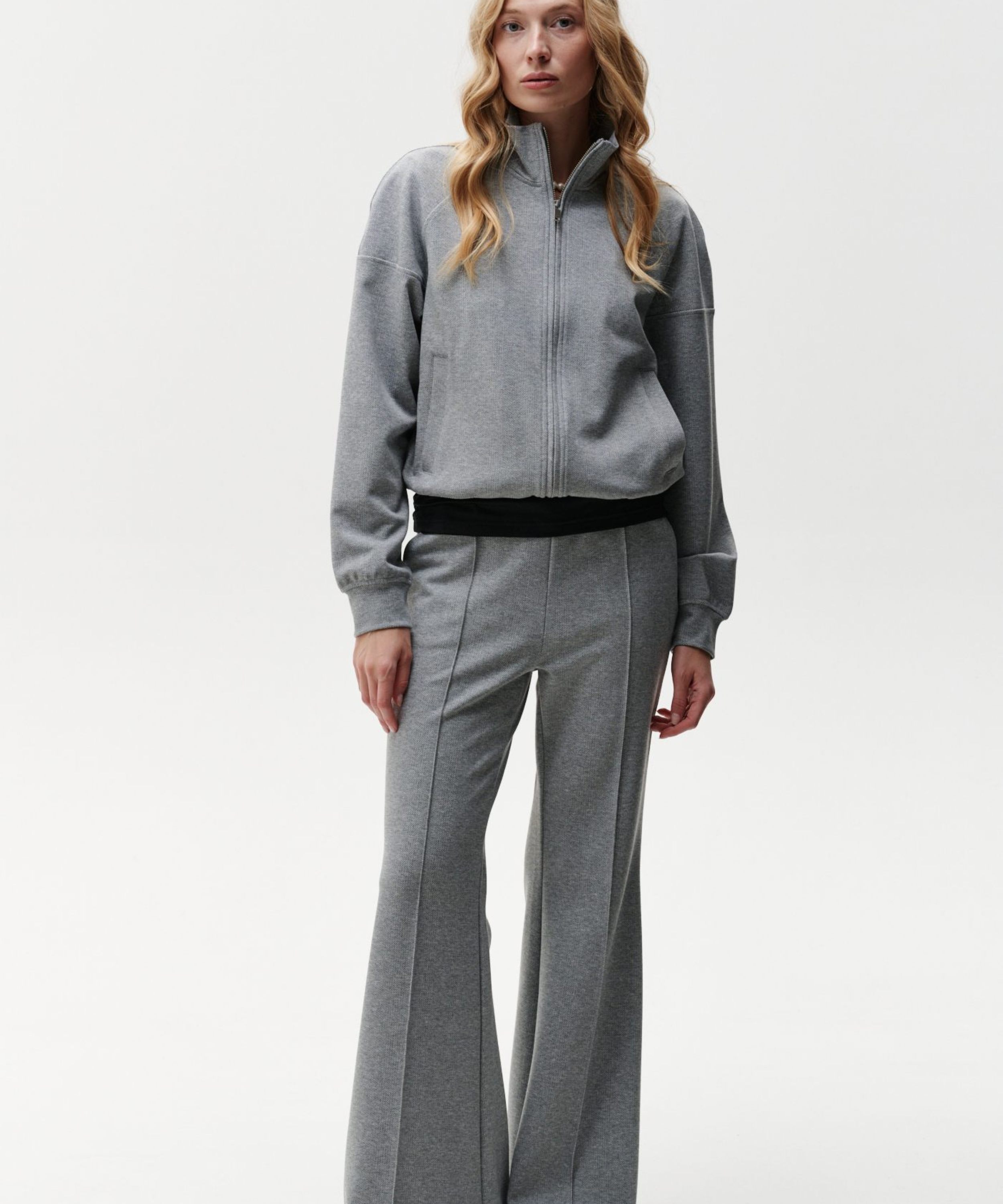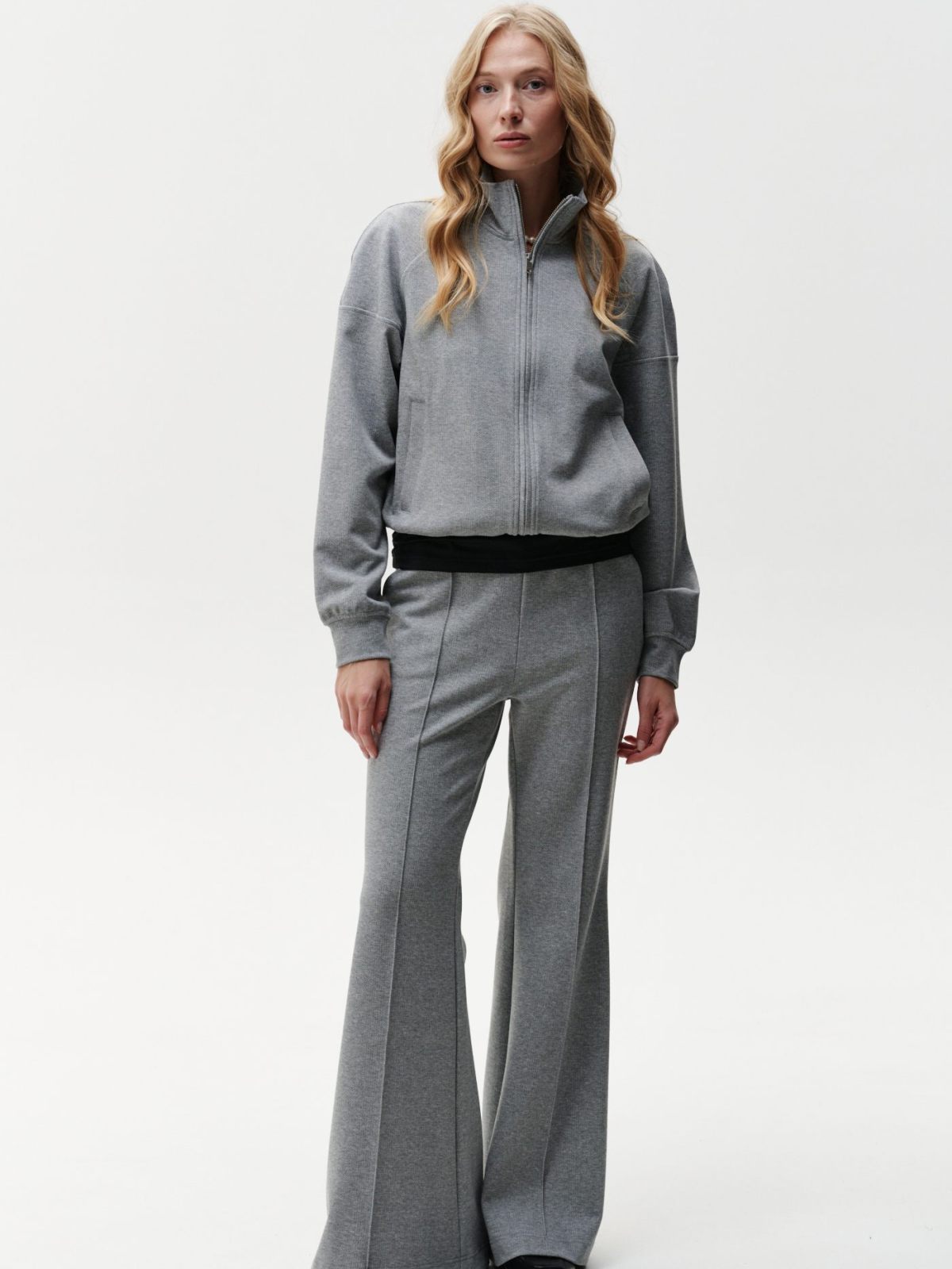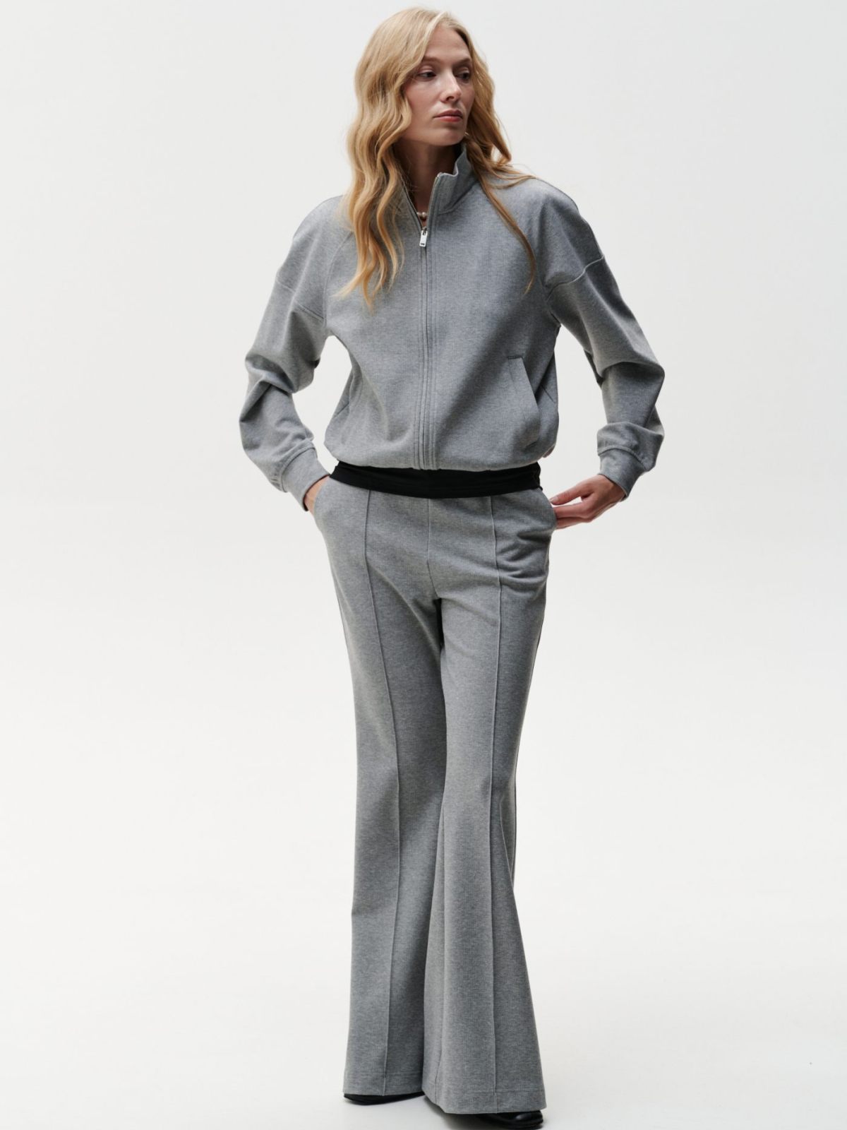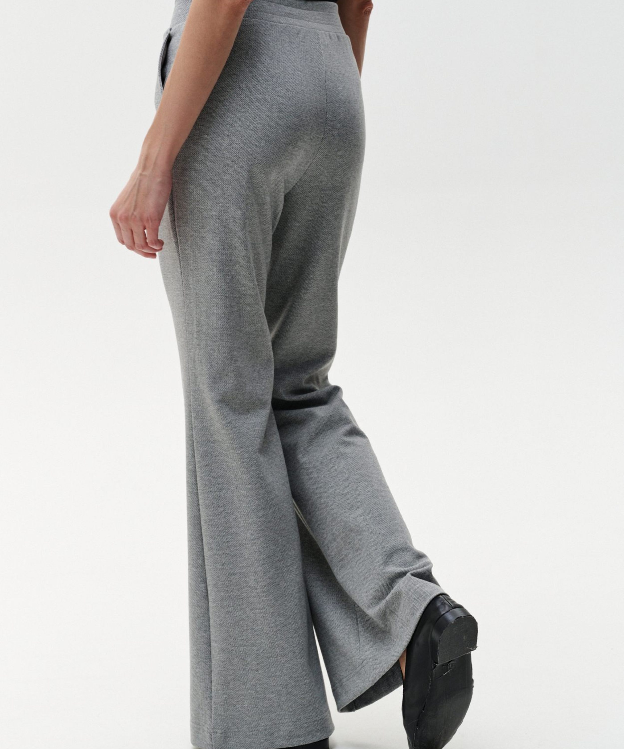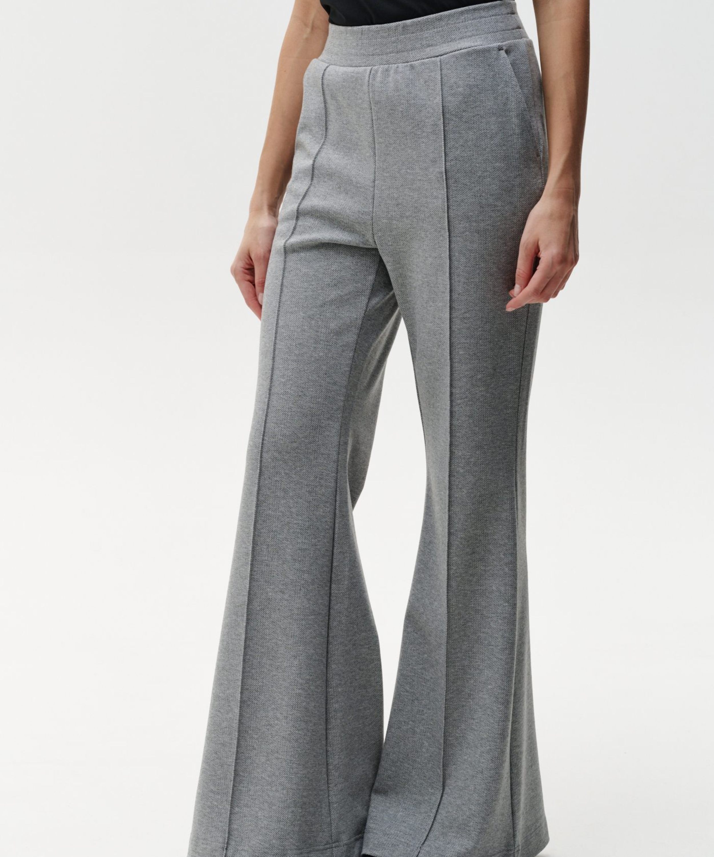 Брюки-клеш со стрелками "Моника" из коллекции Office Core в лаконичном сером меланже выполнены из материала, в составе которого преимущественно вискоза и нейлон, за счет чего материал гладкий и приятный на ощупь, слегка тянется, но при этом выглядит фактурно. Брюки имеют два боковых кармана и широкий пояс на резинке. К брюкам в ассортименте представлен джемпер "Моника" 2W2OC31E1-47GRY/MLG69. Костюм одинаково хорош как для офиса, так и для повседневной носки. Важно: материал имеет низкую пиллингуемость, но частое соприкосновение с аксессуарами может привести к образованию пилли.