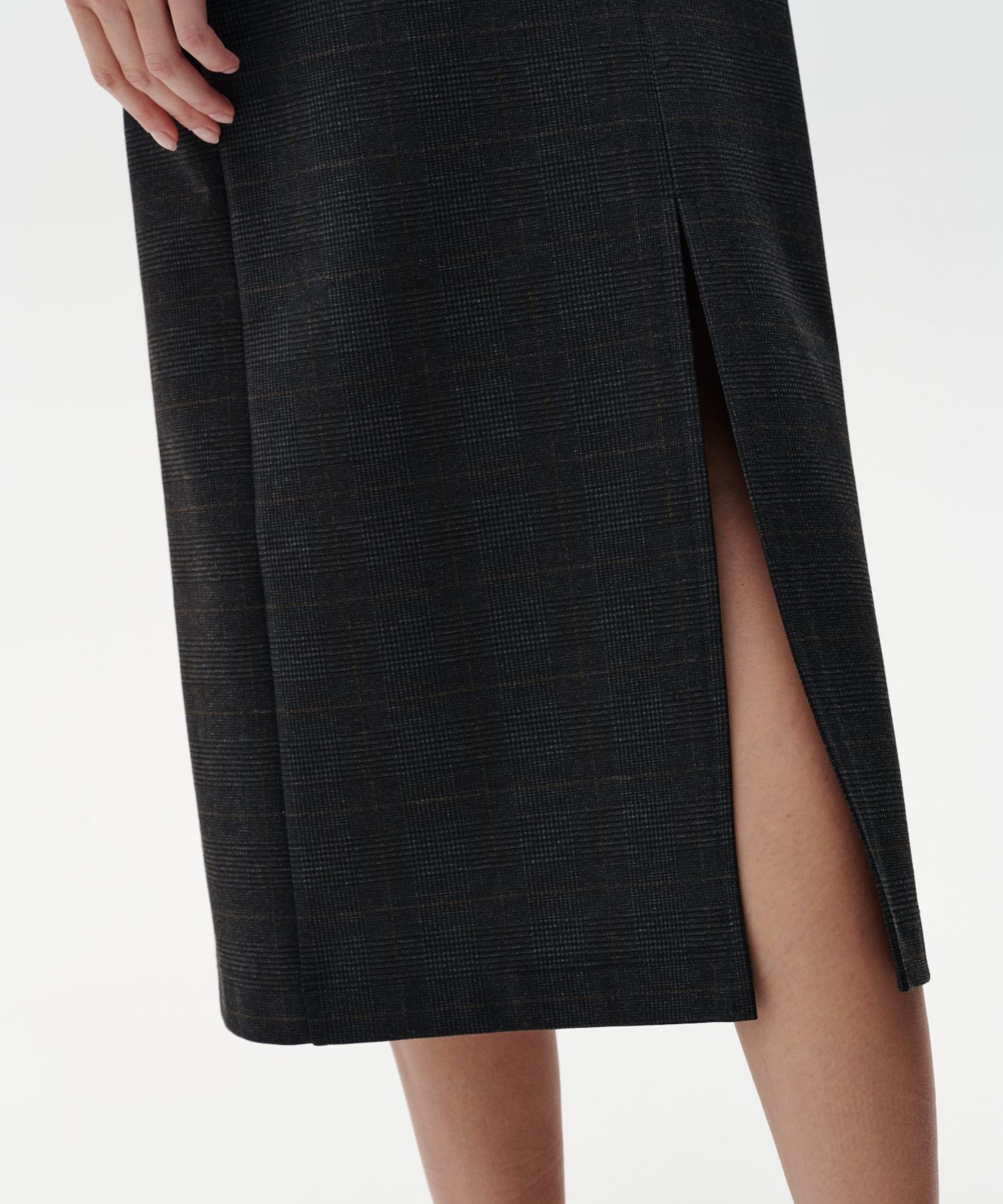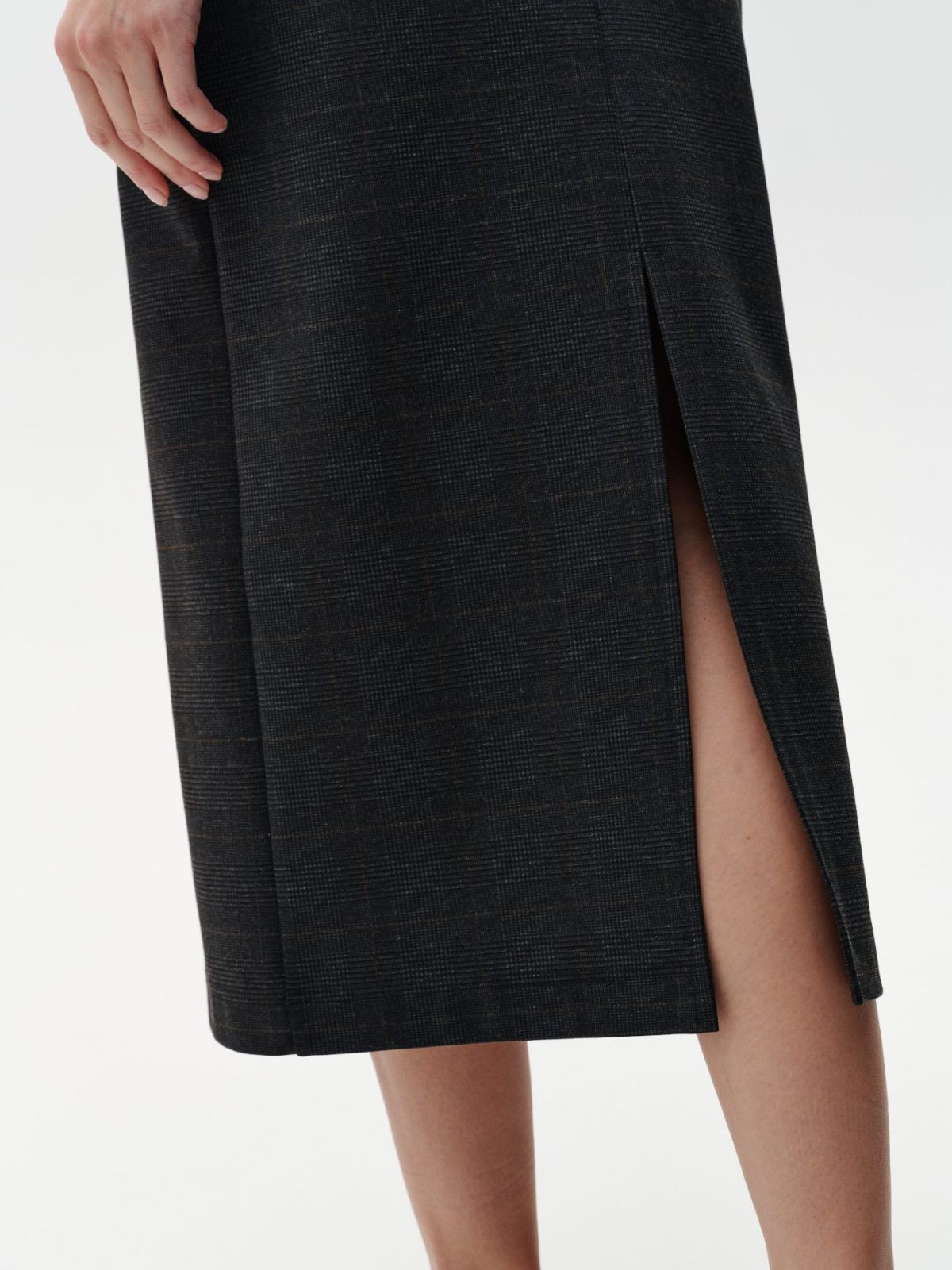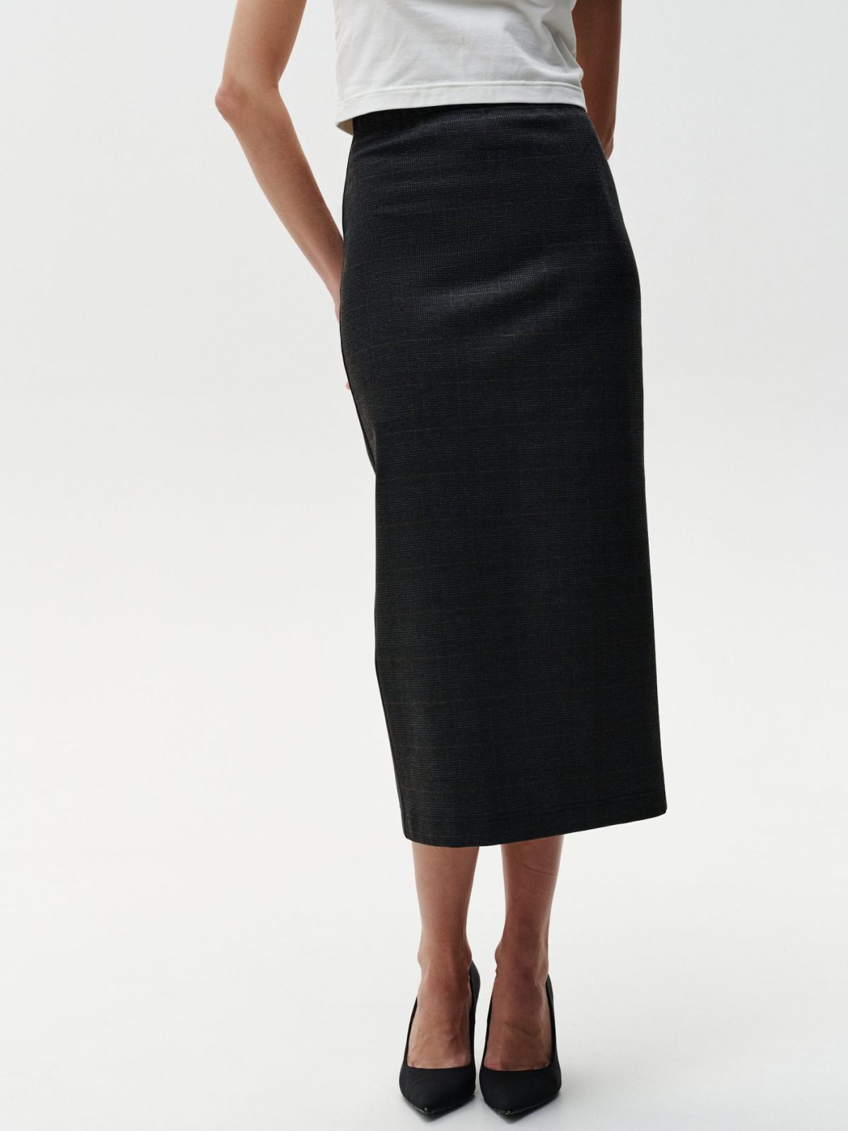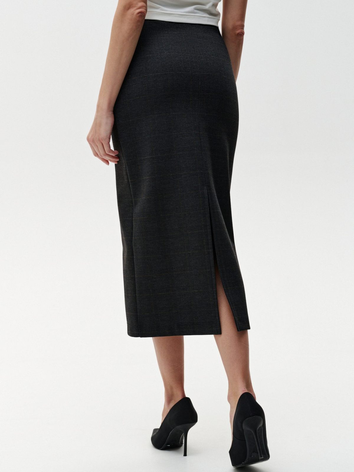 Удлиненная юбка-карандаш "Моника" из коллекции Office Core в трендовой приглушенной клетке. Материал - джерси, приятный на ощупь, гладкий, прочный и структурный, отлично держит форму. Пояс на резинке. Сзади имеется лаконичный разрез, что добавляет комфорта при ходьбе. Данная модель относится к костюму тройке "Моника", в который так же входят худи 2W3OC34E1-15MLT69 и жилетка 1W2OC21W-15MLT69. Костюм одинаково хорош как для офиса, так и для повседневной носки.