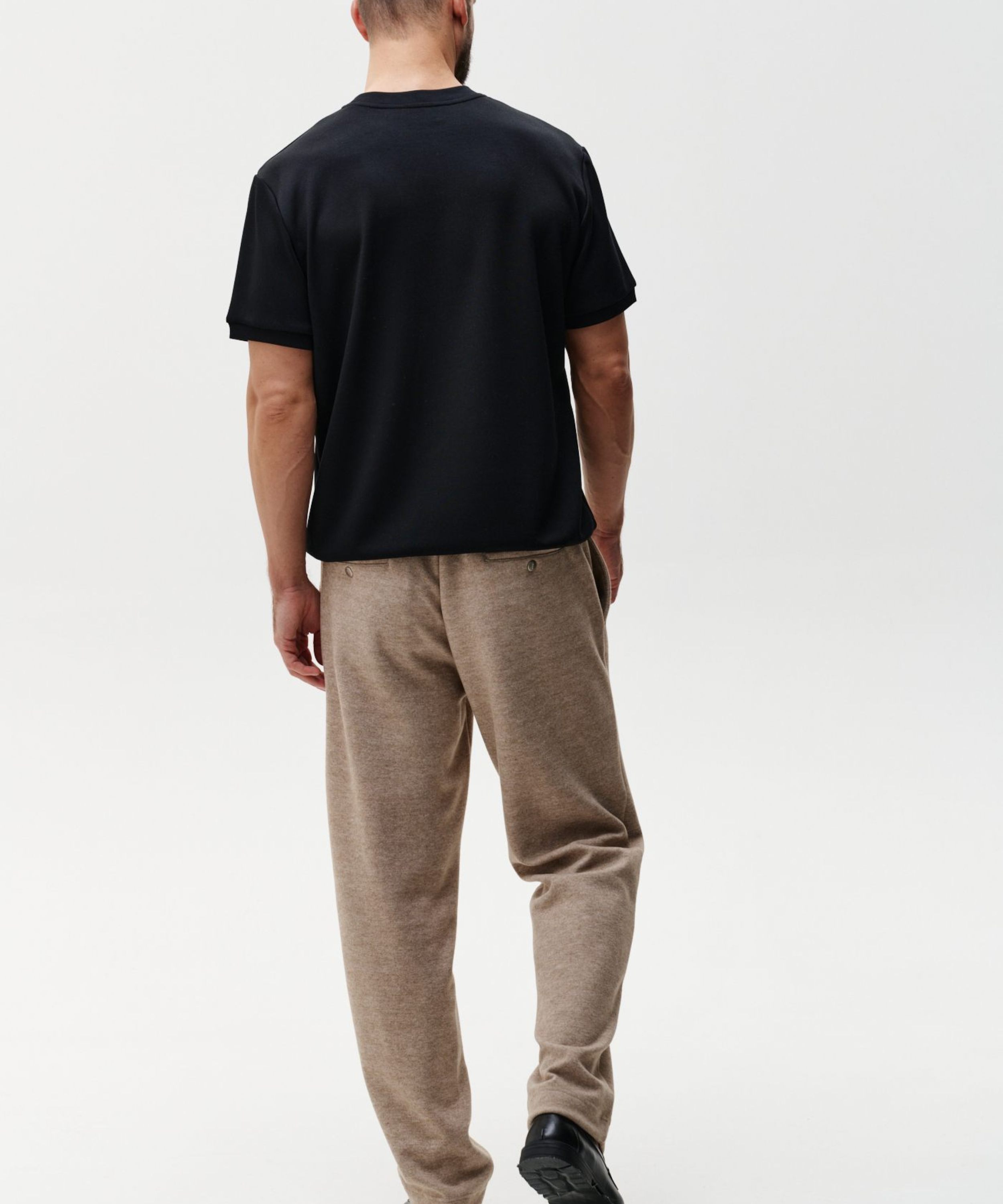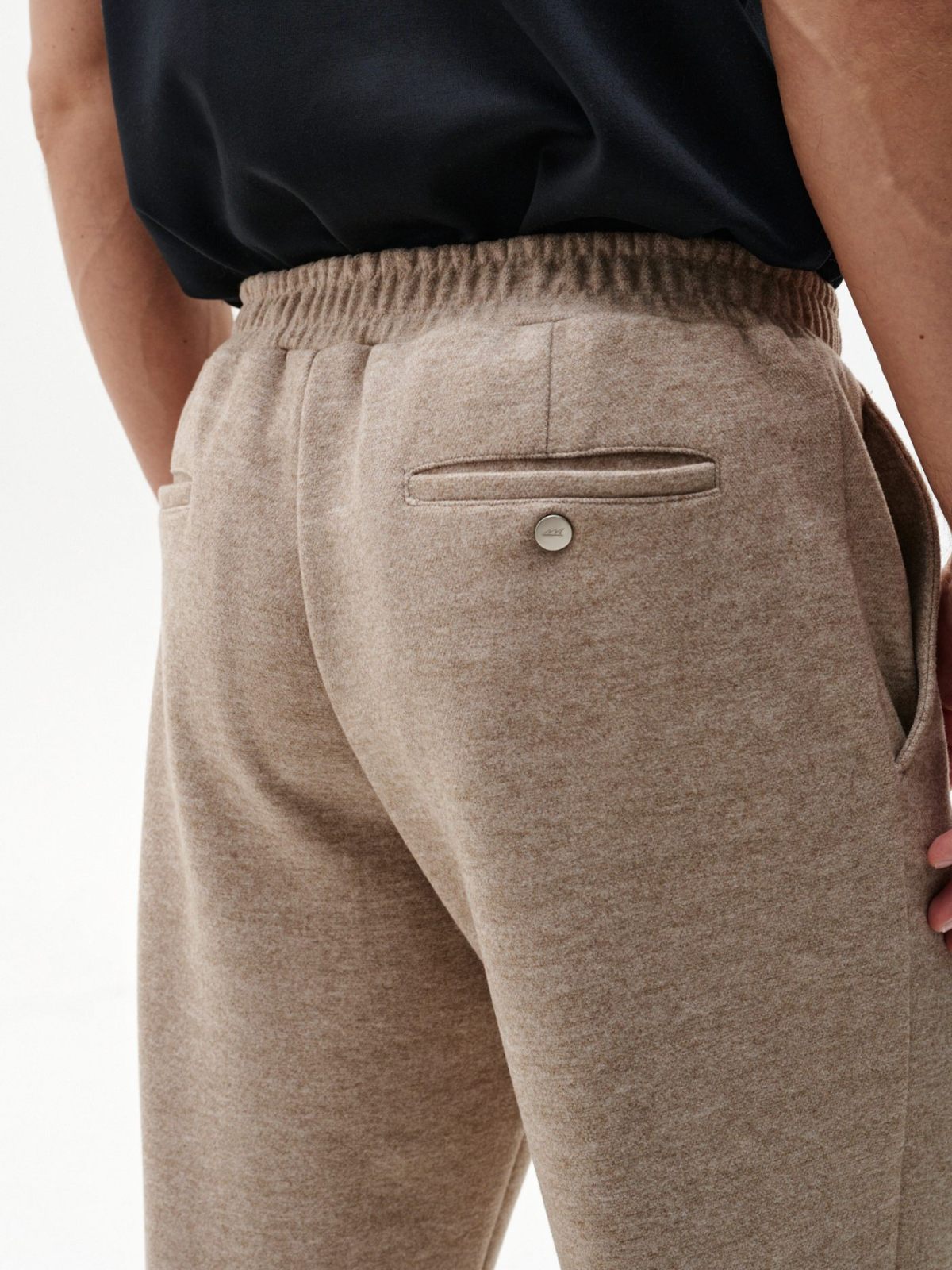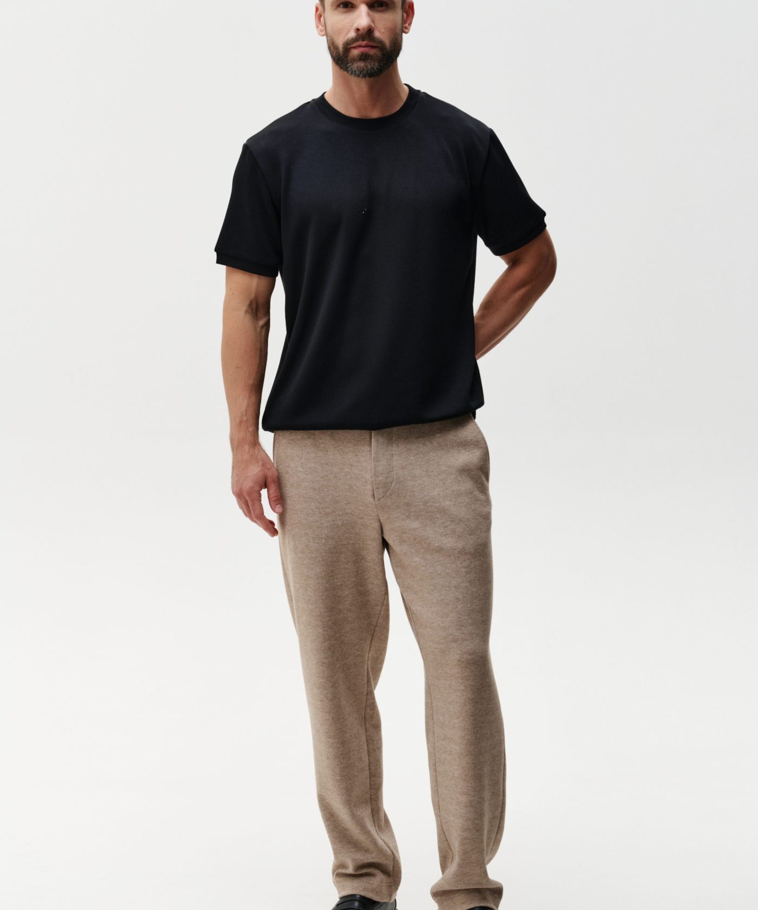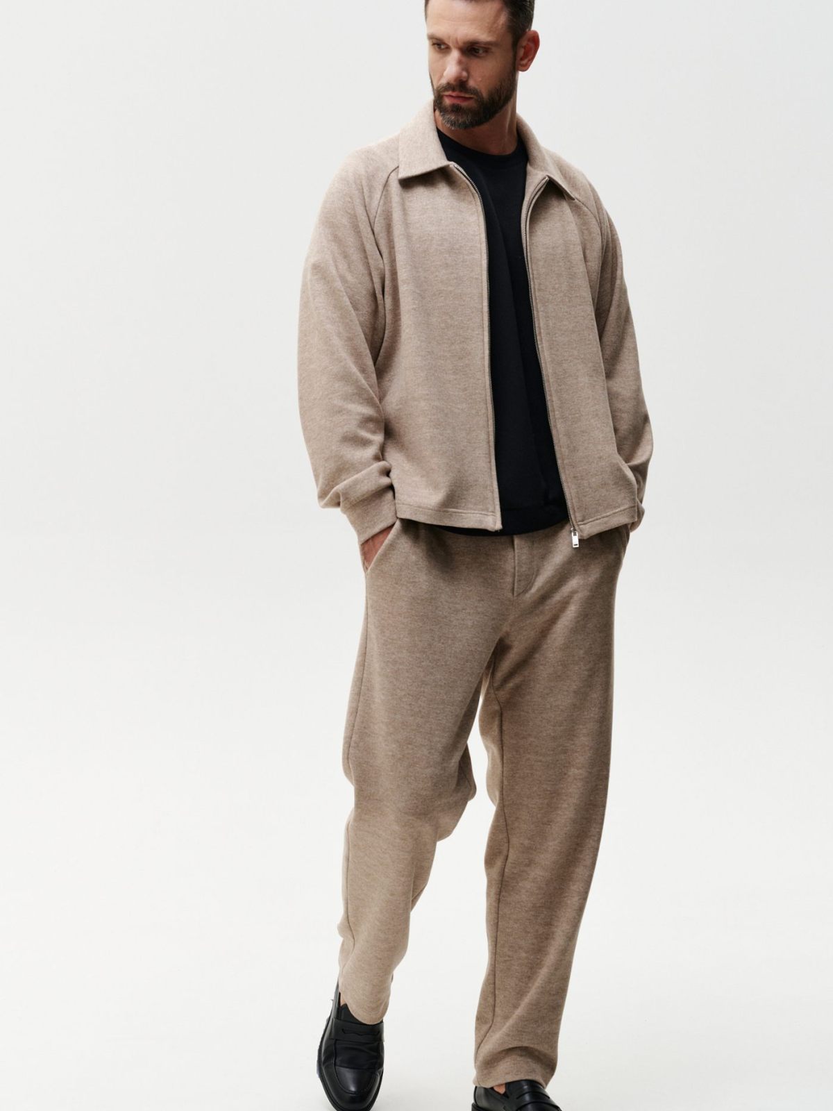 Брюки прямого кроя из коллекции Softwear выполнены из мягкого и теплого материала, в составе которого, преимущественно, вискоза, за счет чего материал гладкий и приятный на ощупь, слегка тянется, но при этом выглядит фактурно. Брюки имеют два боковых кармана, два задних кармана на кнопках, пояс на резинке и кнопке. К брюкам в ассортименте представлены джемпер "Эхо" 2M4SW31E1-25BGE/MLG86 и худи "Эхо" 2M4SW34E1-25BGE/MLG12. Важно: материал имеет низкую пиллингуемость, но частое соприкосновение с аксессуарами может привести к образованию пилли.