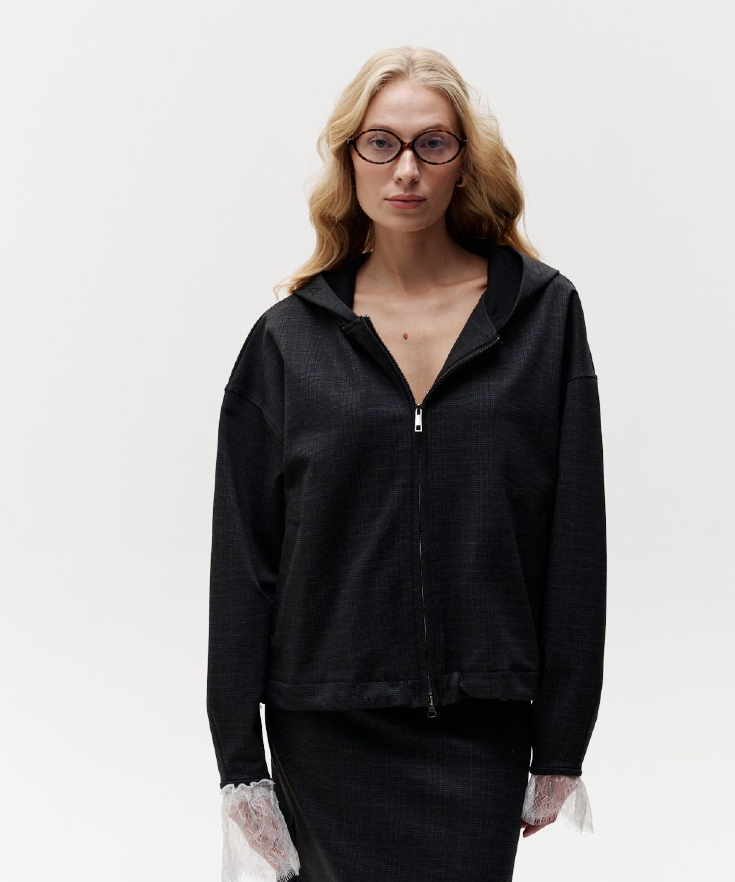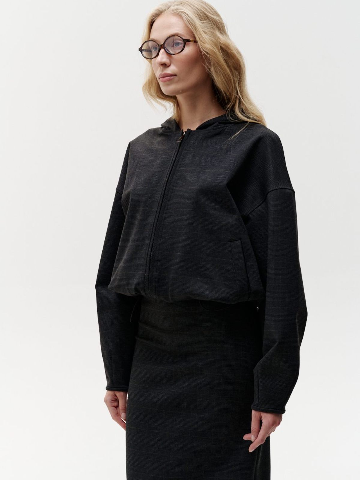 Худи "Моника" из коллекции Office Core в трендовой приглушенной клетке. Материал - джерси, приятный на ощупь, гладкий, прочный и структурный, отлично держит форму. Худи имеет два боковых кармана, корд-систему по низу для стилизации и регулировки, лаконичную тональную вышивку на капюшоне с логотипом бренда и двухзамковую брендированную молнию. Данная модель относится к костюму тройке "Моника", в который так же входят юбка-карандаш 1W3OC123W-15MLT69 и жилетка 1W2OC21W-15MLT69. Костюм одинаково хорош как для офиса, так и для повседневной носки.