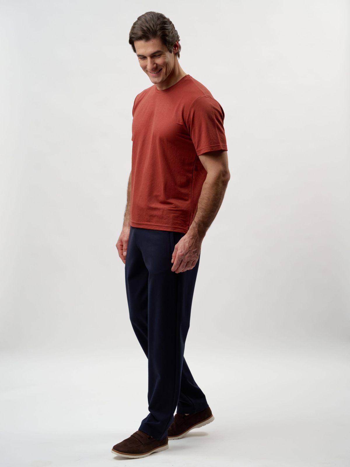 Футболка "Ричард" прямого кроя из коллекции Classic выполнена из жатого материала, в составе которого, преимущественно, вискоза. Футболка очень приятная к телу. По низу футболки на боковых швах есть небольшие разрезы. Универсальная, лаконичная и незаменимая база для вашего гардероба. Представлена в двух трендовых оттенках: кирпичный и оливковый. Важно: материал имеет низкую пиллингуемость, но частое соприкосновение с аксессуарами может привести к образованию пилли.