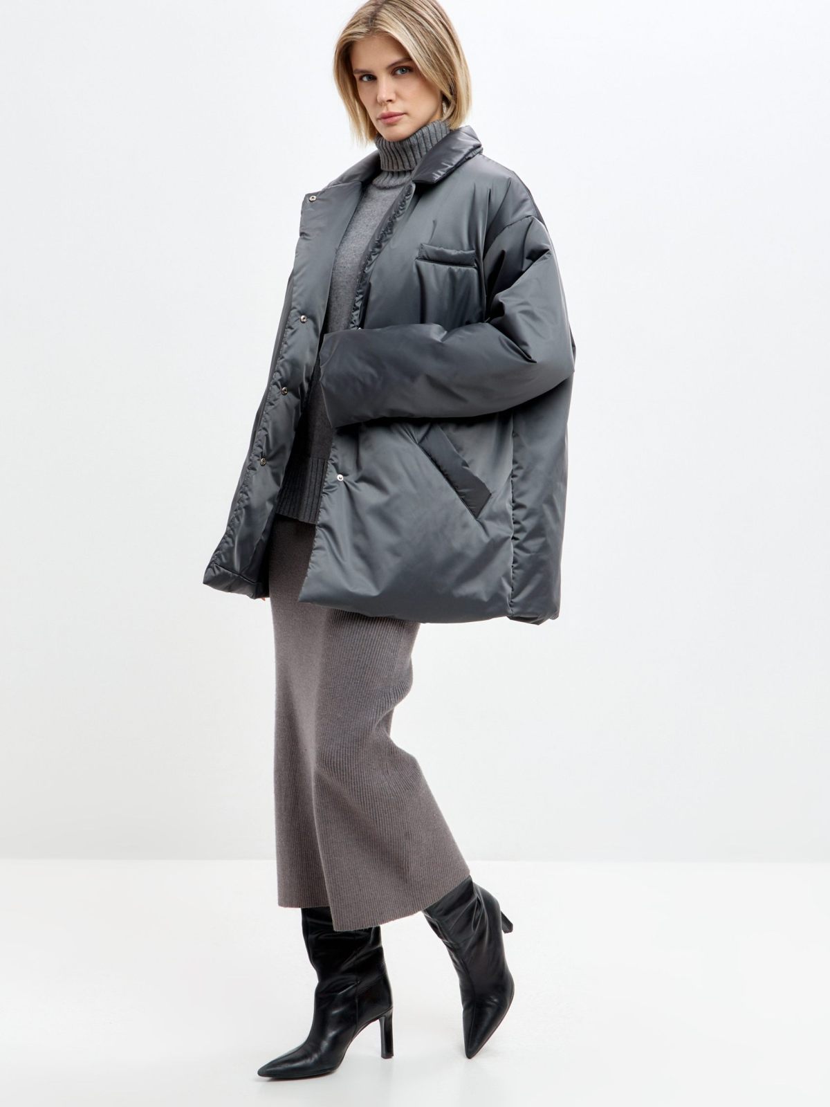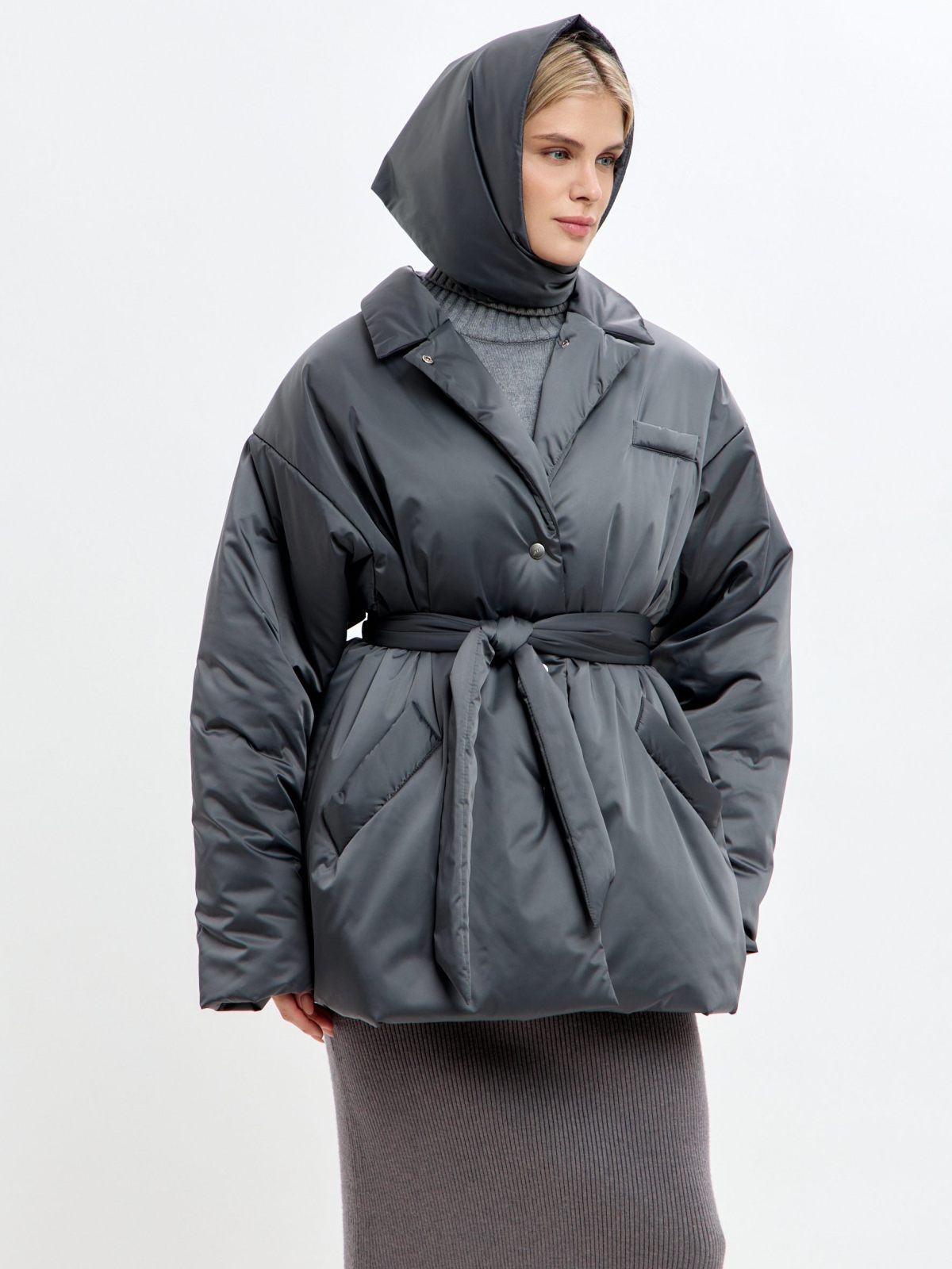 Утепленное пальто Oversize "Ксю" на кнопках и поясе. Пальто не имеет шлевок, что позволяет носить его без пояса, но в то же время на поясе есть кнопка, с помощью которой можно прикрепить его к пальто, чтобы не потерять. Пальто рассчитано на городскую зиму с температурой до -17гр. Утеплитель Тинсулейт очень легкий, воздушный и эластичный, за счет чего пальто кажется легким и мягким, как облачко, но при этом инновационные свойства данного утеплителя делают его очень теплым, его преимущество - это максимум тепла и минимум веса. Не вызывает аллергии, подходит людям с чувствительной кожей. Пальто имеет два больших кармана. В ассортименте к пальто представлены утепленные косынки 1W8PR143W. Комплекты выполнены в трех трендовых оттенках: ледяной голубой, ртуть и золото.