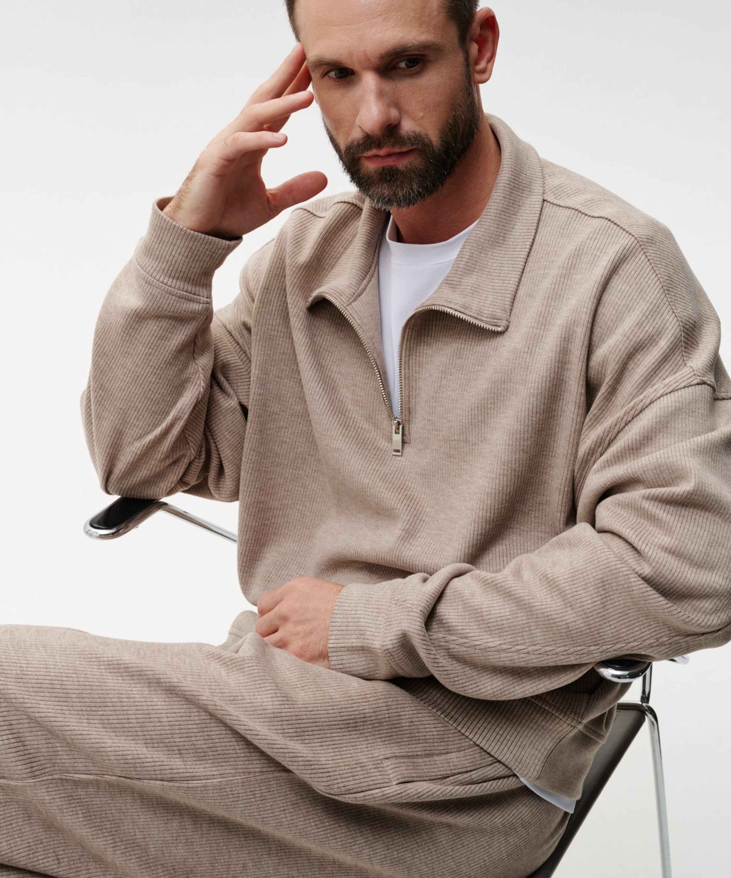 Джемпер "Миша" свободного кроя с воротником-стойкой на молнии из коллекции Softwear выполнен из материала, в составе которого, преимущественно, вискоза и нейлон, за счет чего материал гладкий и приятный на ощупь, слегка тянется, но при этом выглядит фактурно. Расслабленный силуэт, спущенное плечо, дизайнерские линии по длине рукава, классический цвет полностью отражают эстетику коллекции Softwear. На спине сзади расположена лаконичная тональная вышивка с логотипом бренда. К джемперу в ассортименте представлены брюки "Эхо" 2M4SW84W. Невероятно комфортный, мягкий и стильный костюм на каждый день. Важно: материал имеет низкую пиллингуемость, но частое соприкосновение с аксессуарами может привести к образованию пилли.
