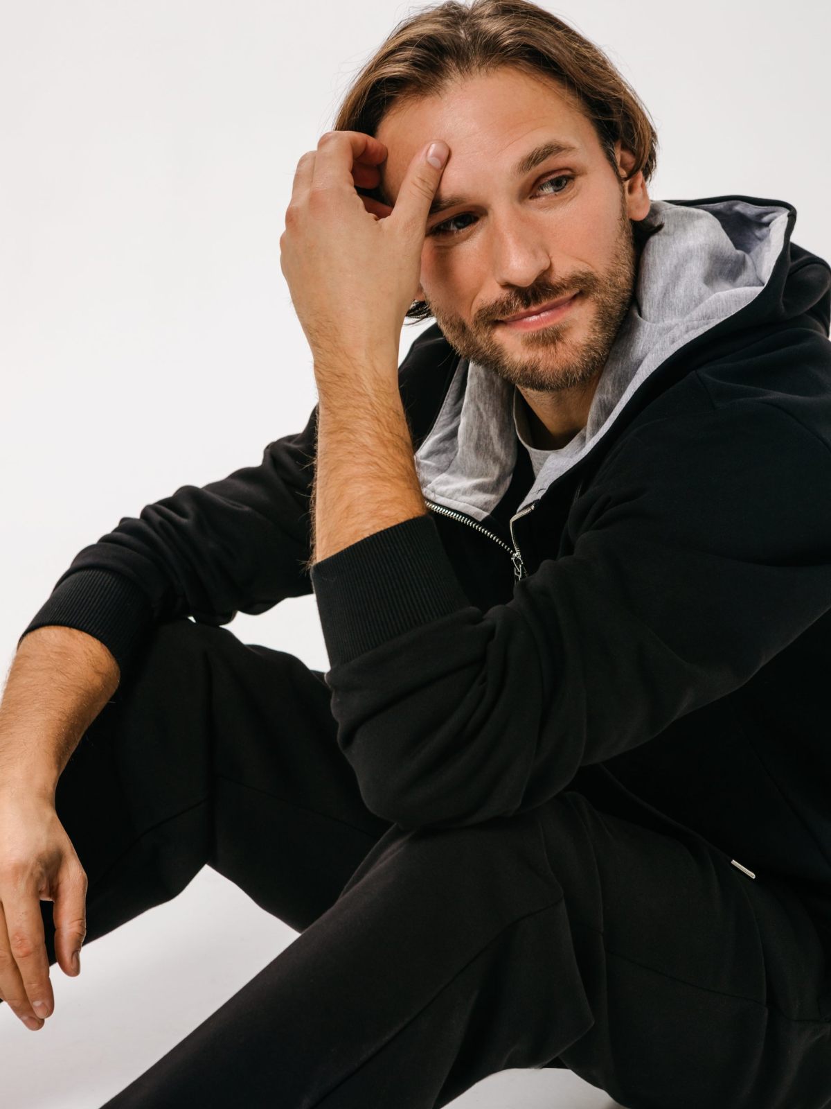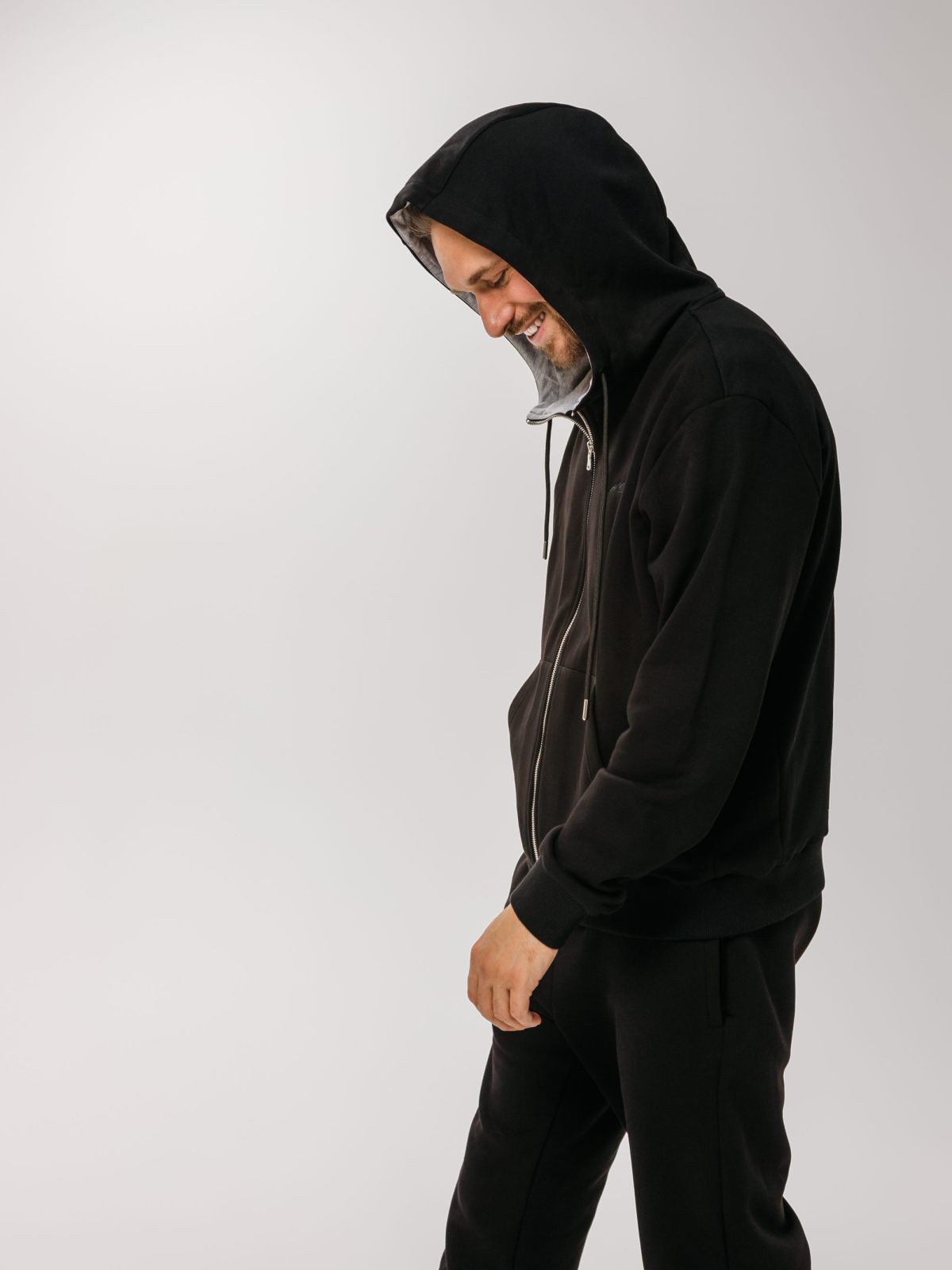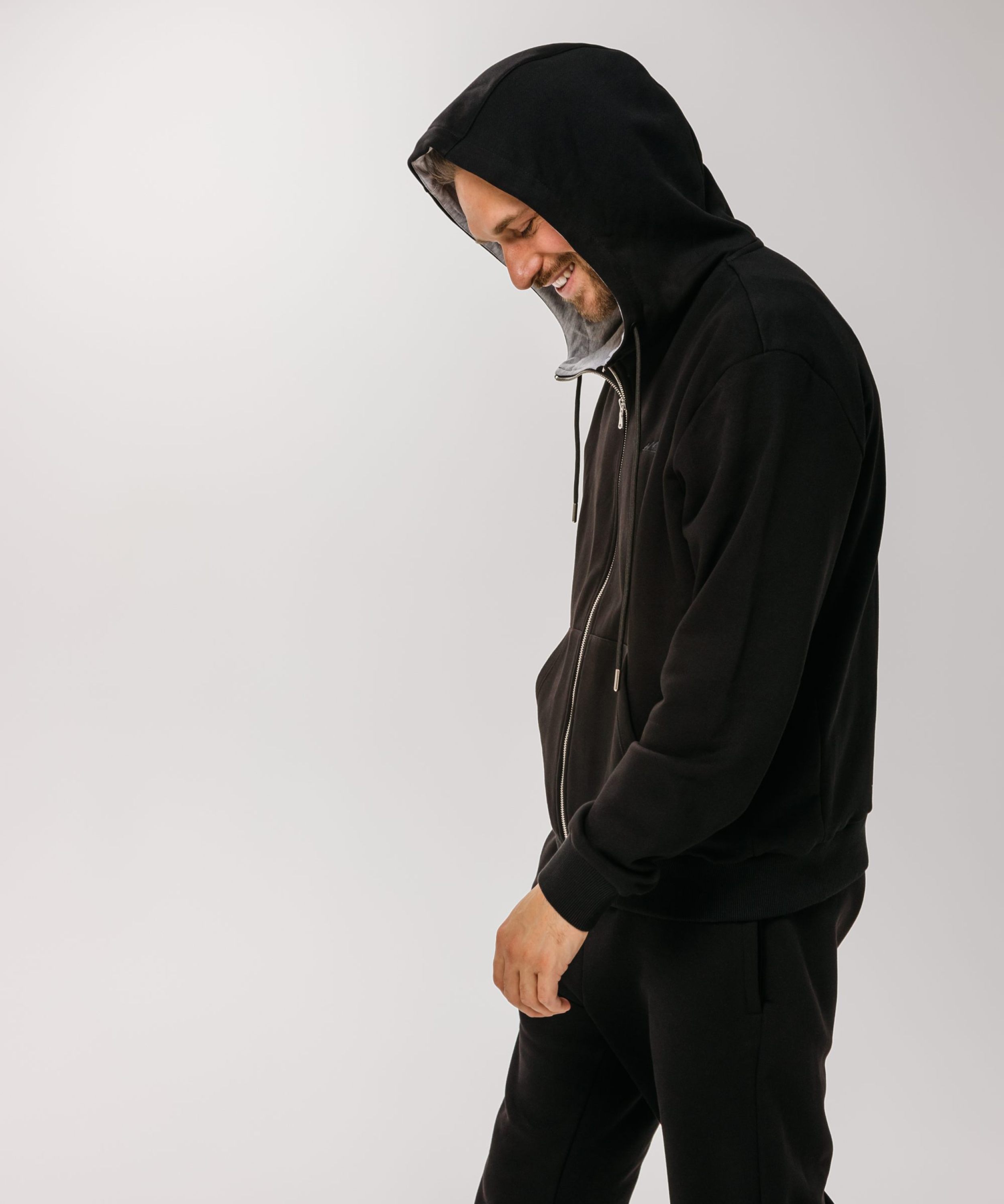 Классическая мужская толстовка, в составе 80% хлопка и 20% полиэстера, что обеспечивает отличную посадку и долговечность изделия. Прямой силуэт, аккуратная тональная вышивка-лого на груди и контрастная подкладка капюшона создают спокойный и уютный повседневный образ. Представлен в универсальном черном цвете. Легко сочетается с джинсами и брюками.
