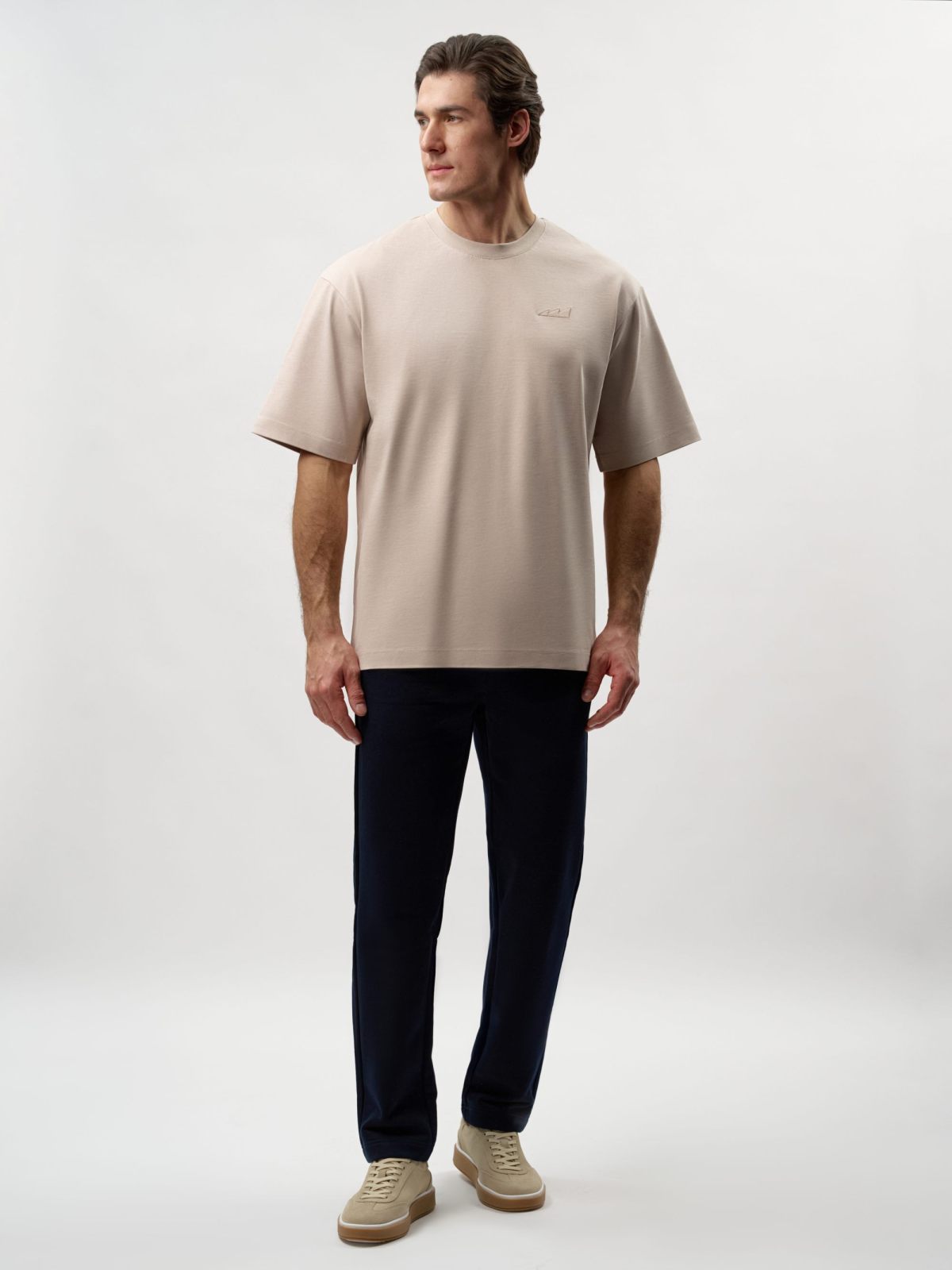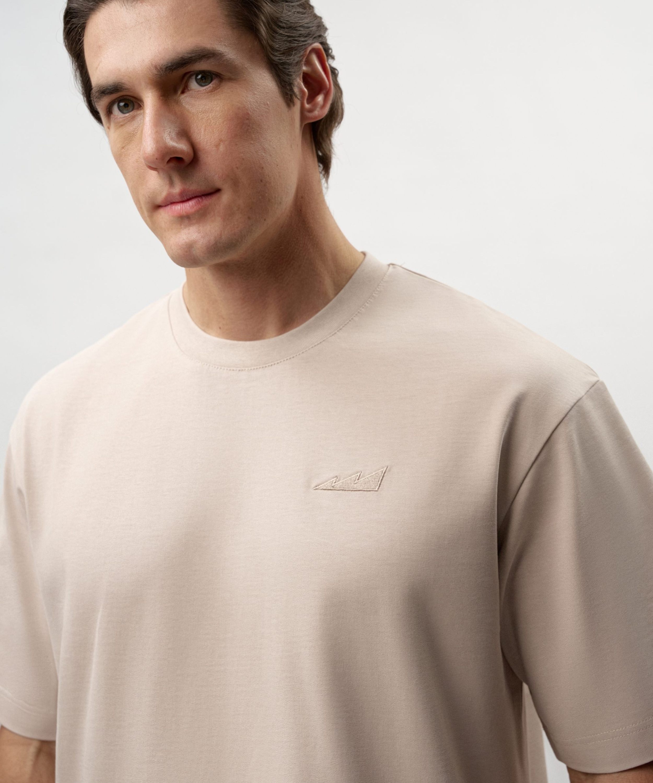 Мужская футболка oversize силуэта. Сделана из плотного хлопка, который держит форму и обеспечивает отличную посадку. У футболки прямой крой, спущенная линия плеча, широкие рукава и тональный логотип-вышивка на передней части изделия слева. Базовая вещь, которая дополнит ваш гардероб и будет прекрасно сочетаться как со спортивной одеждой, так и с классикой, джинсами и другими предметами гардероба.