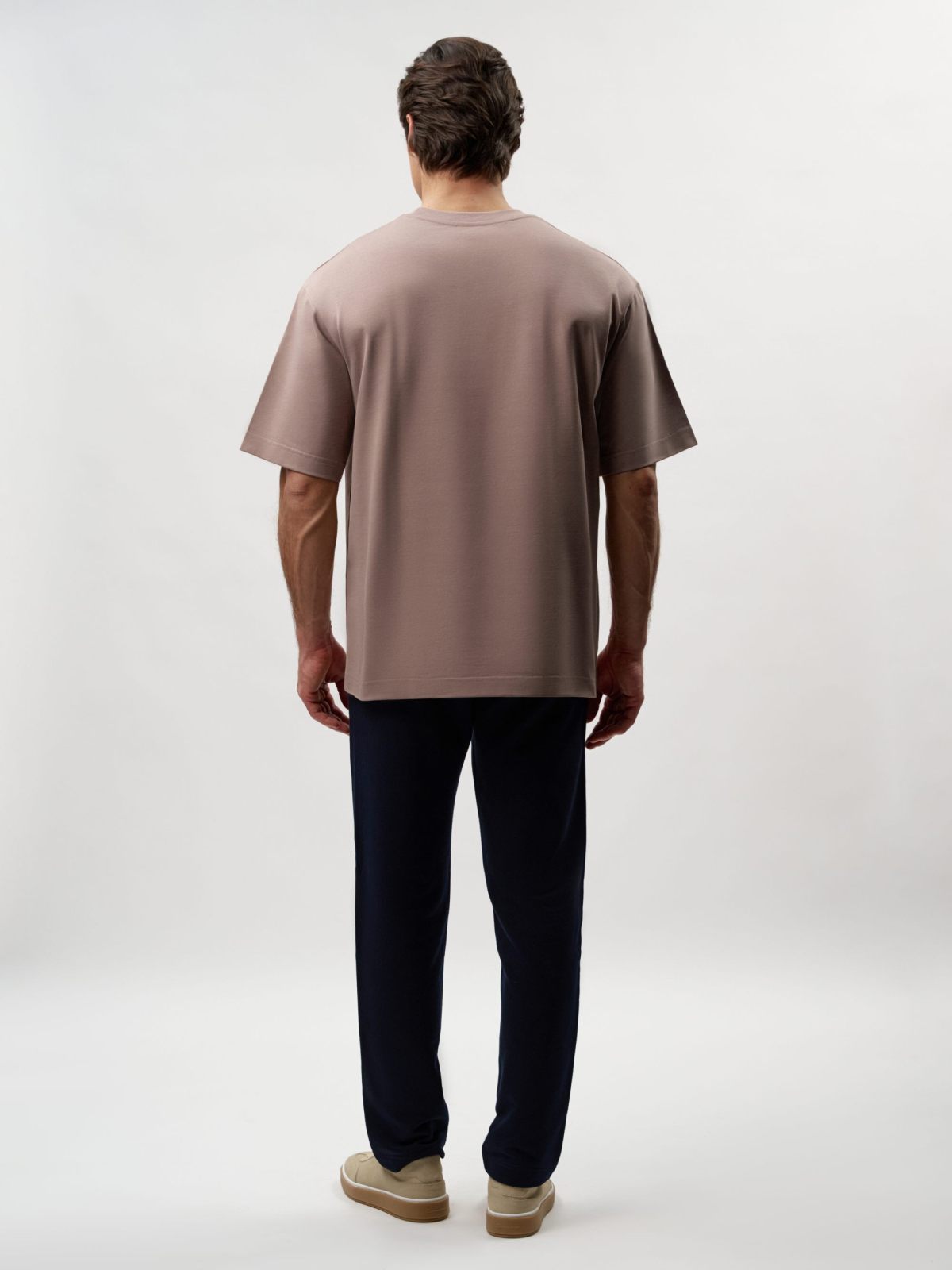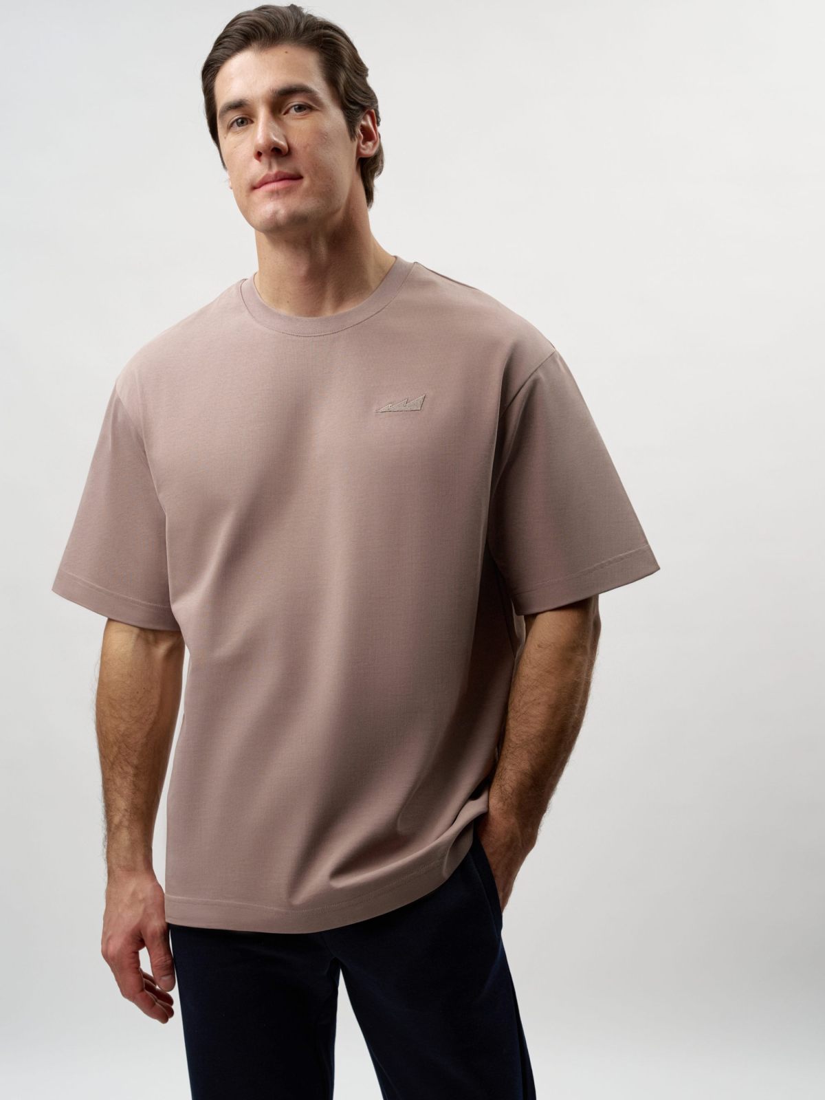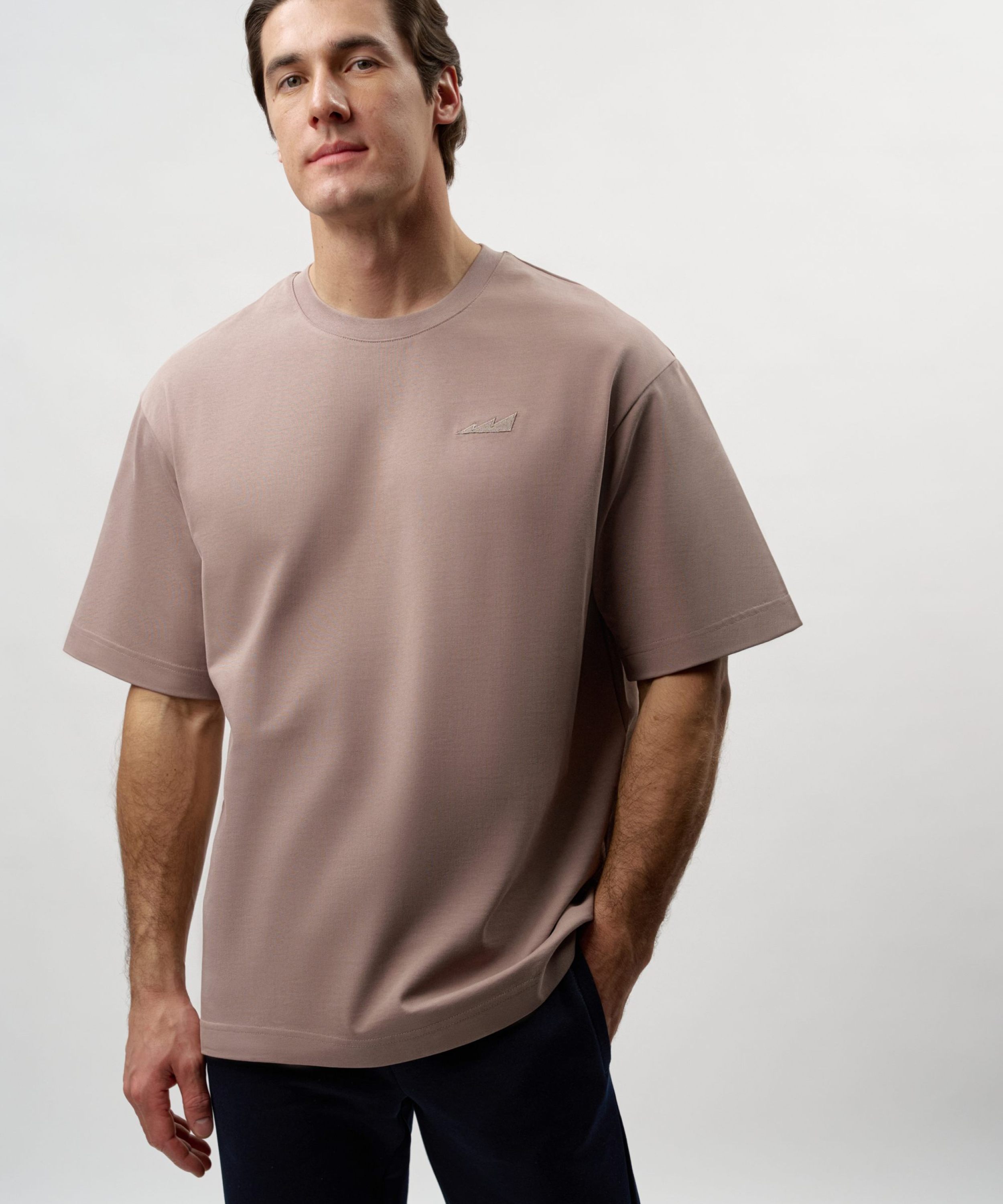 Мужская футболка oversize силуэта. Сделана из плотного хлопка, который держит форму и обеспечивает отличную посадку. У футболки прямой крой, спущенная линия плеча, широкие рукава и тональный логотип-вышивка на передней части изделия слева. Базовая вещь, которая дополнит ваш гардероб и будет прекрасно сочетаться как со спортивной одеждой, так и с классикой, джинсами и другими предметами гардероба.