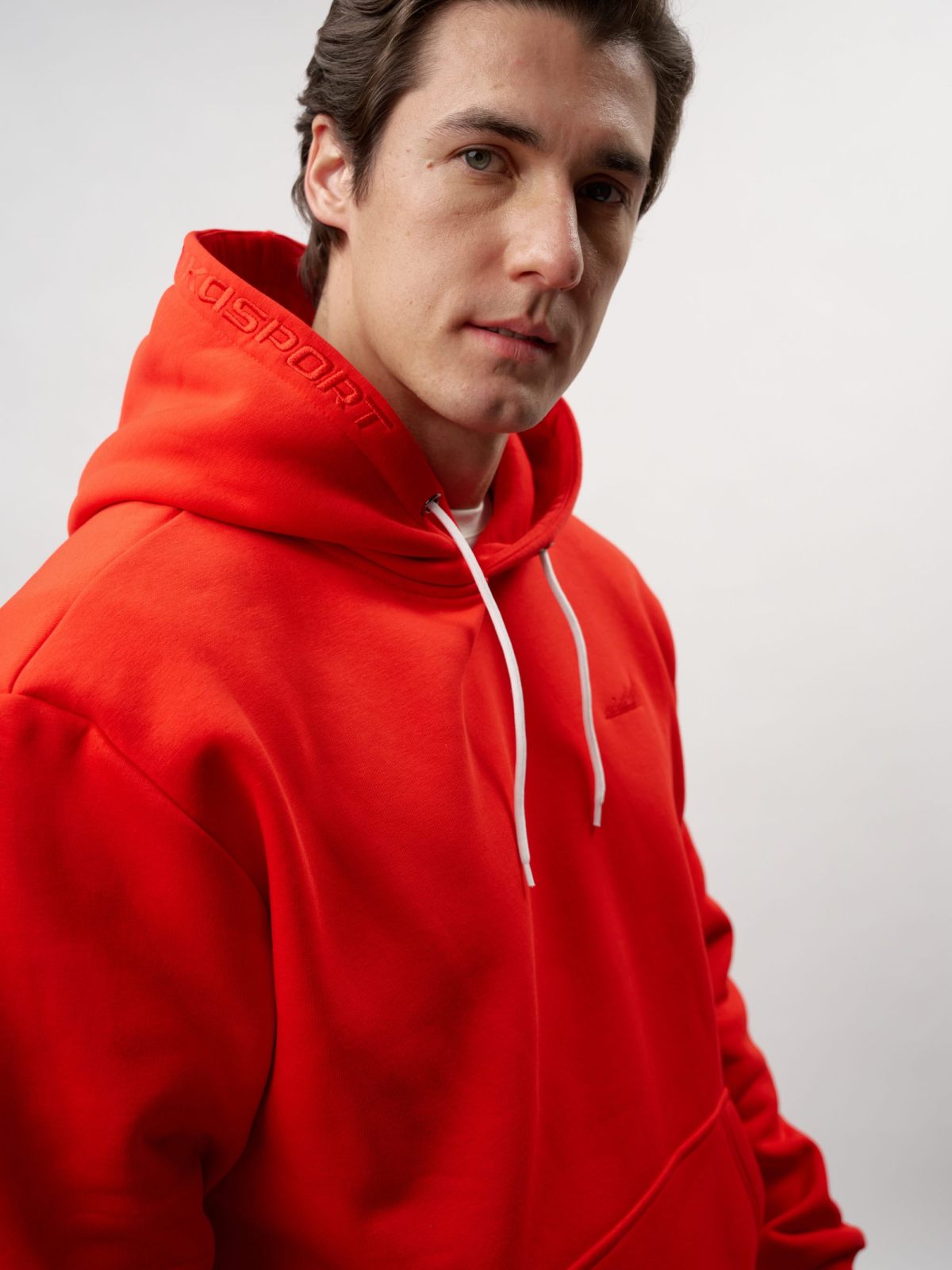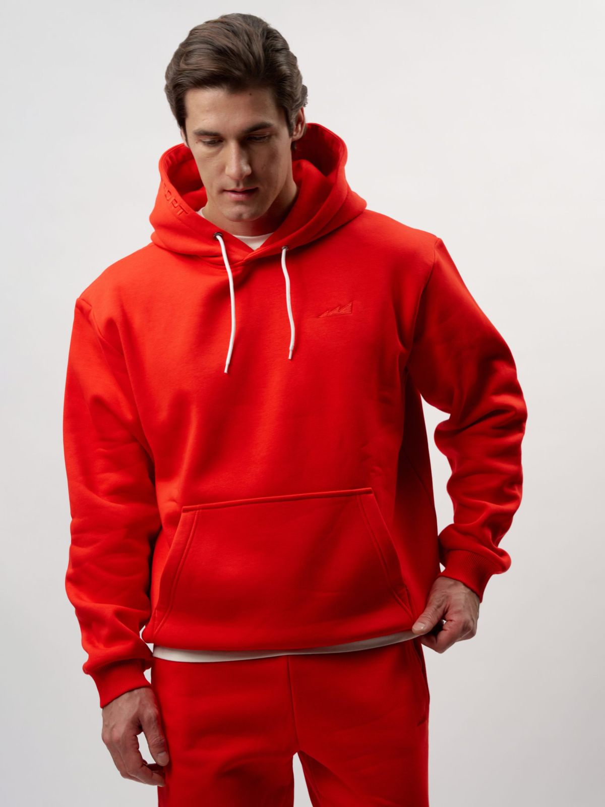 Утепленная толстовка с капюшоном, карманом-кенгуру и спущенным плечом. Выполнена из футера с начесом, в составе которого 80% хлопка и 20% полиэстера, что обеспечивает отличную посадку и долговечность изделия. Модель создана для повседневных образов в спортивном стиле. На груди и на капюшоне расположен тональный логотип-вышивка. Свободный силуэт не сковывает движения и позволяет создавать многослойные образы. Сделано в Москве.