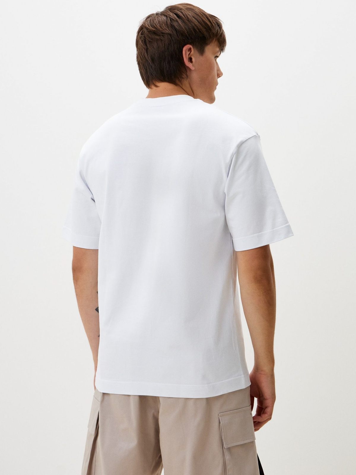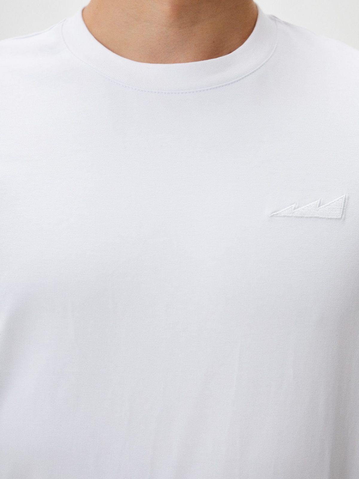 Мужская футболка oversize силуэта. Сделана из плотного хлопка, который держит форму и обеспечивает отличную посадку. У футболки прямой крой, спущенная линия плеча, широкие рукава и тональный логотип-вышивка на передней части изделия слева. Базовая вещь, которая дополнит ваш гардероб и будет прекрасно сочетаться как со спортивной одеждой, так и с классикой, джинсами и другими предметами гардероба.