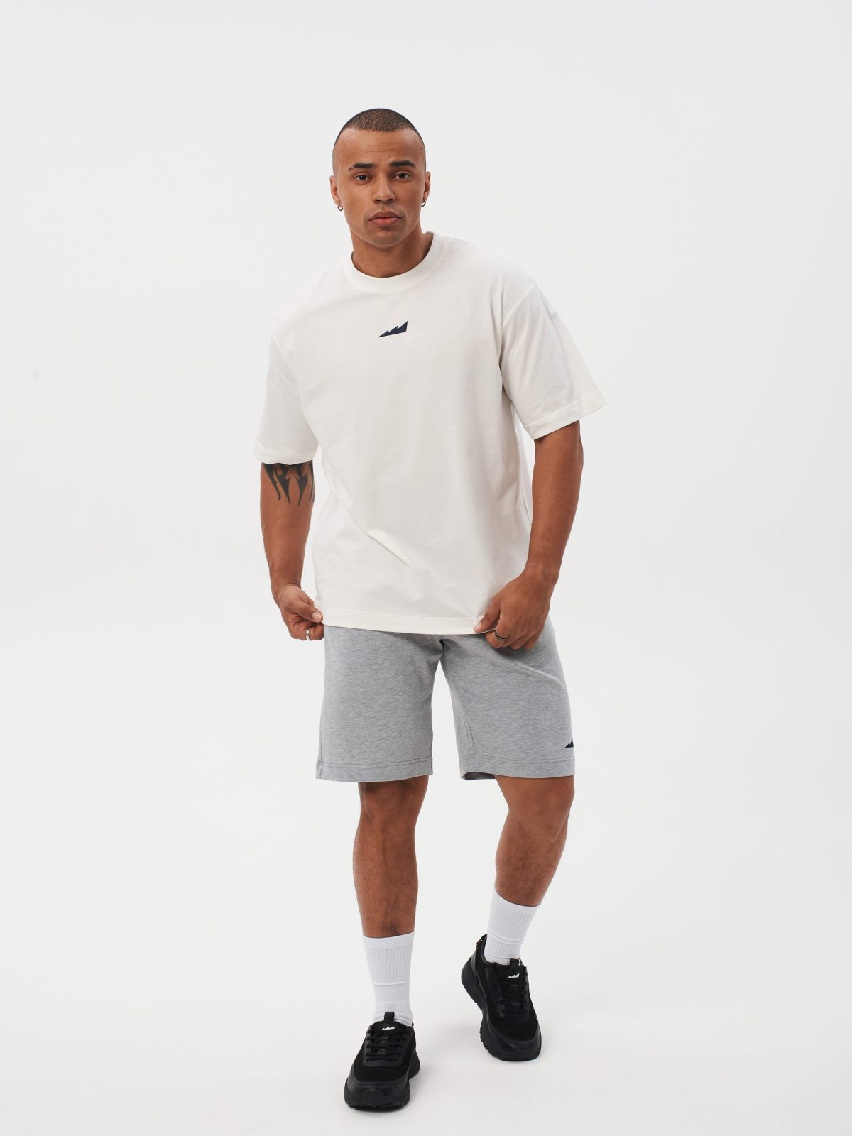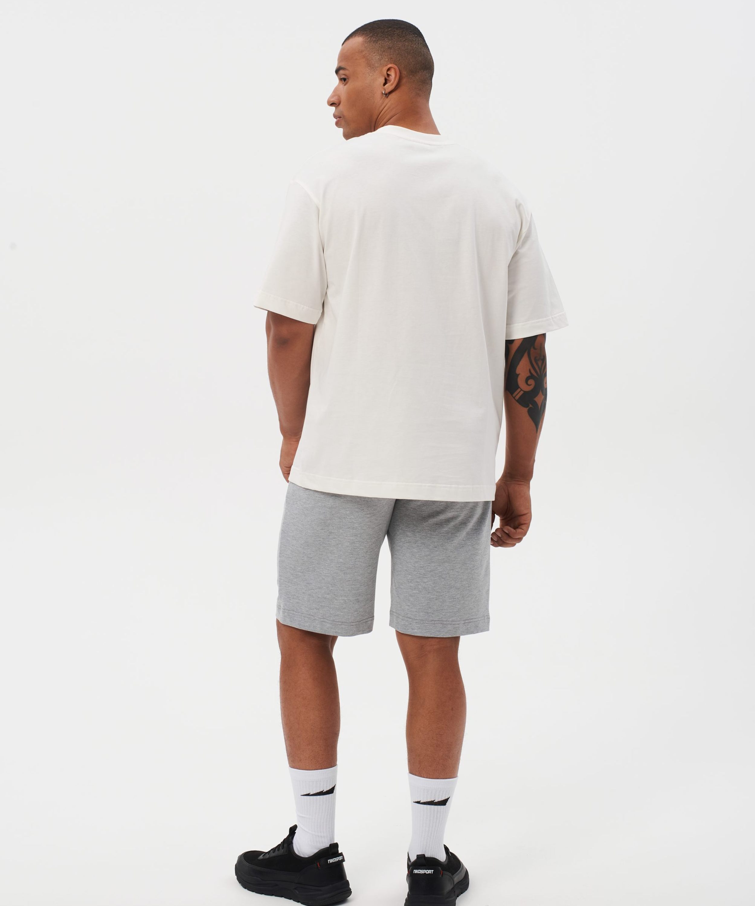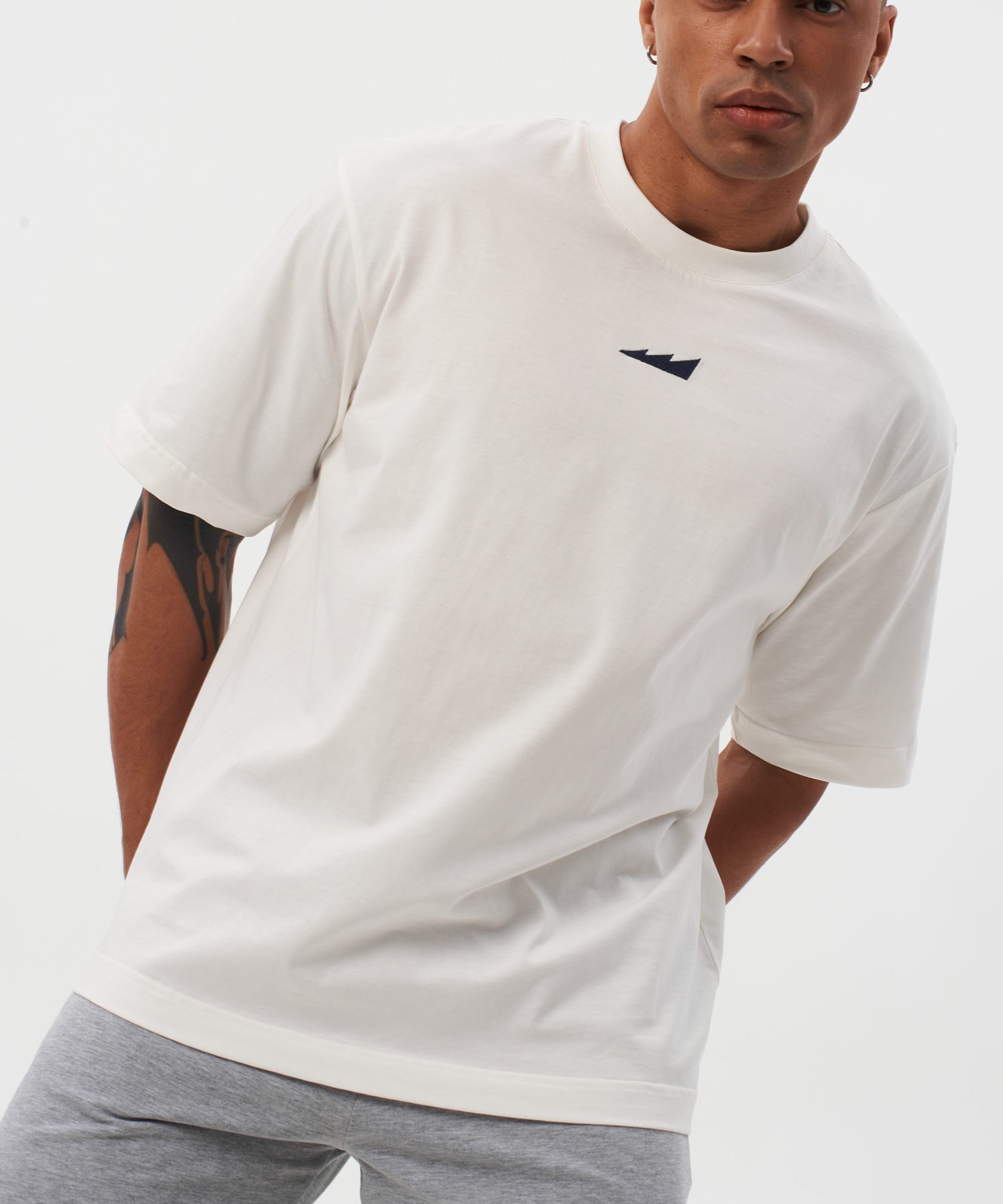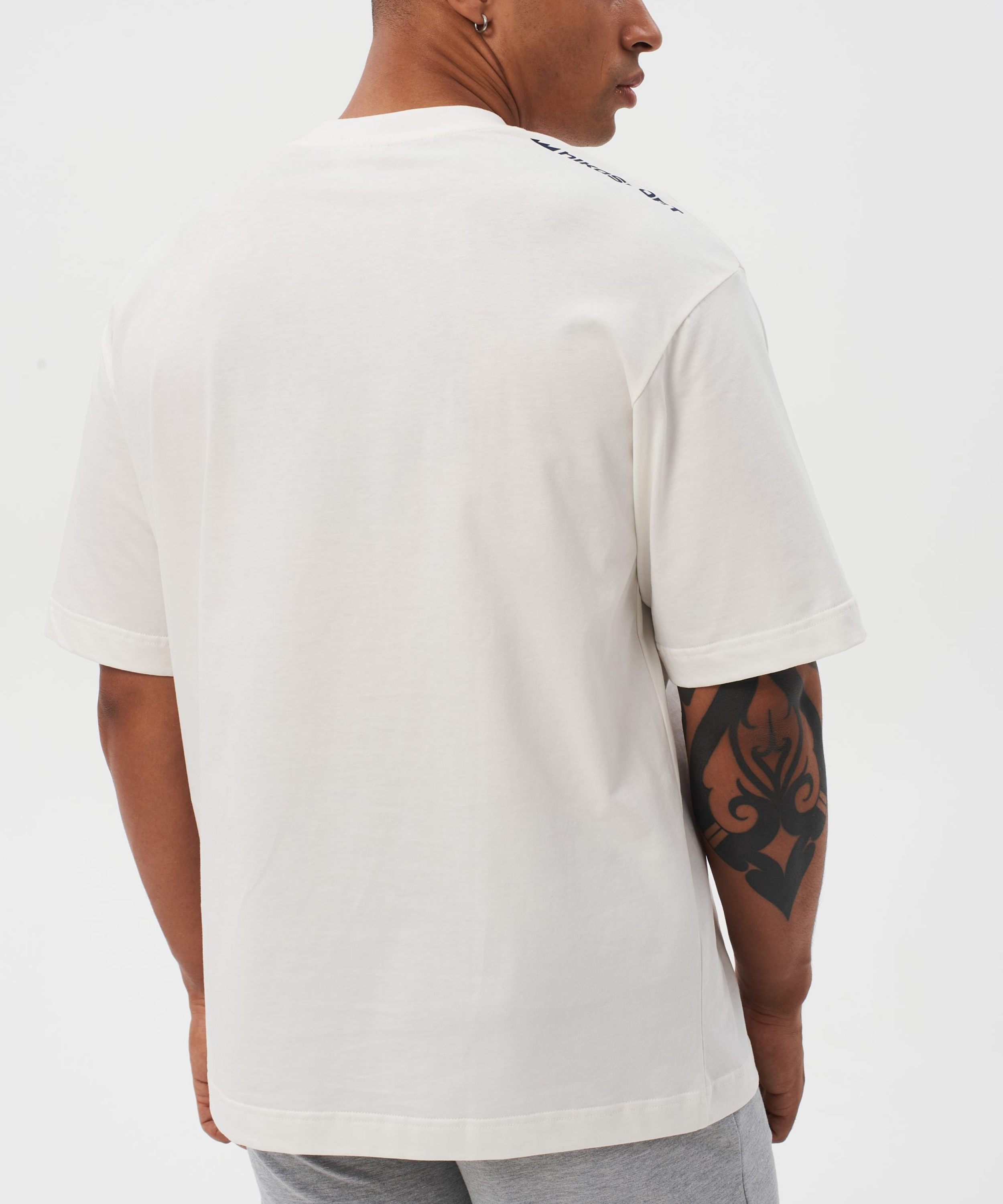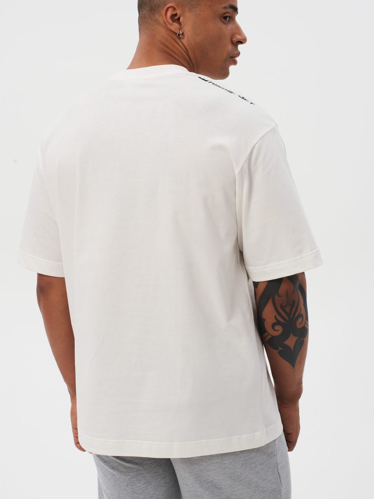 Мужская футболка oversize силуэта. Сделана из 100% плотного хлопка - гипоаллергенного материала, отлично пропускающего воздух. Спущенная линия плеча и контрастные лого-принты создают спокойный повседневный образ. Футболка представлена в классическом белом цвете и отлично сочетается как со спортивным, так и с повседневным стилем.