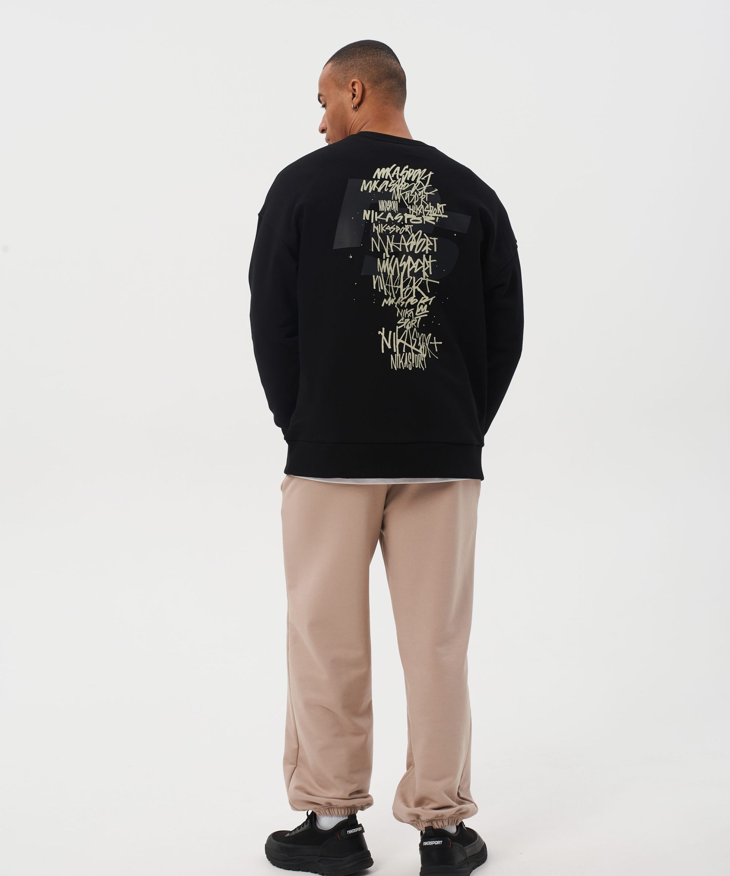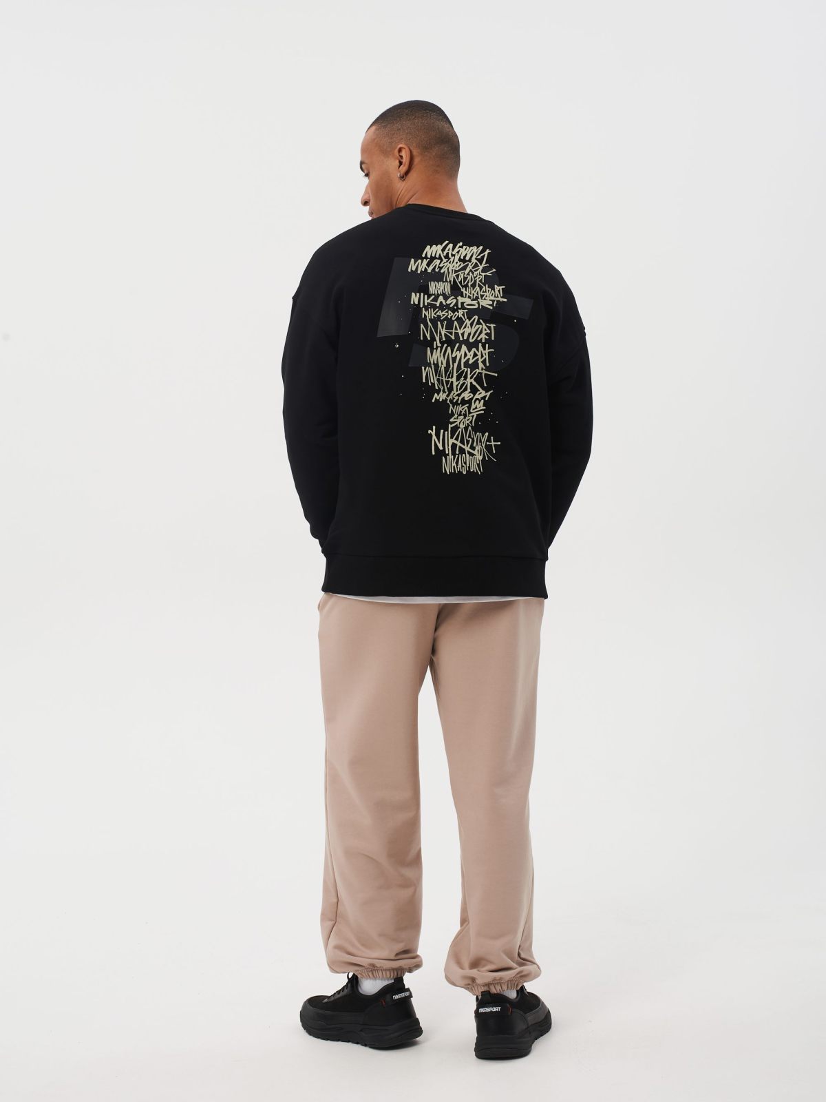 Мужской свитшот свободного силуэта. Выполнен из материала, в составе которого 90% хлопка и 10% полиэстера, что обеспечивает отличную посадку и долговечность изделия. Спущенная линия плеча и стильный графити-принт во всю спину делают свитшот заметным и молодежным. Представлен в классическом черном, а также в актуальных летних цветах - мята и ваниль. Прекрасное дополнение как к спортивному, так и к повседневному образу