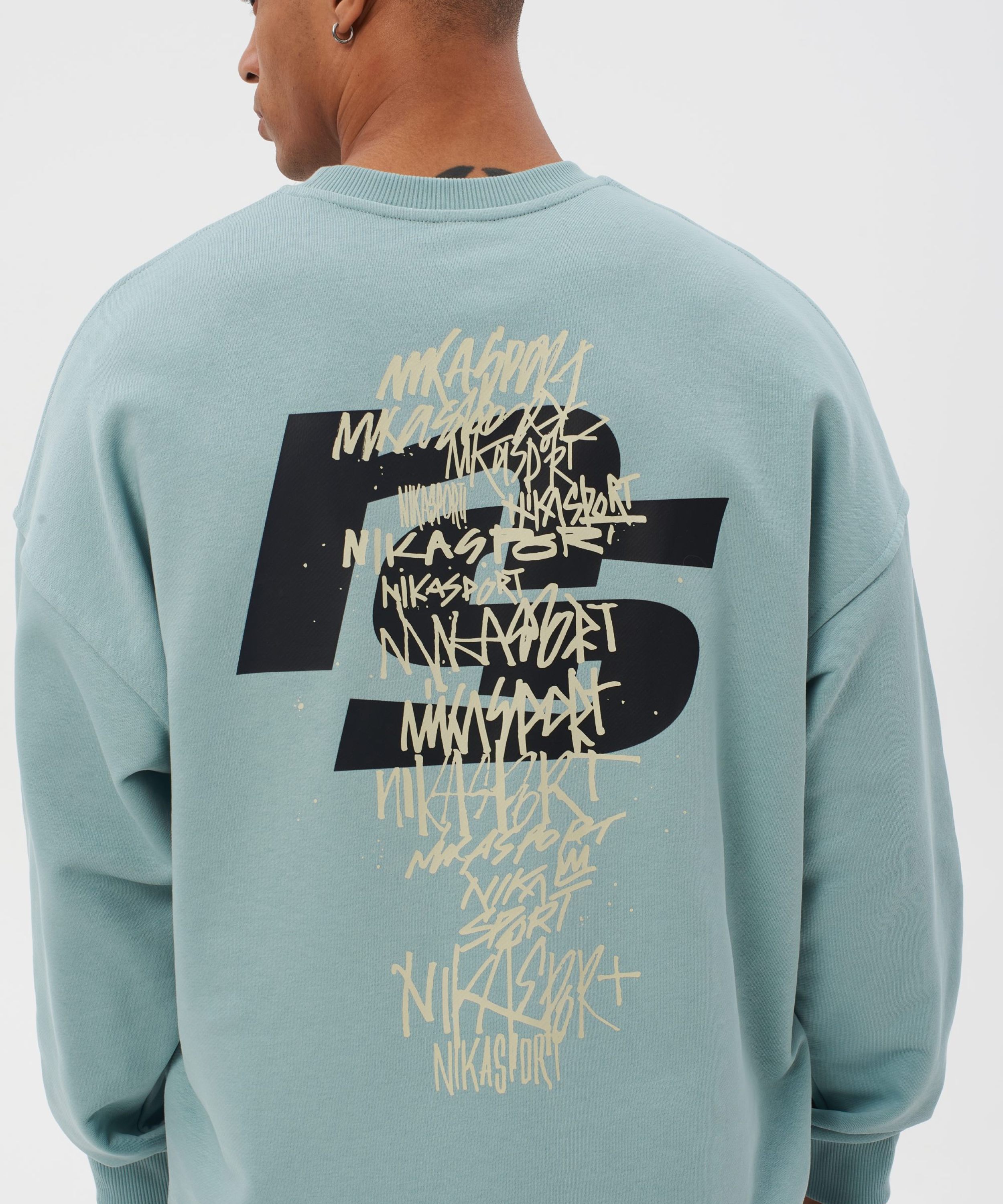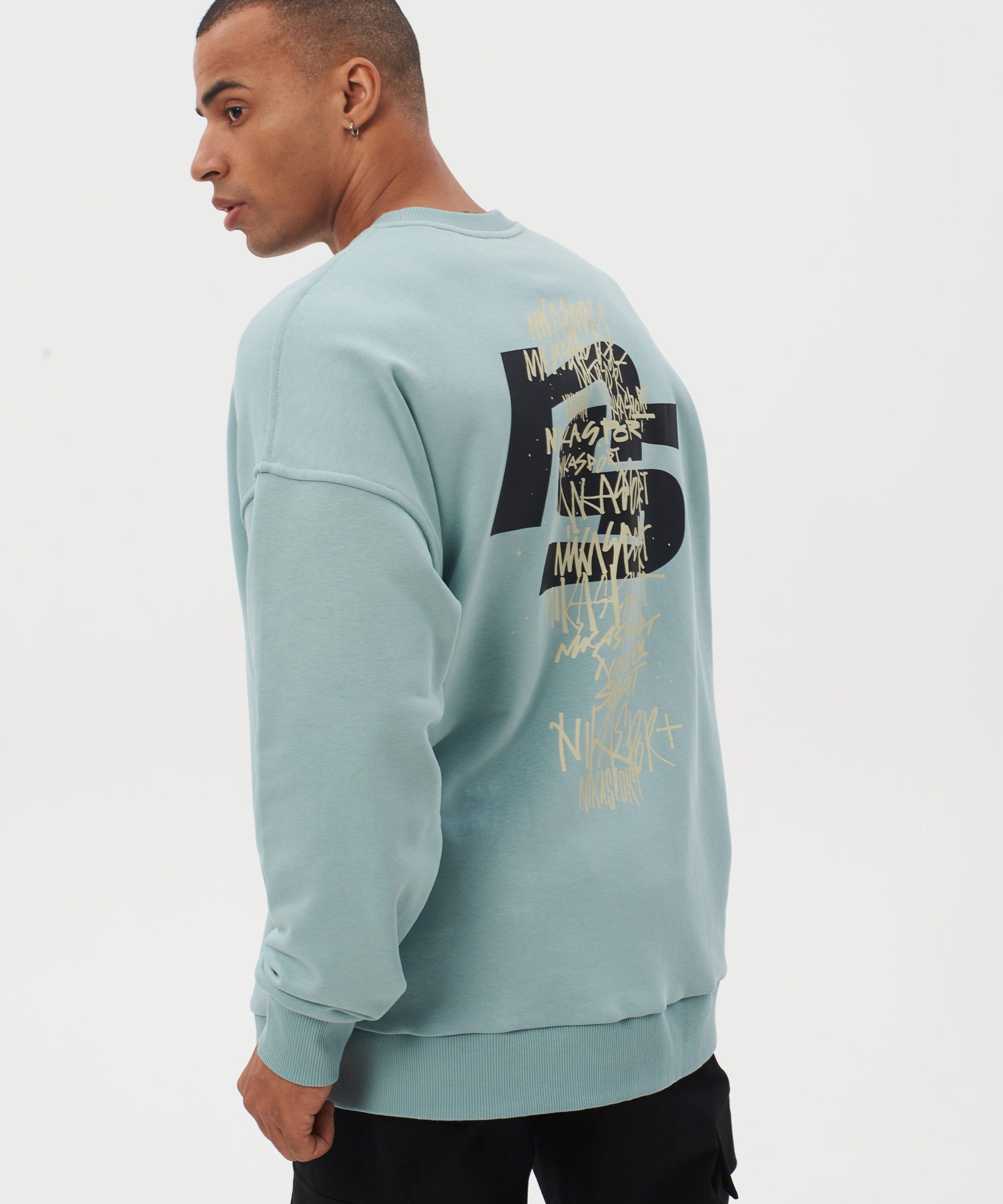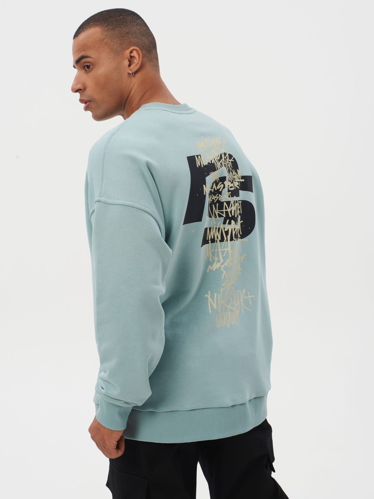 Мужской свитшот свободного силуэта. Выполнен из материала, в составе которого 90% хлопка и 10% полиэстера, что обеспечивает отличную посадку и долговечность изделия. Спущенная линия плеча и стильный граффити-принт во всю спину делают свитшот заметным и молодежным. Представлен в классическом черном, а также в актуальных летних цветах - мята и ваниль. Прекрасное дополнение как к спортивному, так и к повседневному образу