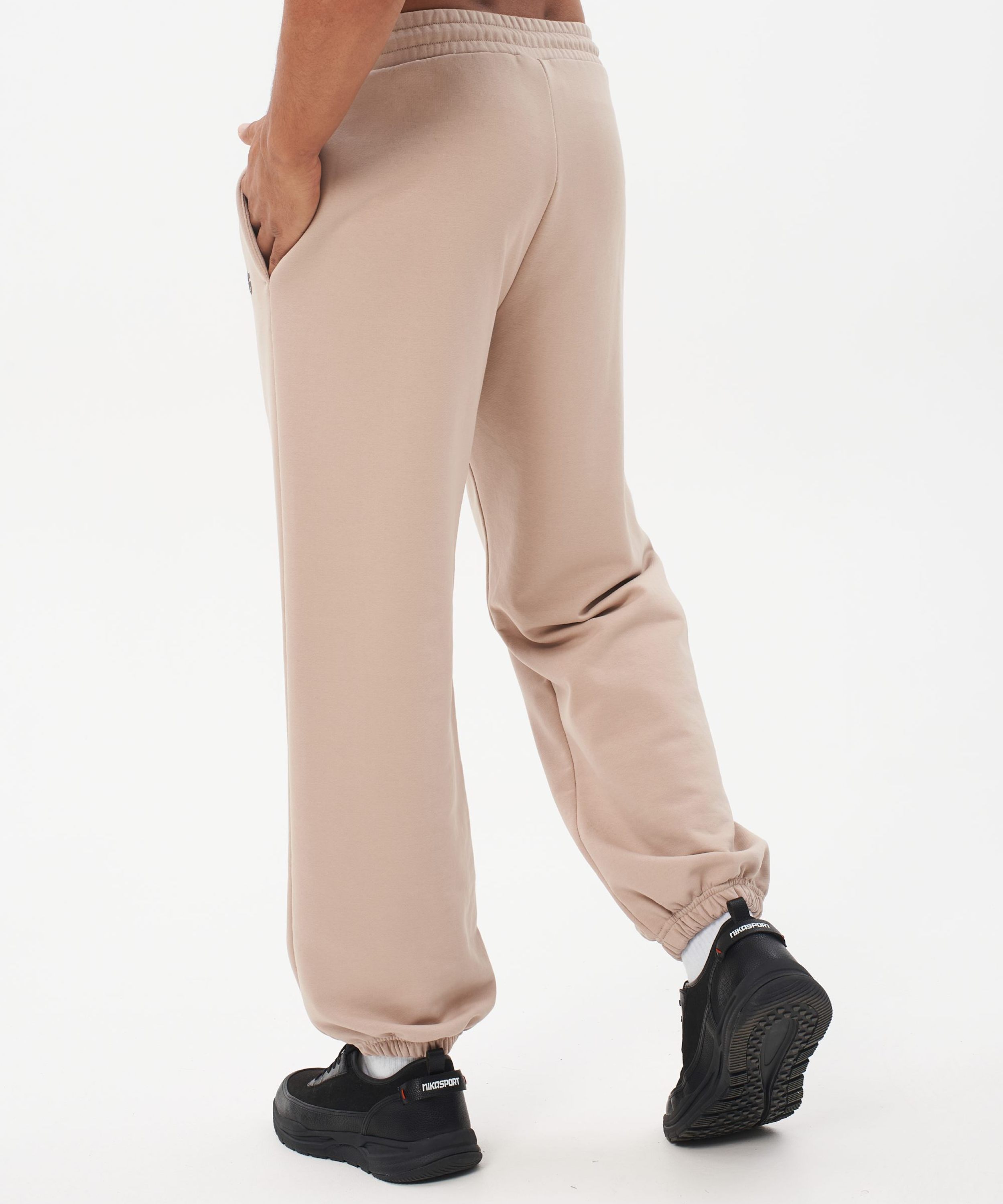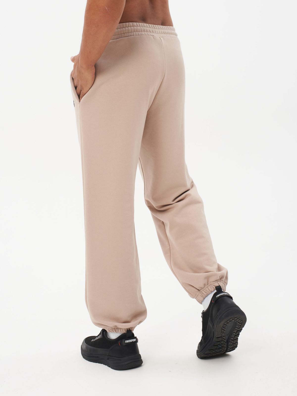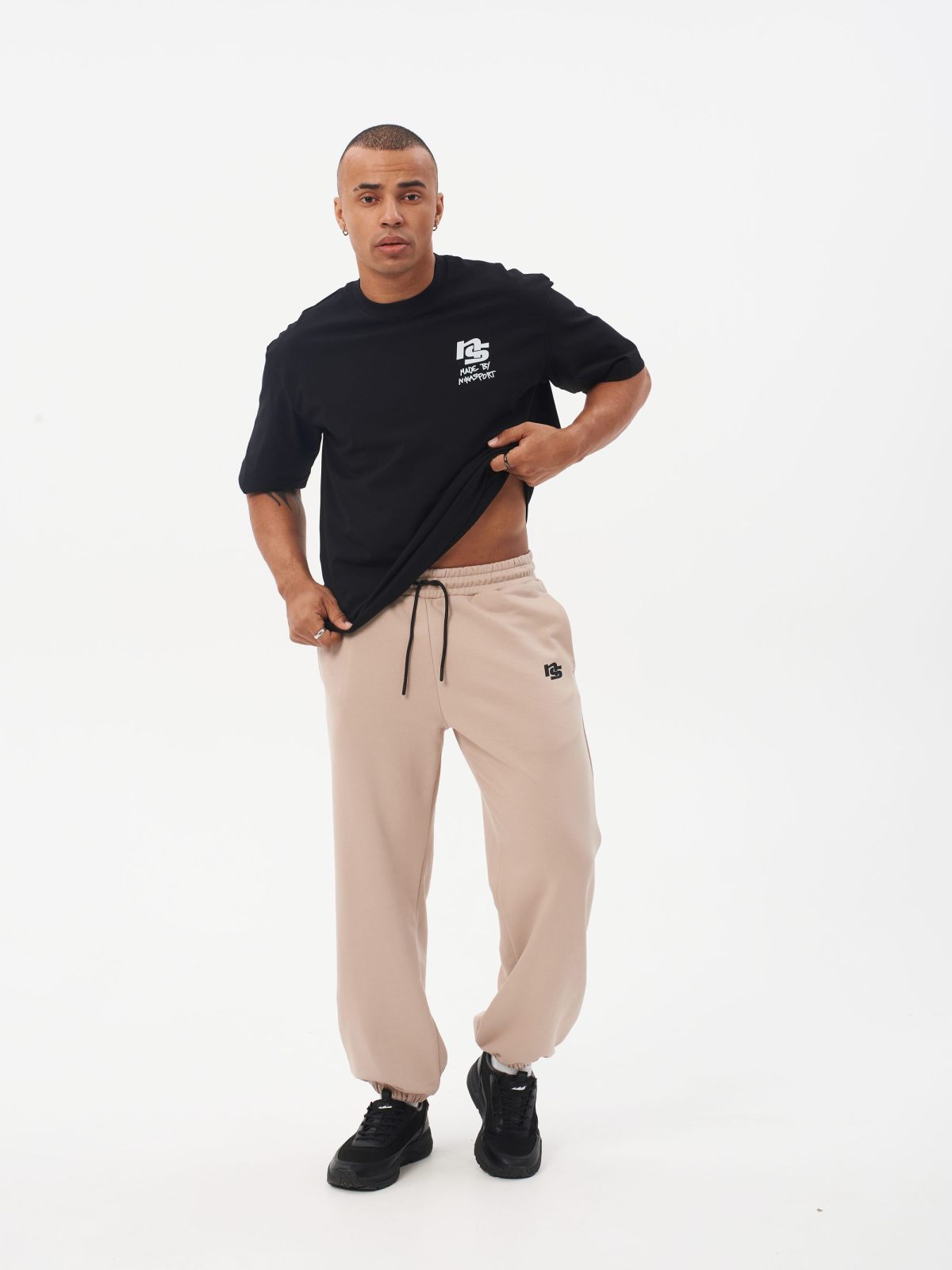 Мужские брюки-джоггеры свободного силуэта. Выполнены из материала, в составе которого 90% хлопка и 10% полиэстера, что обеспечивает отличную посадку и долговечность изделия. Брюки имеют два боковых кармана для хранения личных вещей и лаконичный фирменный лого-принт на левой ноге. Эластичный шнур в поясе помогает регулировать посадку. Представлены в универсальных цветах - черный и капучино. Модель создана для повседневных образов в спортивном стиле.