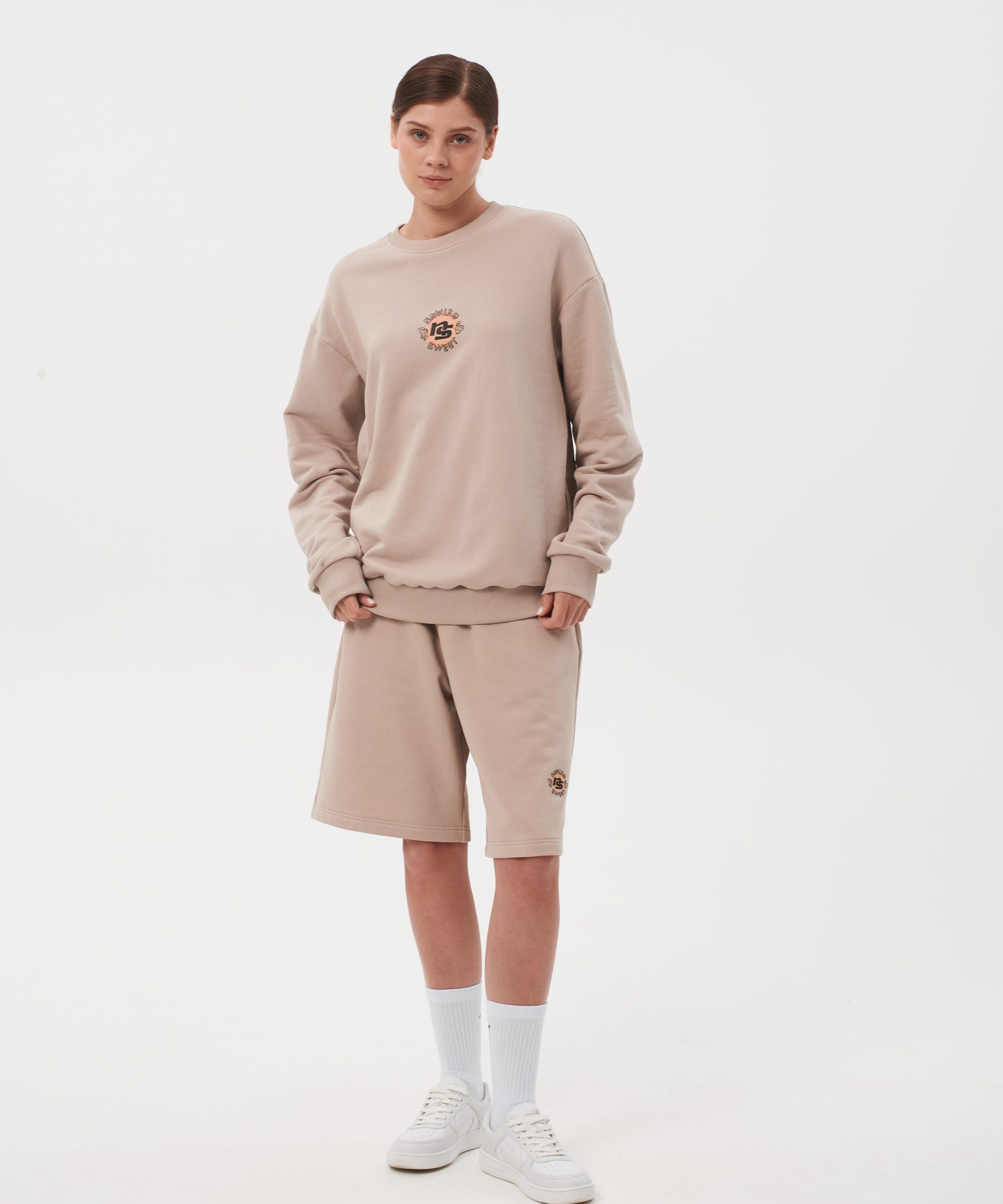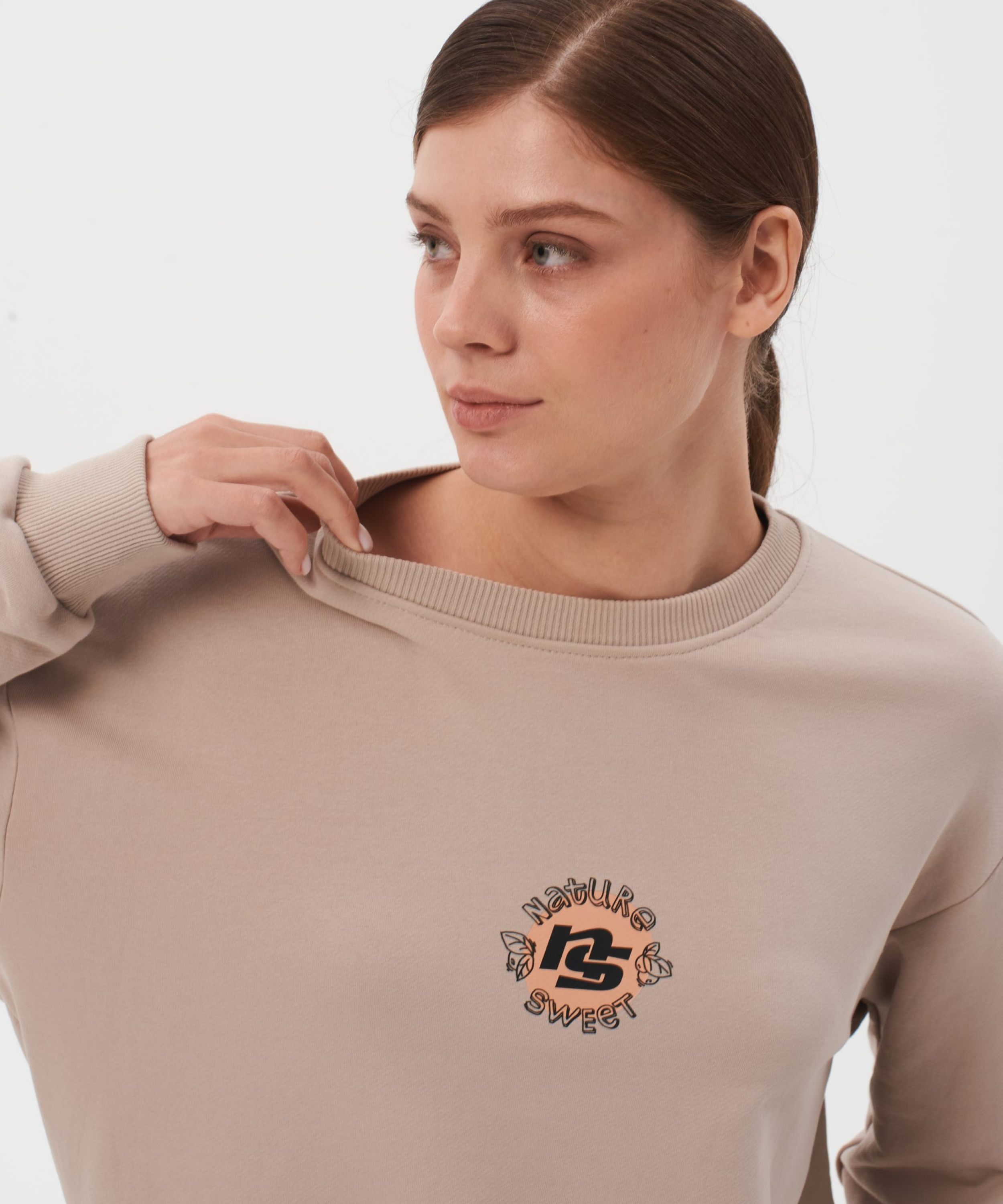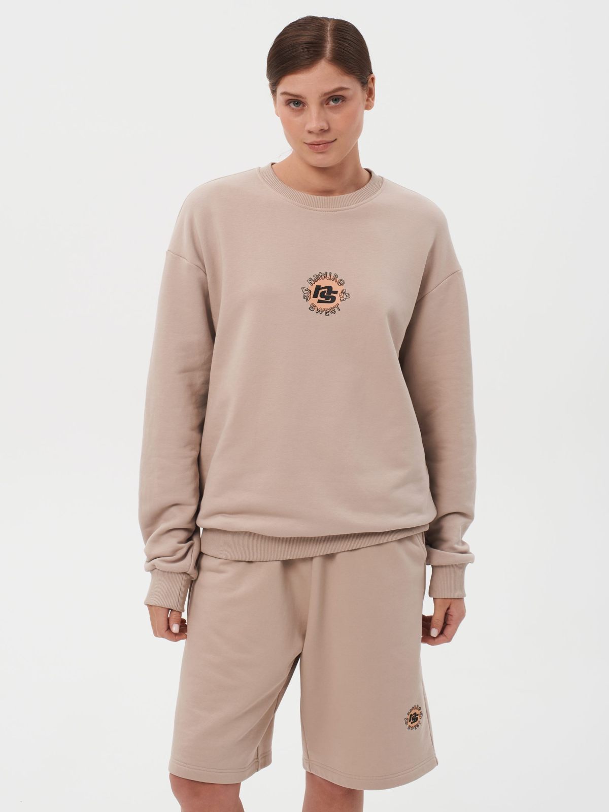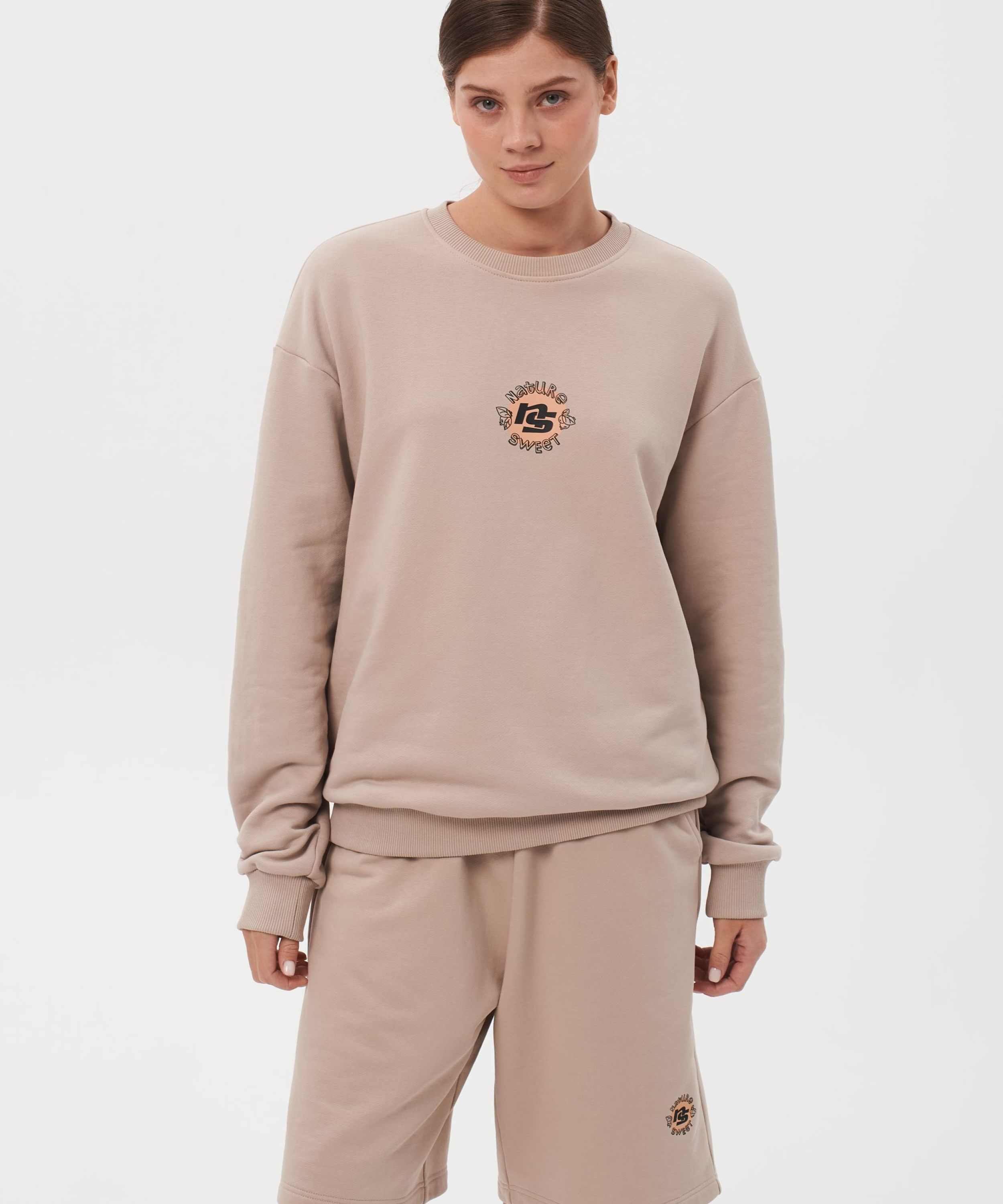 Свитшот женский oversize силуэта. В составе 90% хлопка и 10% полиэстера, что обеспечивает отличную посадку и долговечность изделия. На спине расположен нежный принт коллекции "Sweet Nature" - ты прекрасна такая, какая ты есть! Свитшот представлен в нежных цветах персик и капучино и удачно дополнит как спортивный, так и классический образ.
