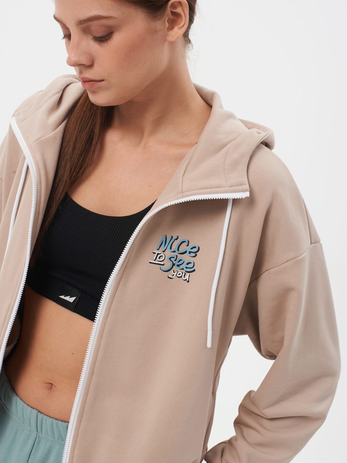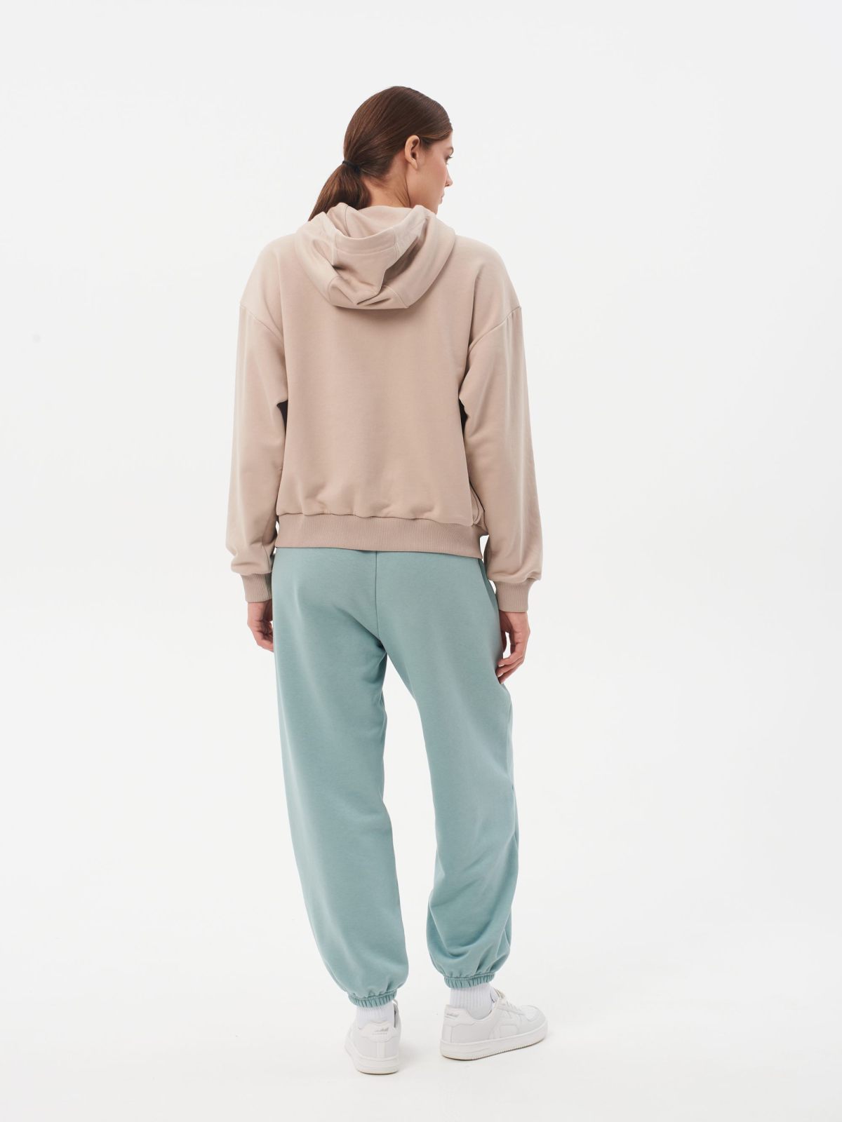 Классическая женская толстовка на молнии. В составе 90% хлопка и 10% полиэстера, что обеспечивает отличную посадку и долговечность изделия. Спущенная линия плеча, свободный крой, высокий воротник на утяжке с капюшоном превращают толстовку в уютный атрибут посведневной одежды. Представлена в сезонных цветах мята и капучино, на груди расположен нежный принт. Модель не сковывает движения и позволяет создавать многослойные образы.
