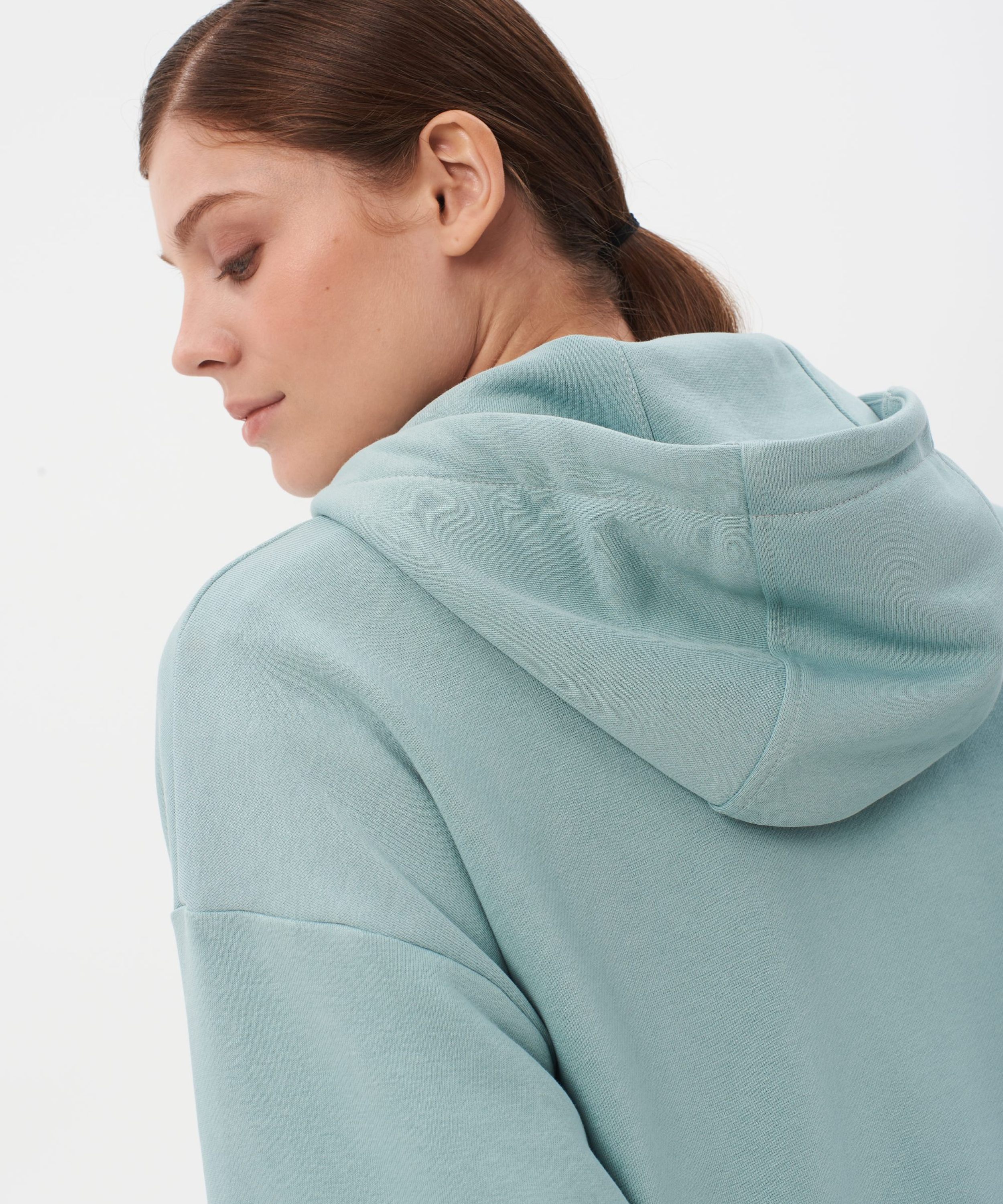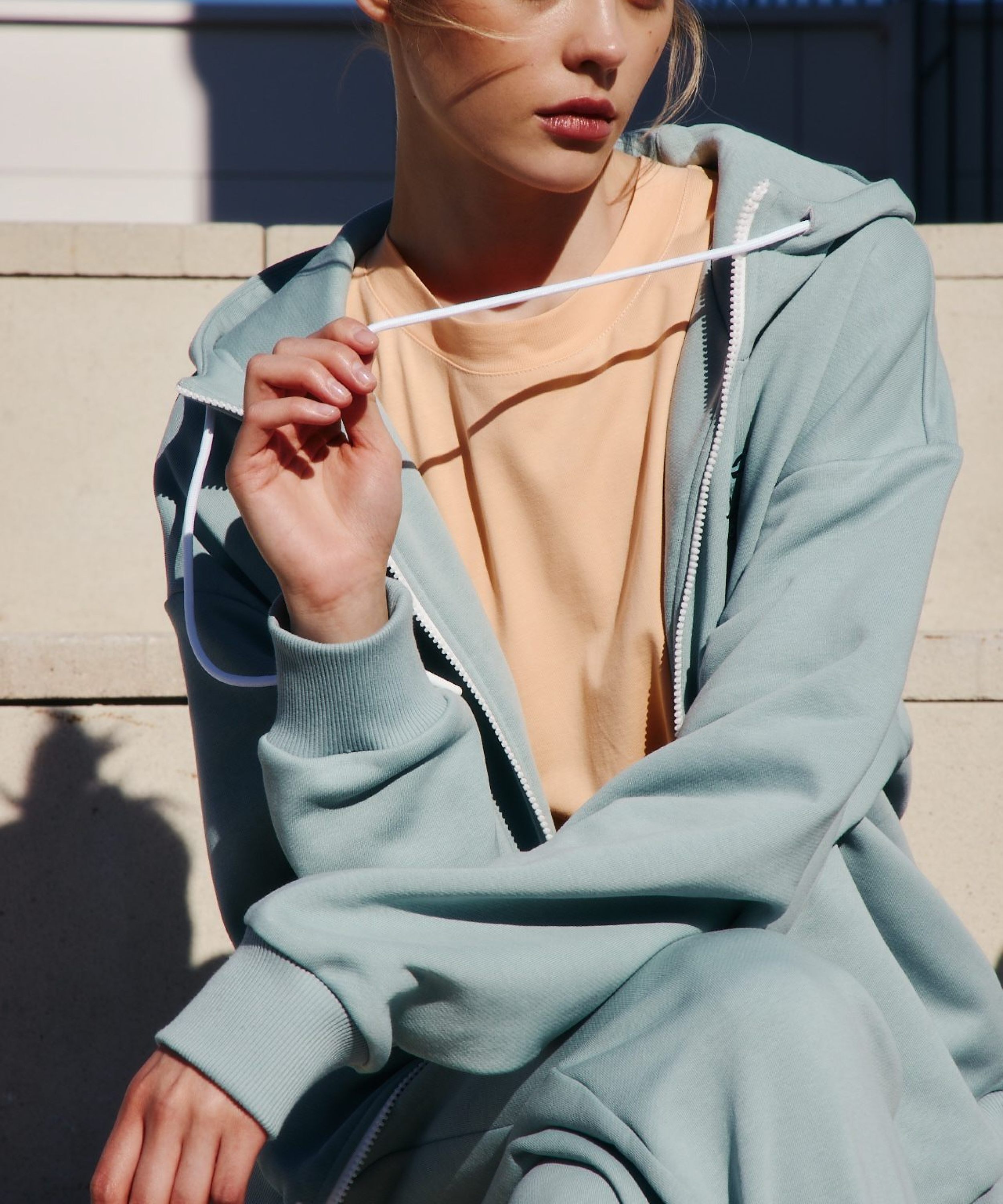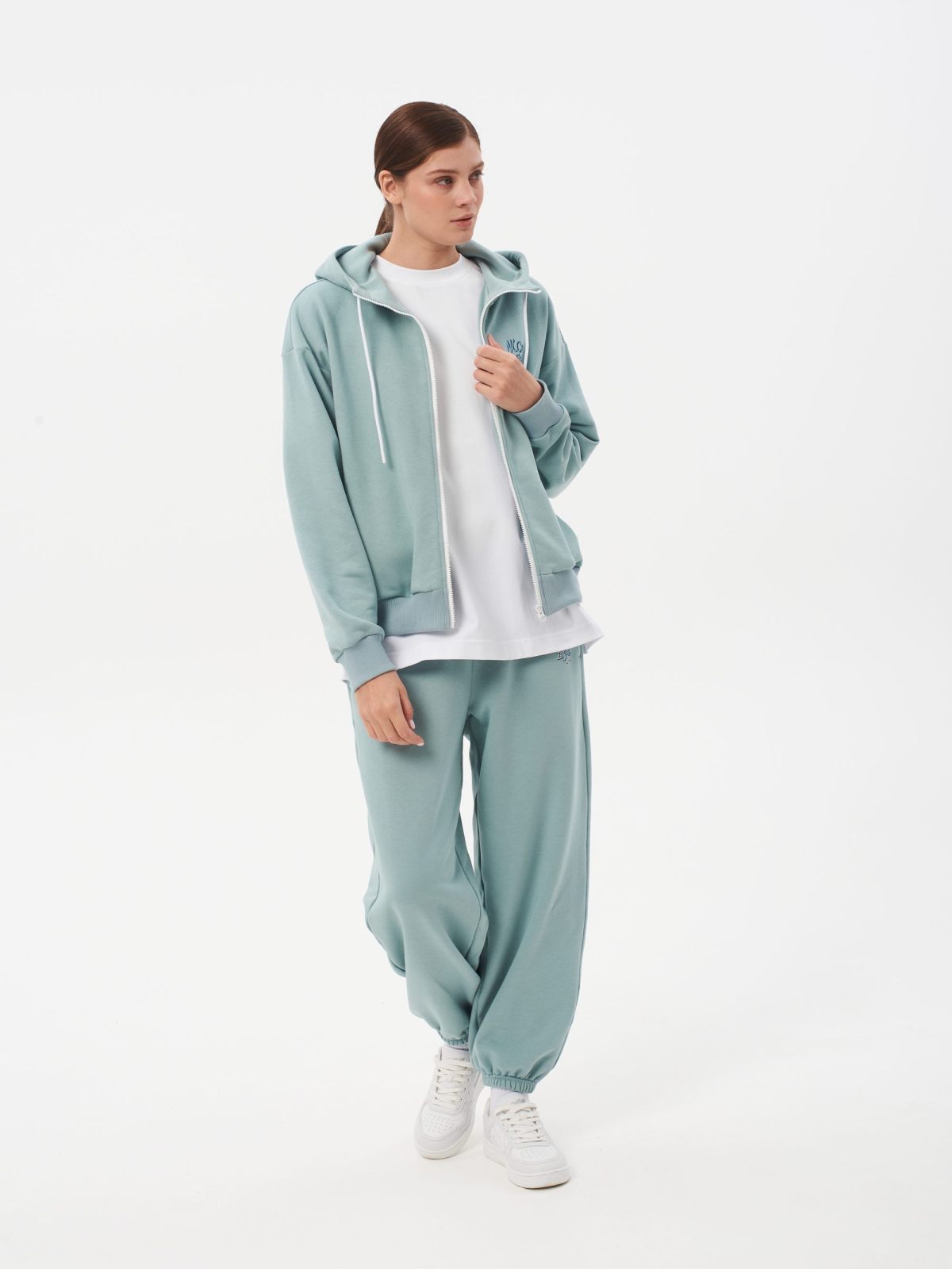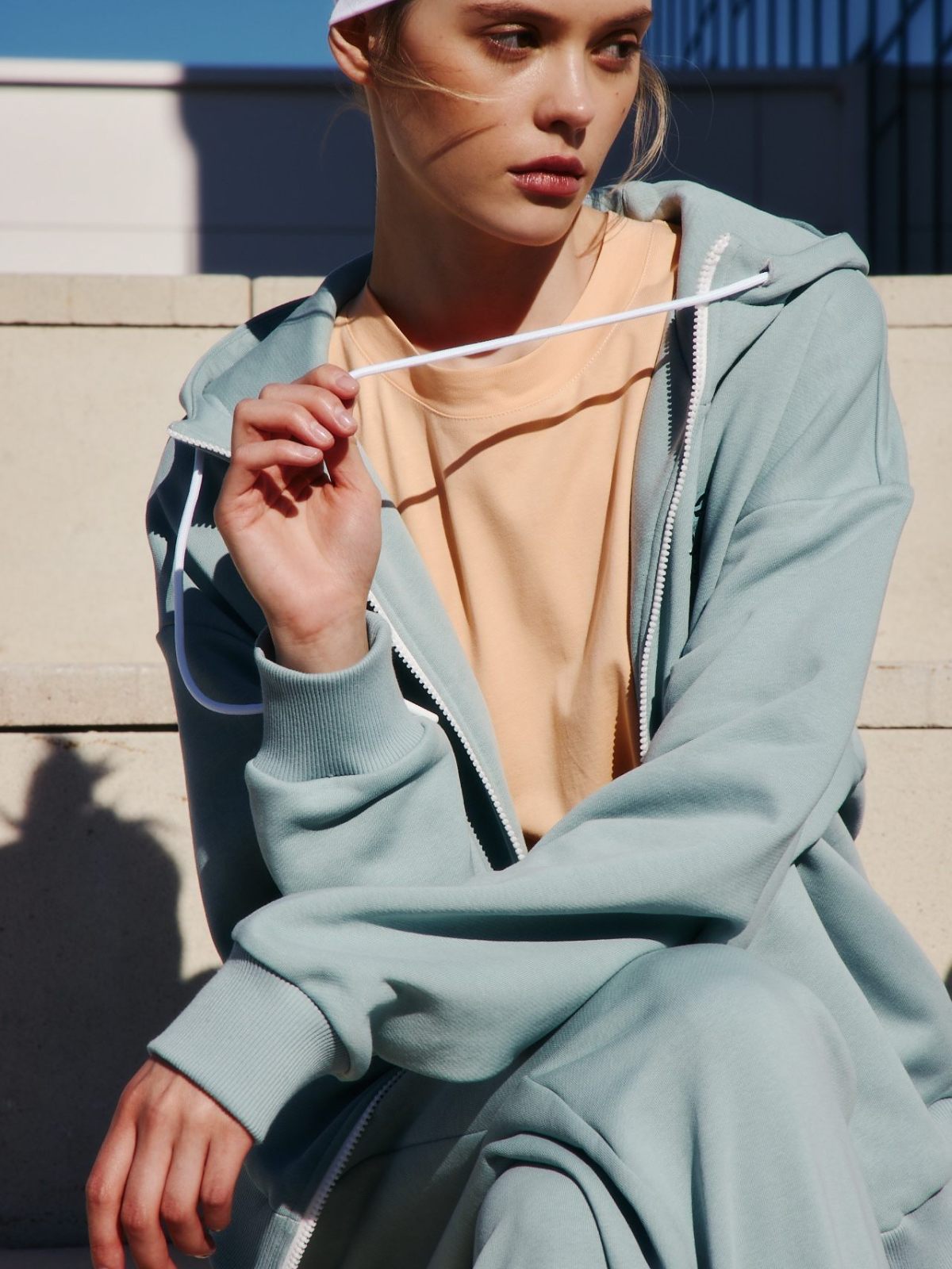 Классическая женская толстовка на молнии. В составе 90% хлопка и 10% полиэстера, что обеспечивает отличную посадку и долговечность изделия. Спущенная линия плеча, свободный крой, высокий воротник на утяжке с капюшоном превращают толстовку в уютный атрибут посведневной одежды. Представлена в сезонных цветах мята и капучино, на груди расположен нежный принт. Модель не сковывает движения и позволяет создавать многослойные образы.