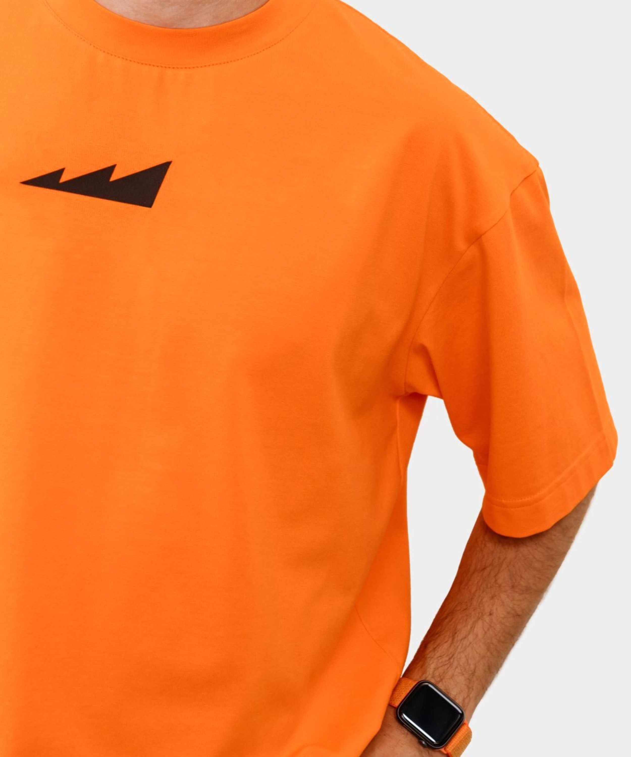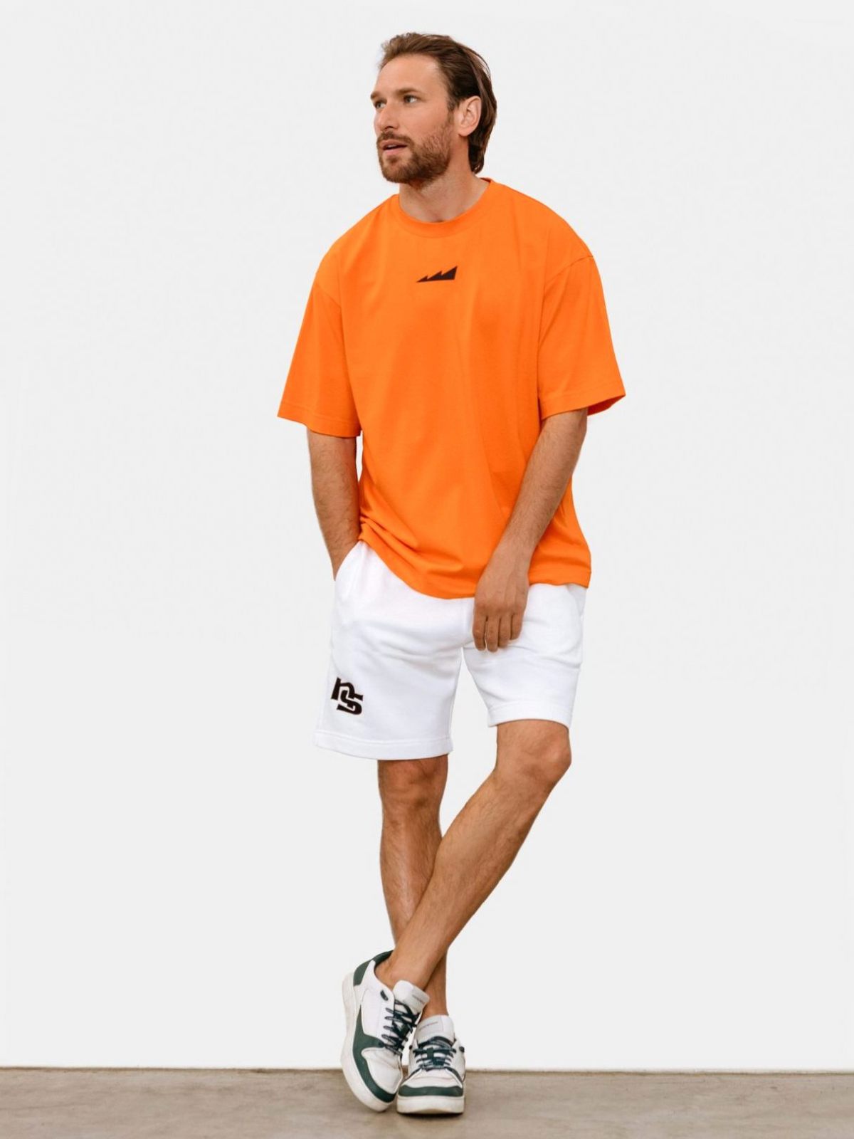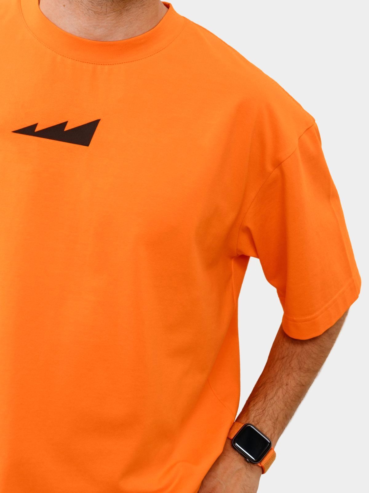 Мужская футболка oversize силуэта. Выполнена из материала, в составе которого 95% хлопка и 5% эластана, за счет чего футболка лучше держит форму. На груди и на плече расположены логотипы бренда. Модель представлена в ярком оранжевом цвете и легко сочетается как со спортивной так и с повседневной одеждой.