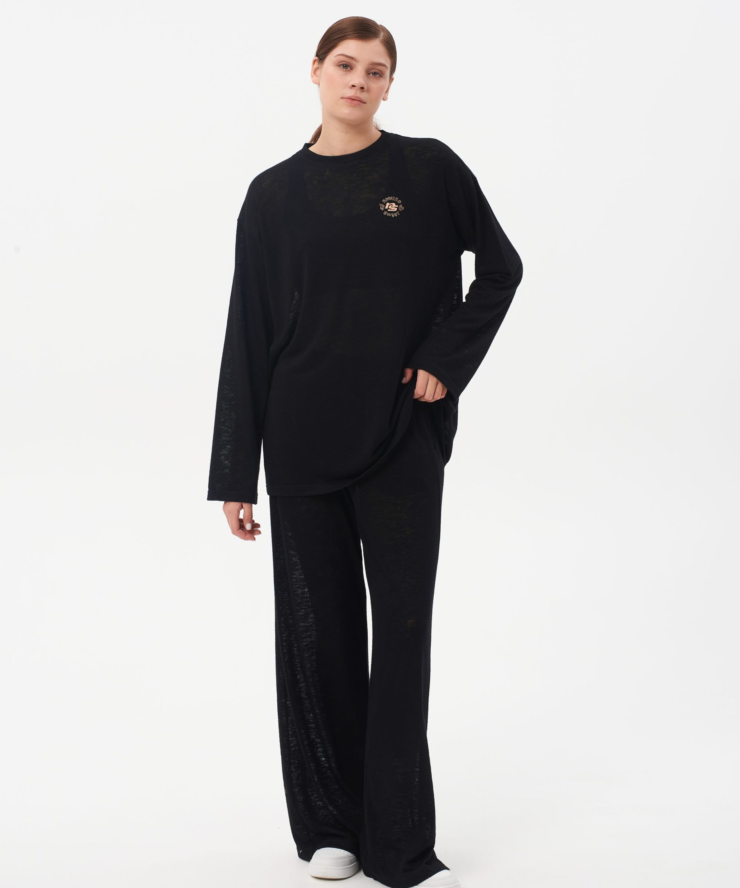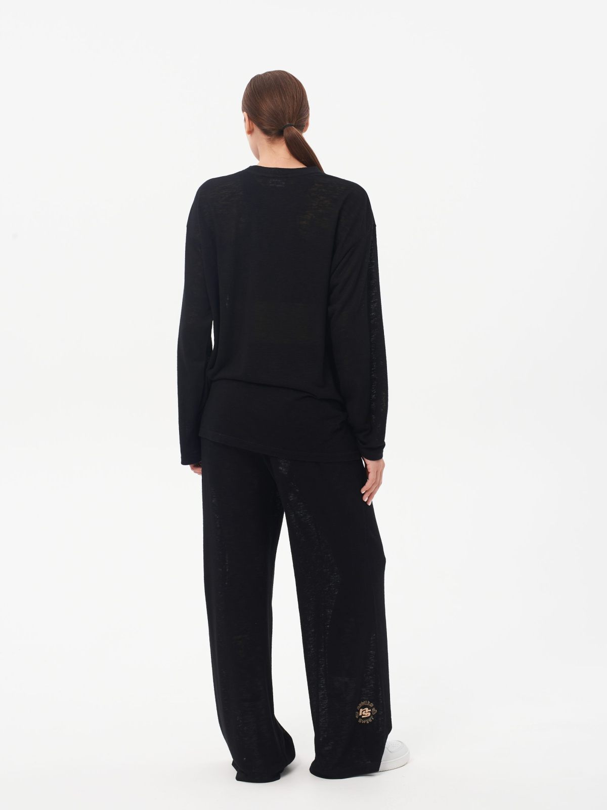 Женские прямые широкие брюки oversize силуэта. В составе 65% вискозы и 35% полиэстера. Материал является главным преимуществом этой модели - брюки легкие, мягкие, практически не ощущаются на теле. Выполнены в классическом черном цвете и отлично подходят для летних образов.