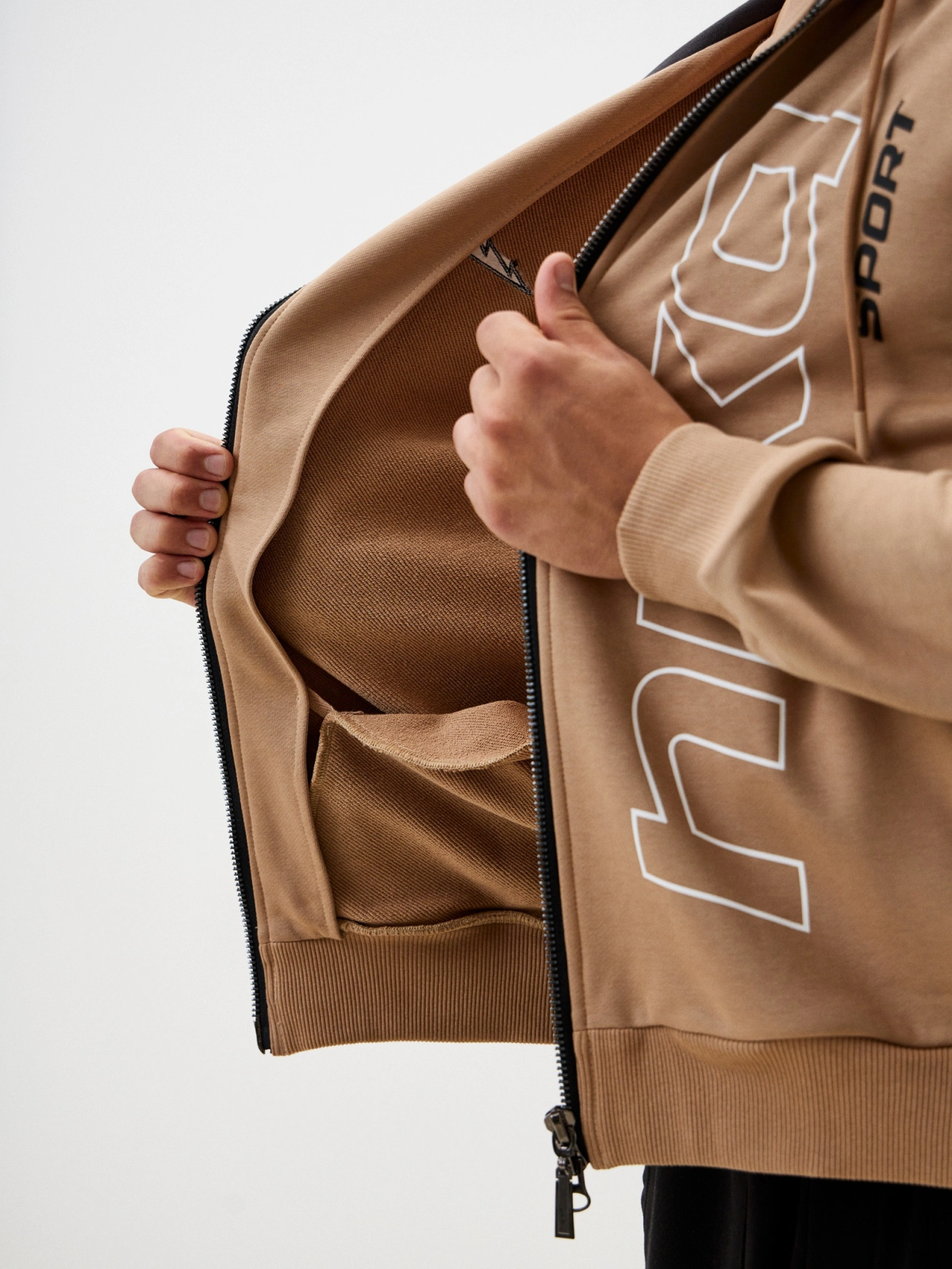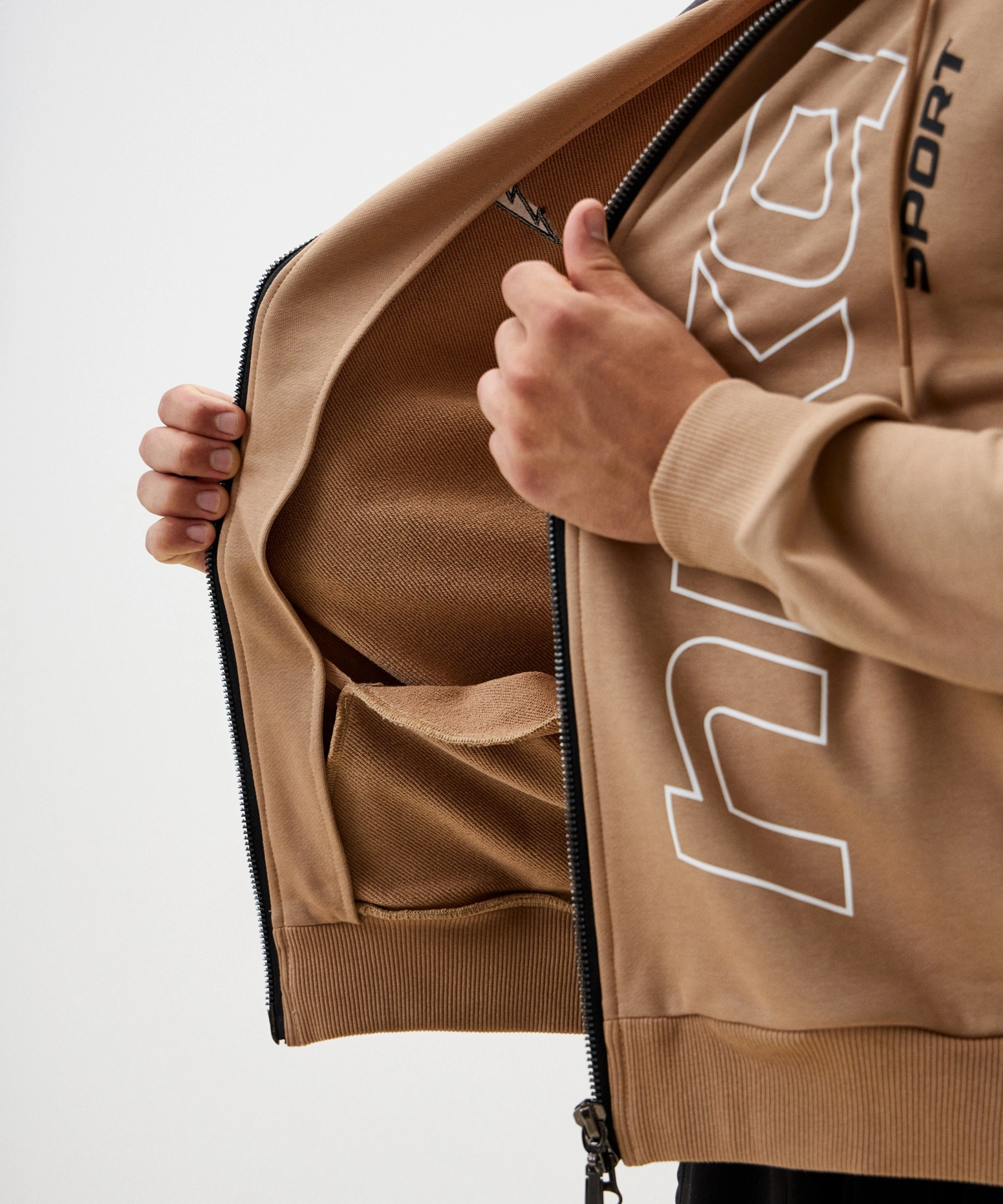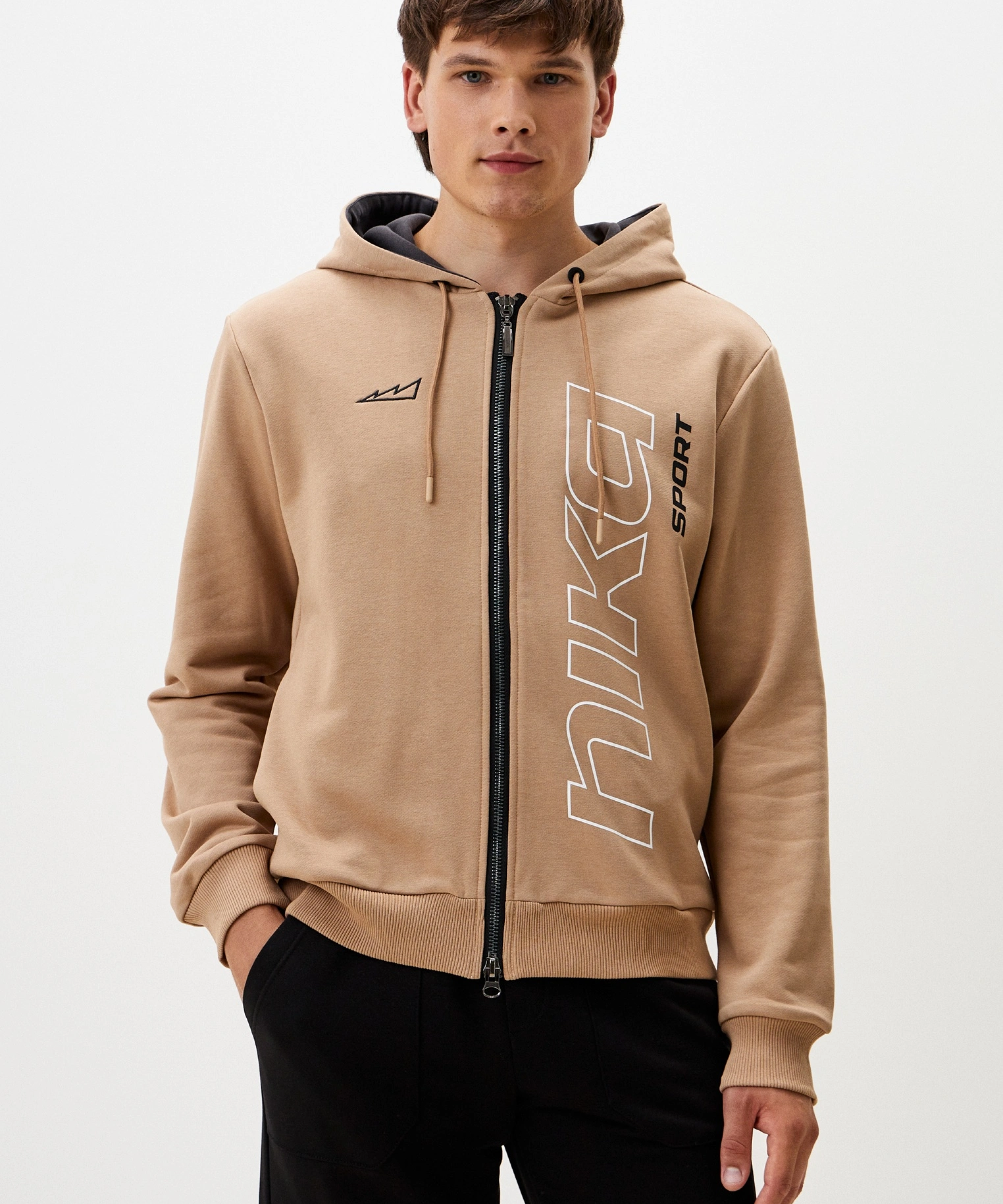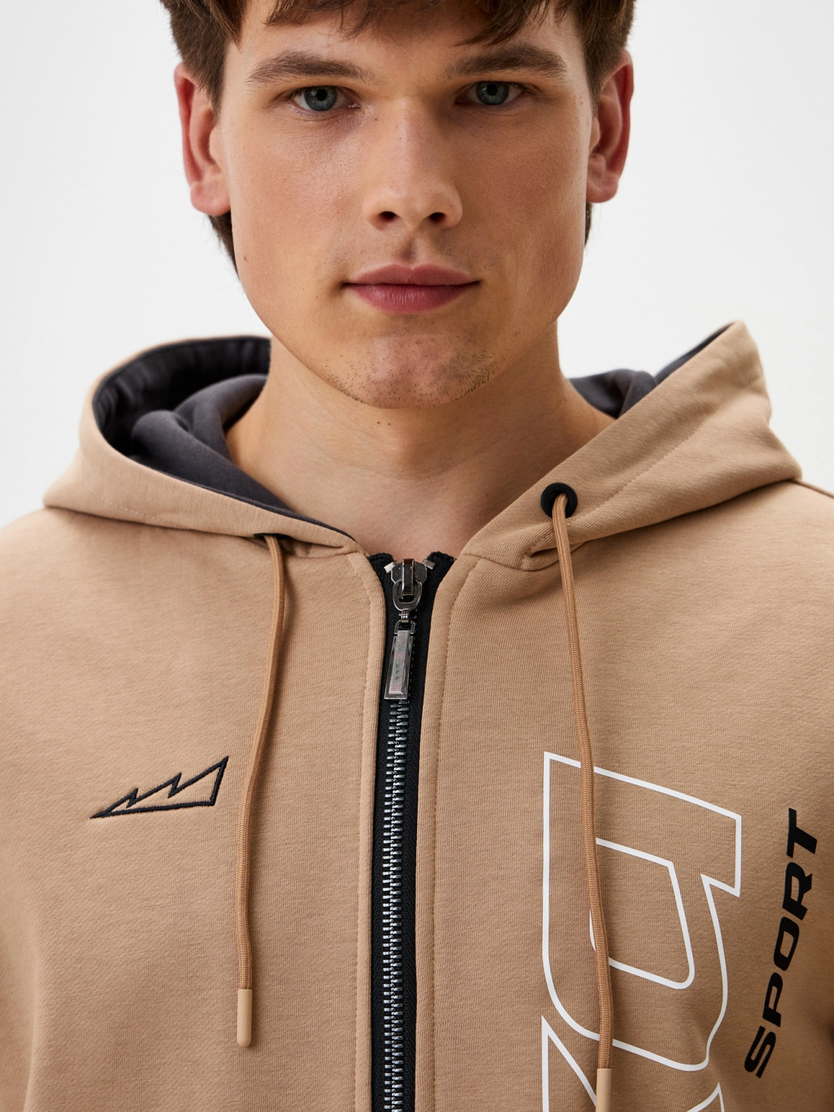 Мужское худи силуэта Regular из лимитированной коллекции B&G. В составе 80% хлопка и 20% полиэстера, что обеспечивает отличную посадку и долговечность изделия. Представлен в 2 цветах: спокойный бежевый и дерзкий темно-серый с оранжевыми акцентами. Дизайнерский лого-принт на груди, капюшон для защиты от непогоды с контрастной подкладкой и два глубоких кармана делают худи незаменимой и стильной вещью вашего повседневного гардероба.