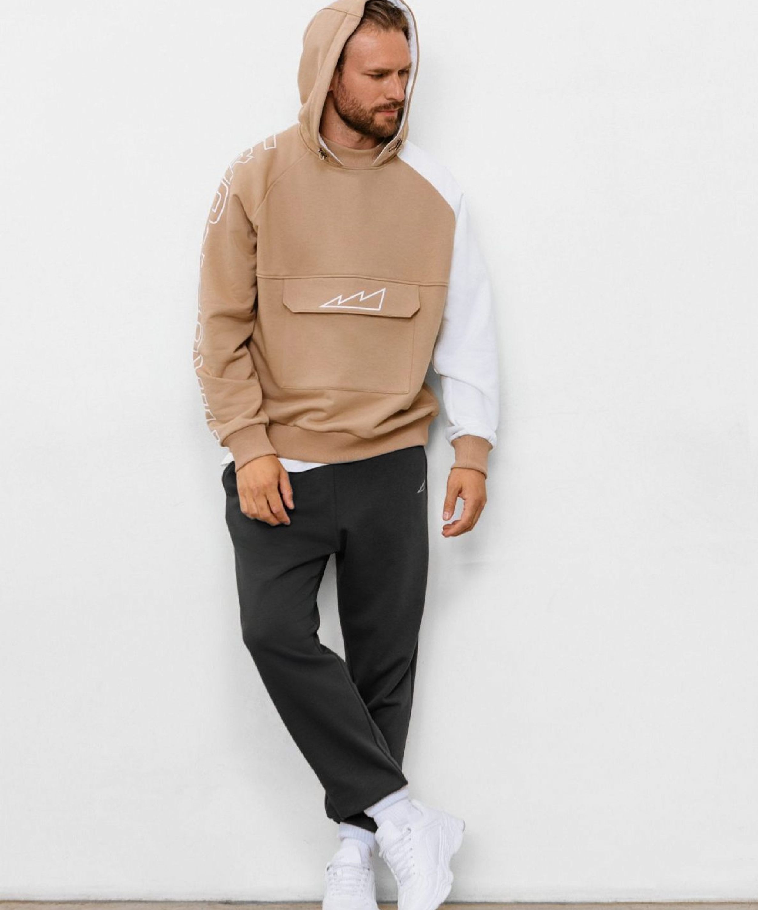 Мужское худи свободного силуэта Loose из лимитированной коллекции B&G. В составе 80% хлопка и 20% полиэстера, что обеспечивает отличную посадку и долговечность изделия. Контрастные рукав и подкладка, стильные дизайнерские лого-принты на правом рукаве и нагрудном кармане, удобный крой капюшона с воротником-стойкой делают худи незаменимой вещью вашего гардероба на каждый день и создают запоминающийся спортивный образ.