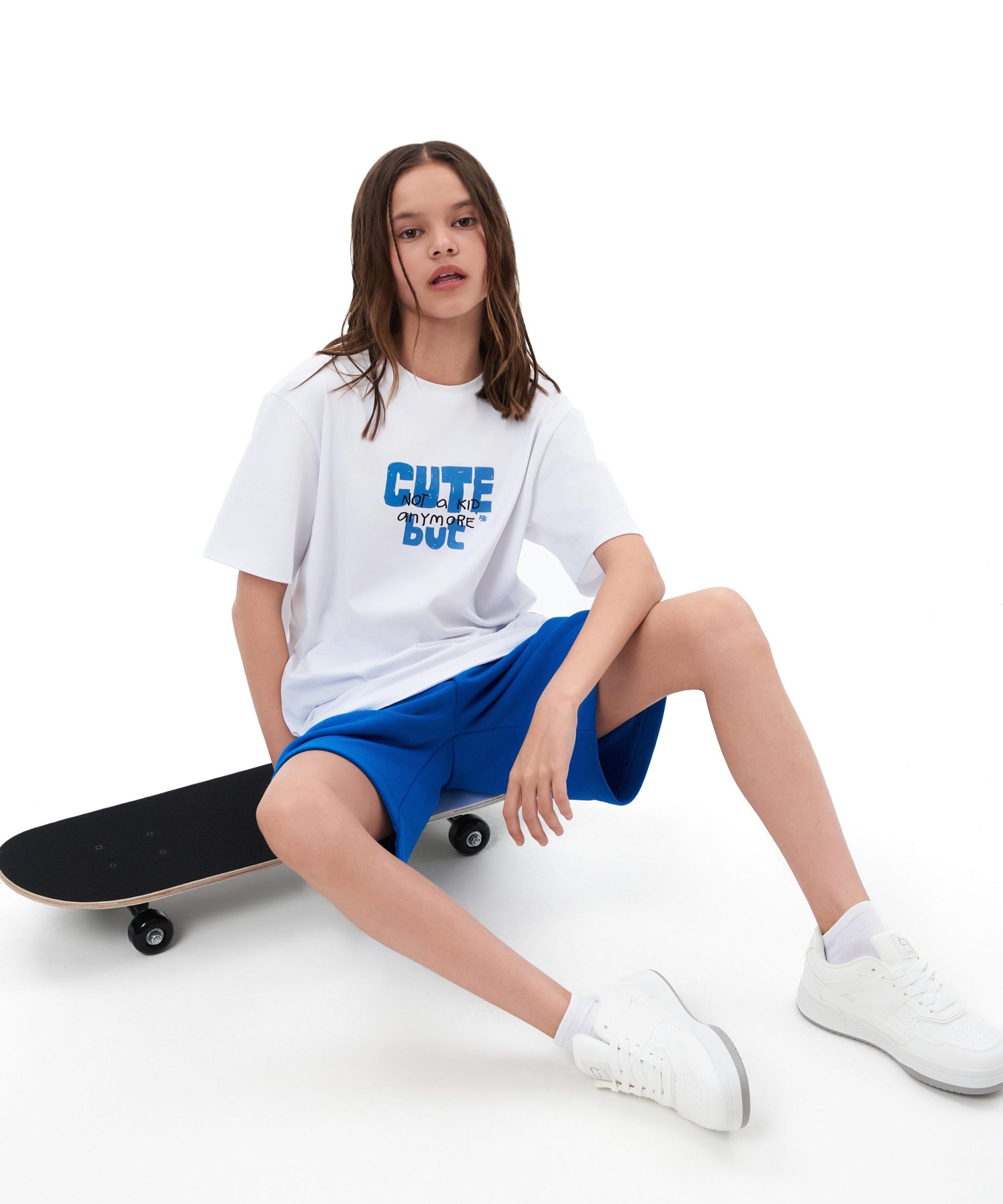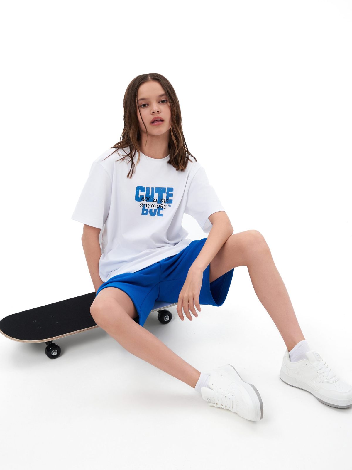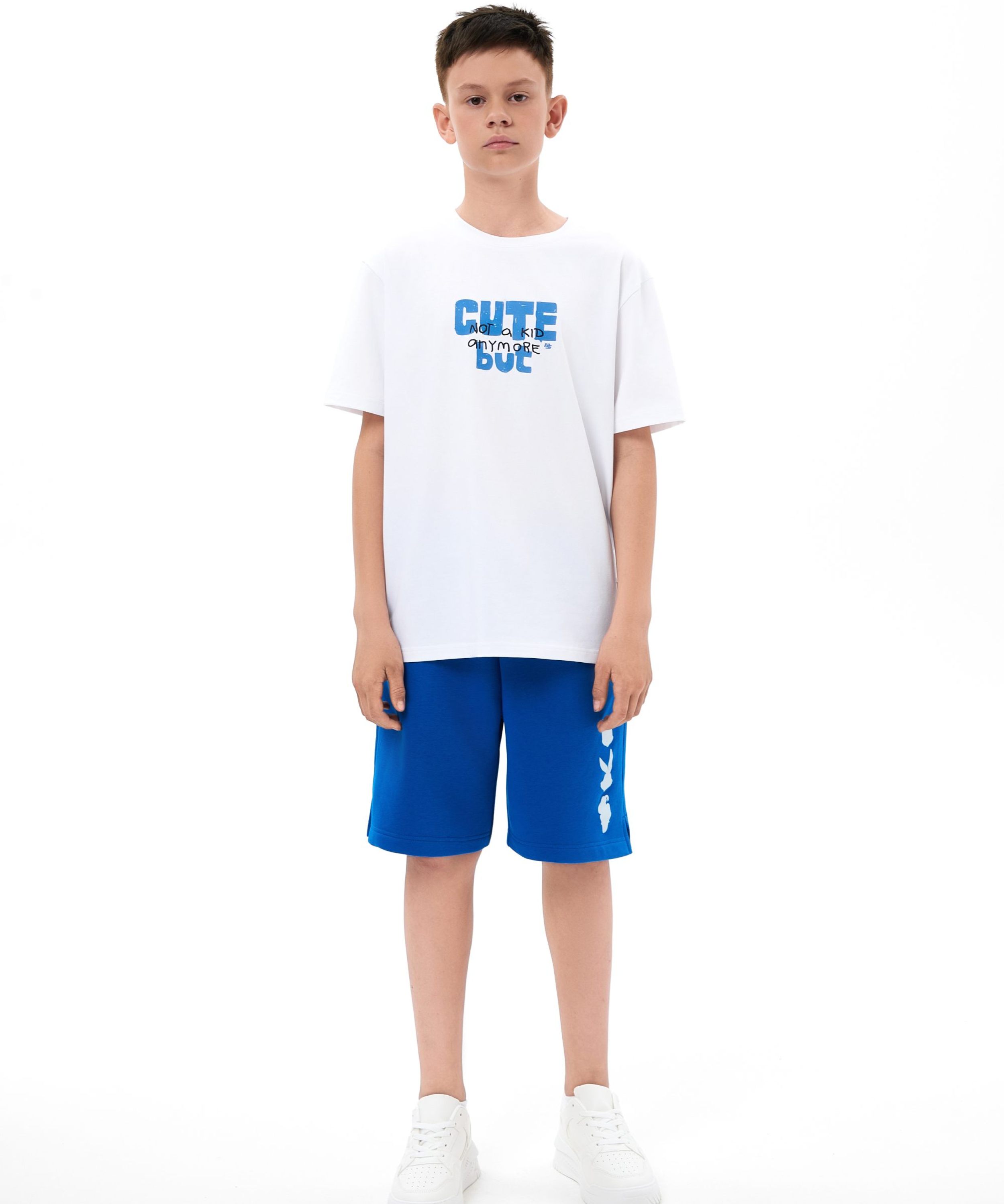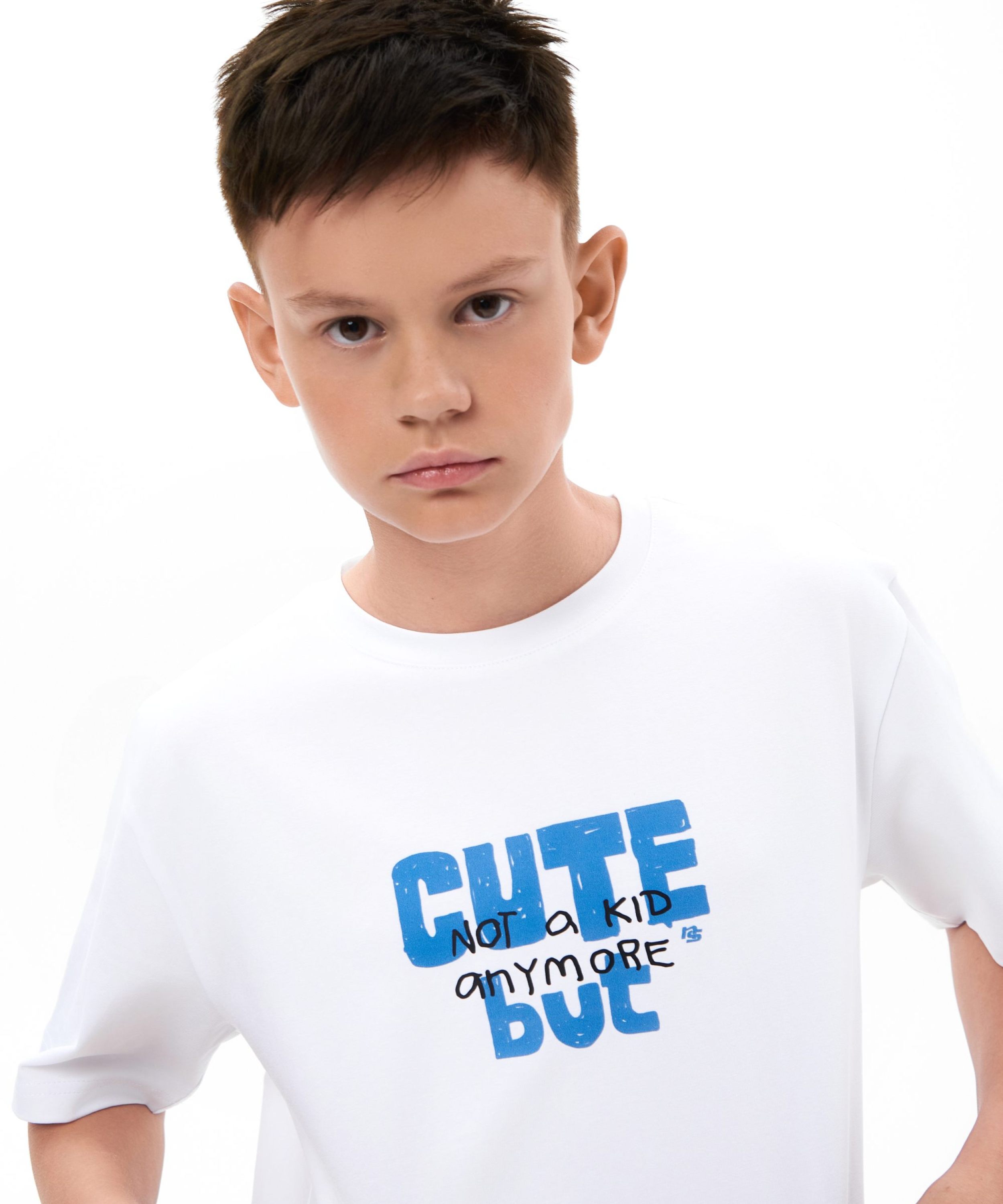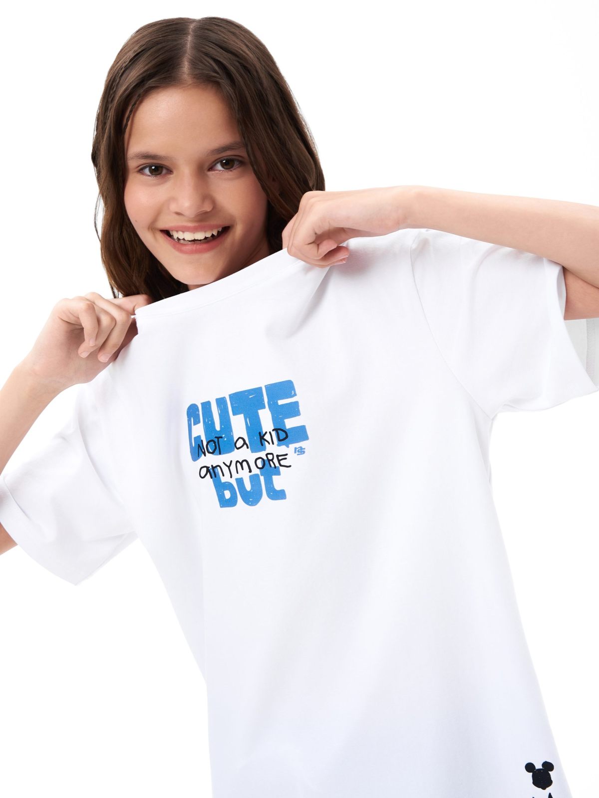 Детская футболка силуэта oversize из коллекции Naka. Выполнена из материала, в составе которого 92% хлопка и 8% эластана, что обеспечивает отличную посадку и долговечность изделия. На груди и спине расположены большие принты с дизайнерскими слоганами и символами капсулы "Not A Kid Anymore" - любимыми детскими персонажами для тех, кто уже не ребенок! Представлена классическом в белом цвете. Модель создана для комфортного и запоминающегося образа на каждый день.