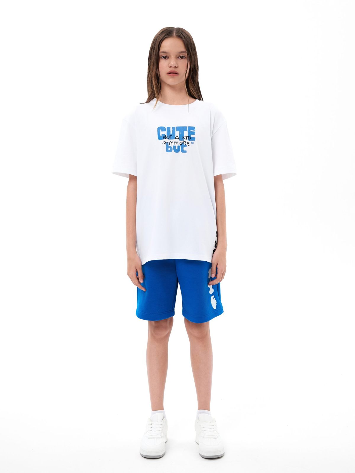 Детские шорты прямого силуэта из коллекции Naka. Выполнены из футера 3х-нитки, в составе которого 90% хлопка и 10% полиэстера, - гипоаллергенного, пропускающего воздух, мягкого и плотного материала. На левой ноге расположен принт с дизайнерскими символами капсулы "Not A Kid Anymore" - любимыми детскими персонажами для тех, кто уже не ребенок! Представлены в 2 цветах: ярком синем и глубоком графитовом. Модель создана для комфортного и запоминающегося образа на каждый день.