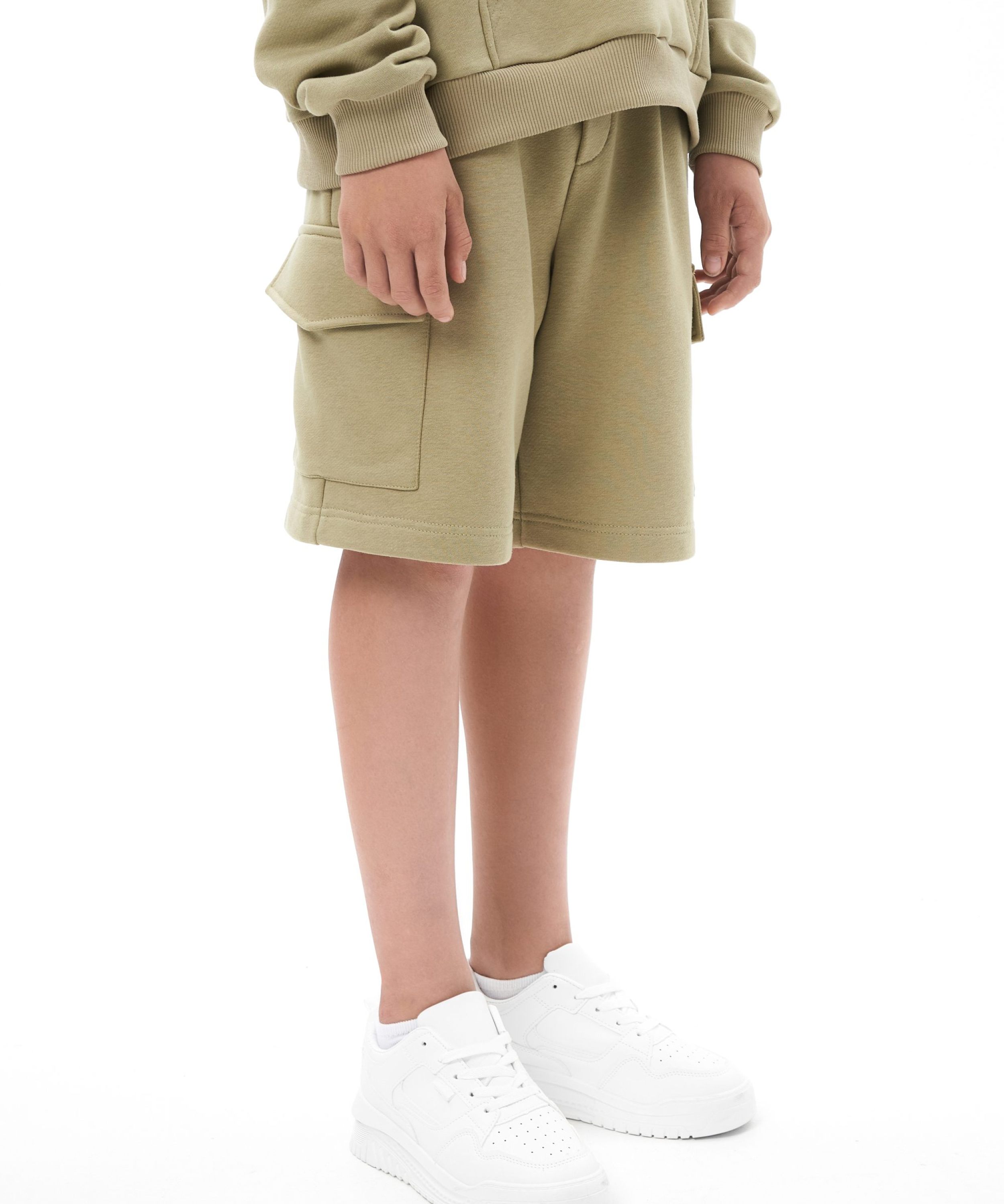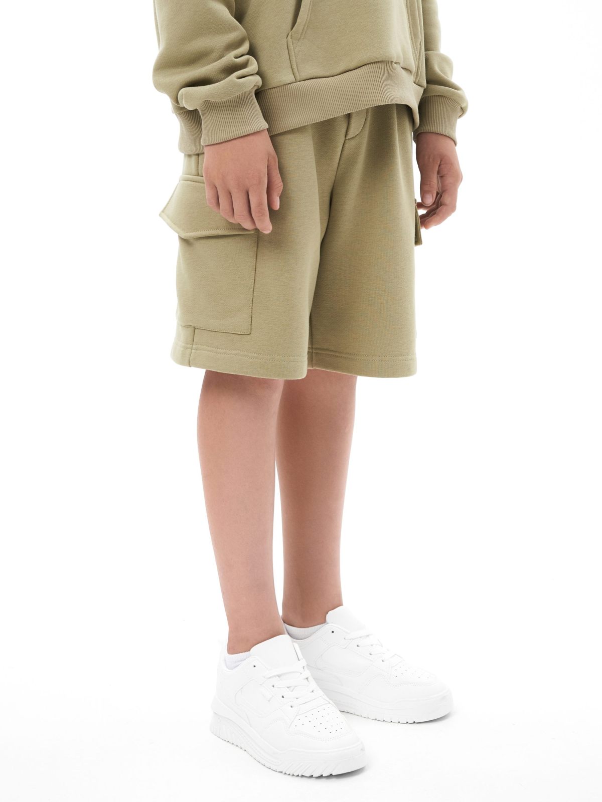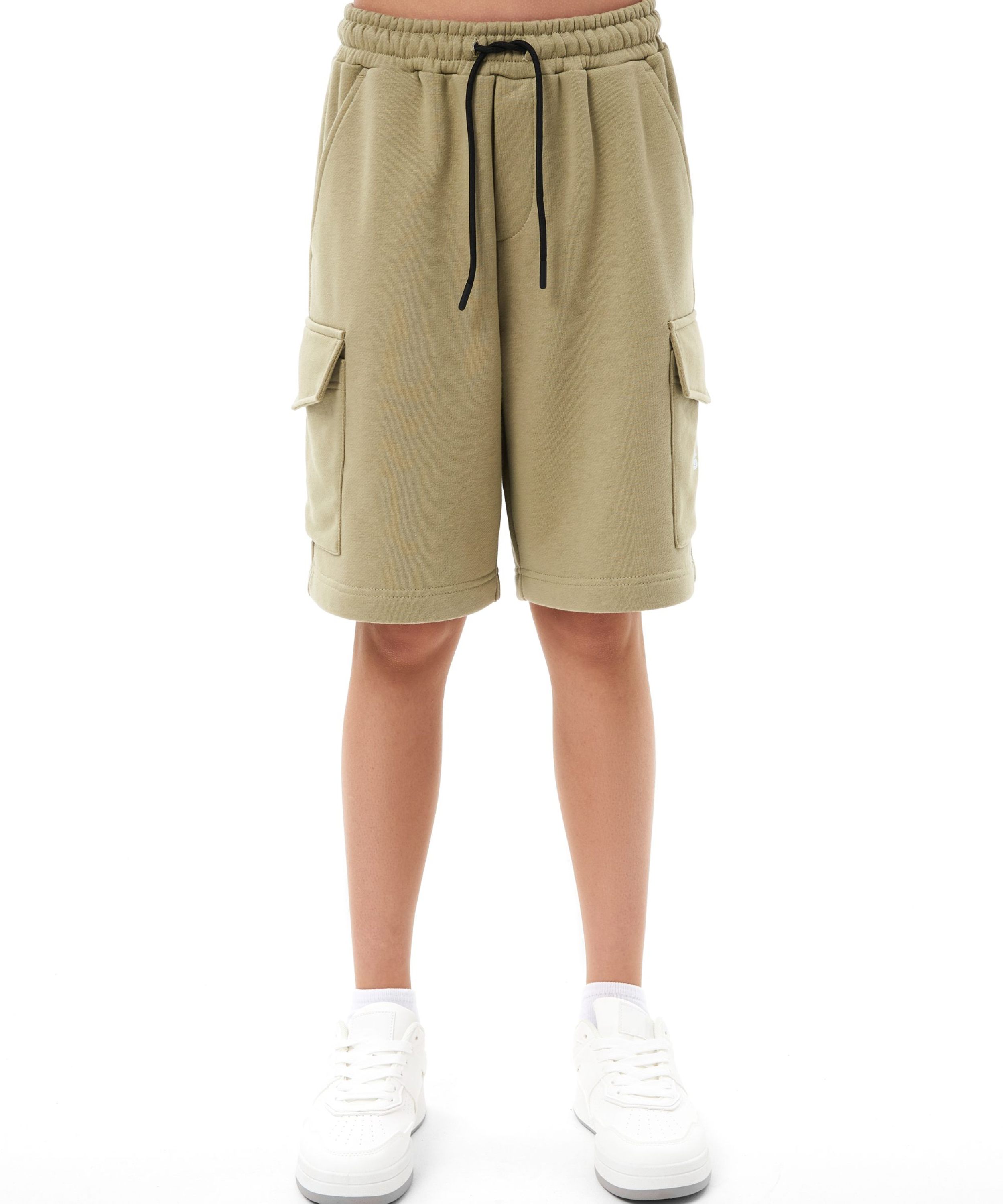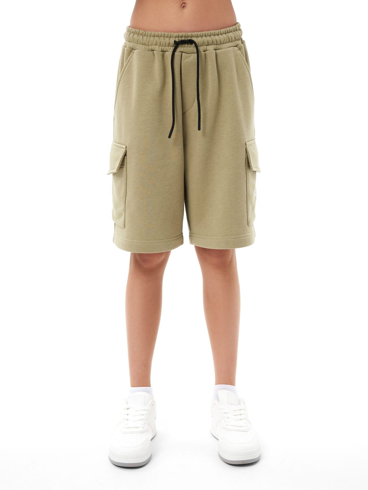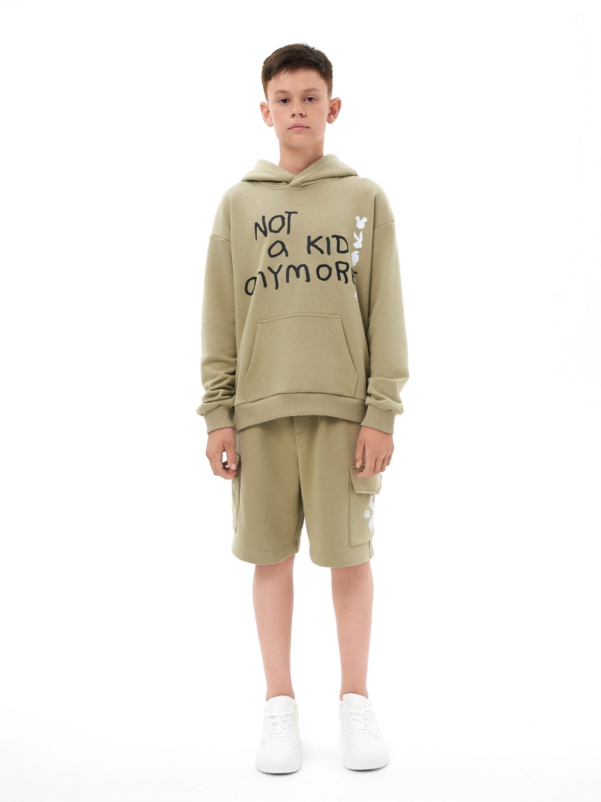 Детские карго-шорты прямого силуэта из коллекции Naka. Выполнены из футера 3х-нитки, в составе которого 92% хлопка и 8% эластана - гипоаллергенного, пропускающего воздух, мягкого и плотного материала. Особенностью модели являются два кармана-портфель на правой и левой ноге, эластичный шнур в поясе для регулировки посадки, а также большой принт с дизайнерским логотипом и символом капсулы "Not A Kid Anymore" - любимым дестким персонажем для тех, кто уже не ребенок! Представлены в трендовом оливковом цвете. Модель создана для комфортного и запоминающегося образа на каждый день.