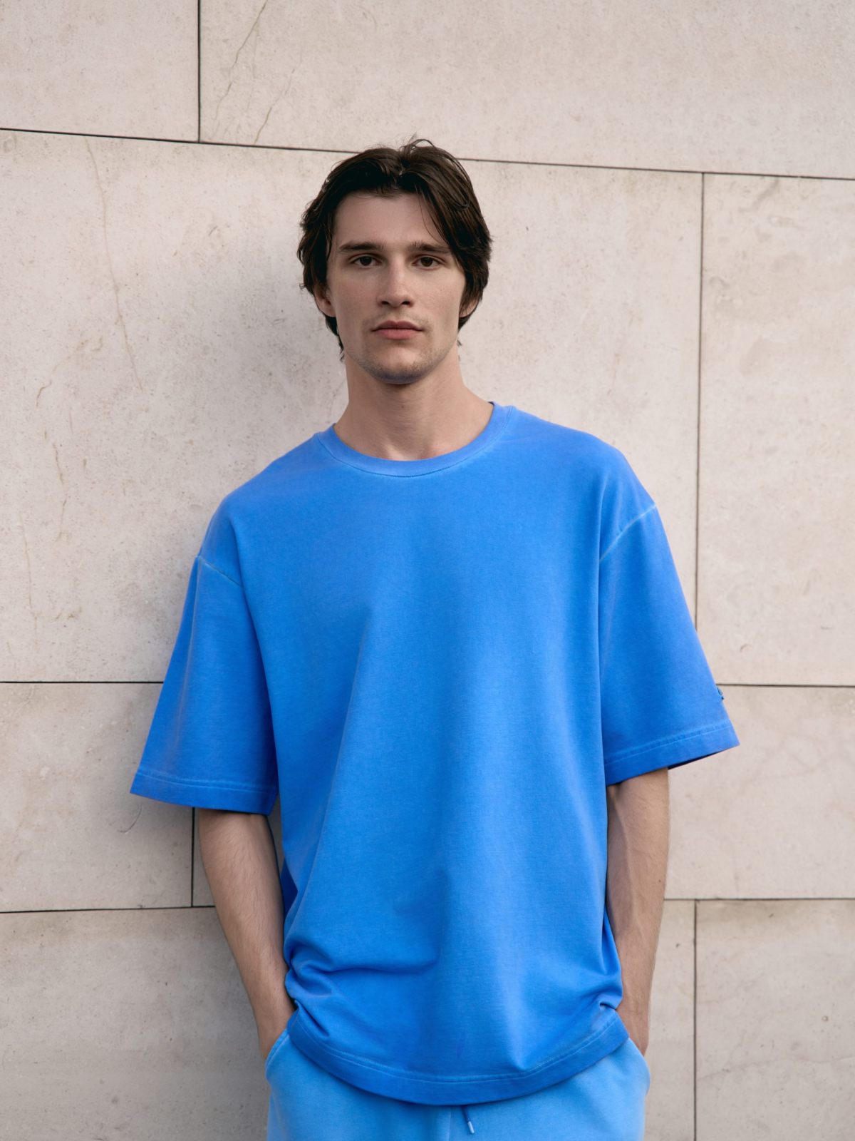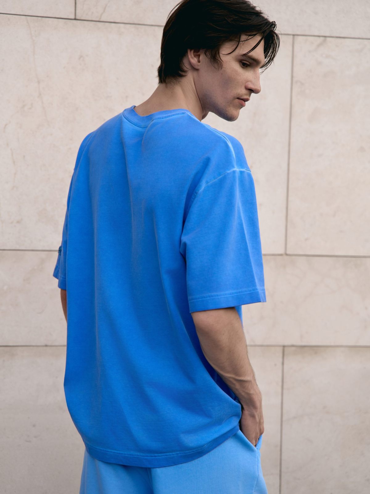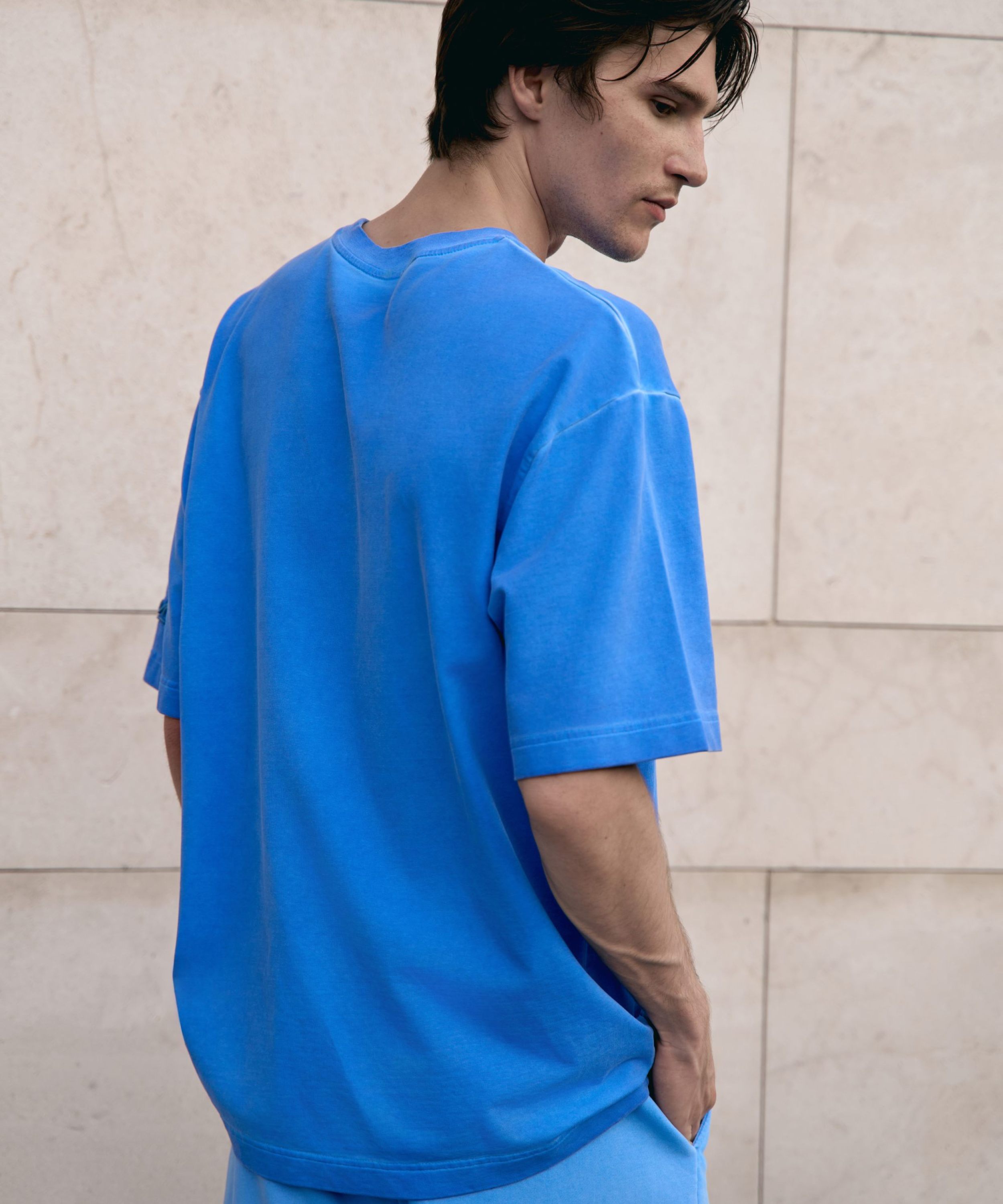 Футболка oversize силуэта. Выполнена из материала, в составе которого 92% хлопка и 8% эластана, за счет чего футболка лучше держит форму. Спущенная линия плеча делает крой футболки более молодежным. Представлены в двух трендовых цветах: графитовая и голубая варка. Отлично подходит для повседневных образов в спортивном стиле и позволяют создавать крутые комплекты с любой вещью в вашем гардеробе.