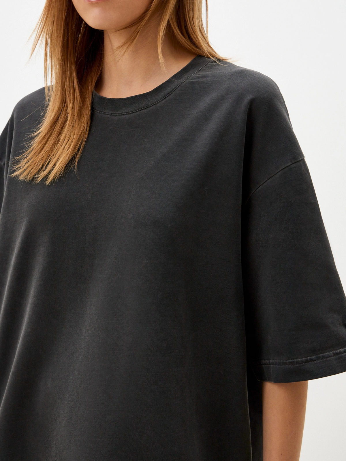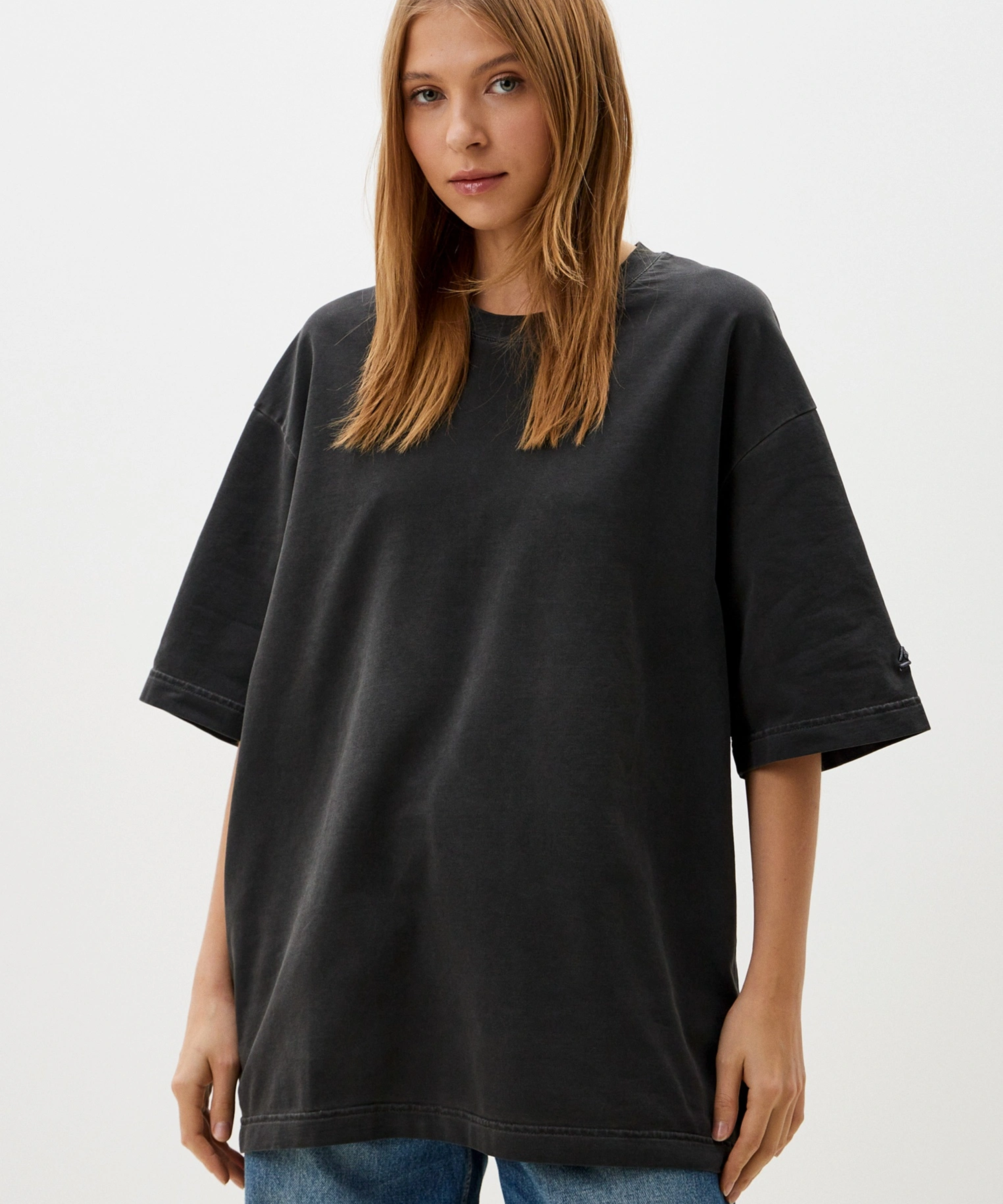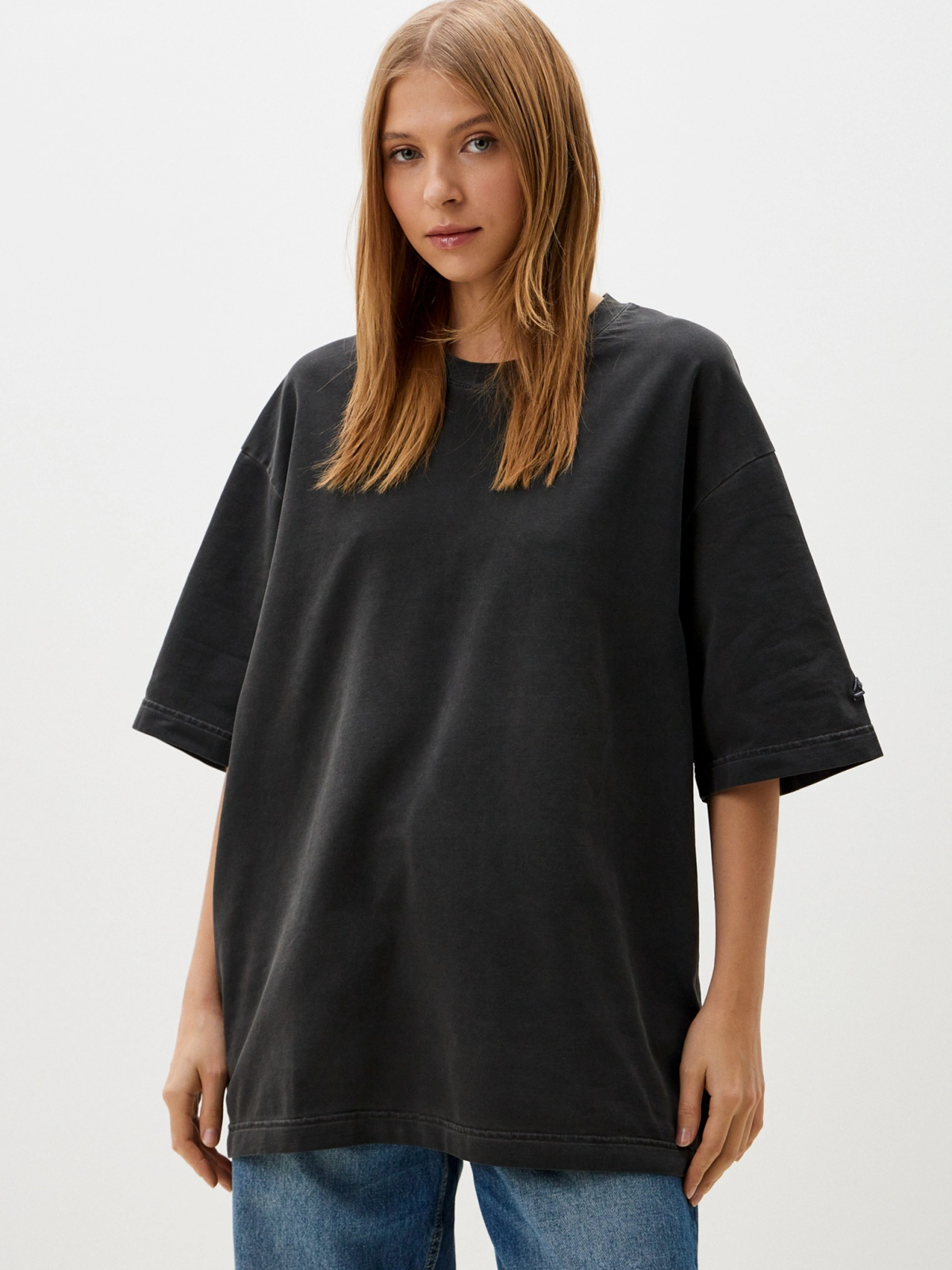 Футболка oversize силуэта. Выполнена из материала, в составе которого 92% хлопка и 8% эластана, за счет чего футболка лучше держит форму. Спущенная линия плеча делает крой футболки более молодежным. Представлены в двух трендовых цветах: графитовая и голубая варка. Отлично подходит для повседневных образов в спортивном стиле и позволяют создавать крутые комплекты с любой вещью в вашем гардеробе.