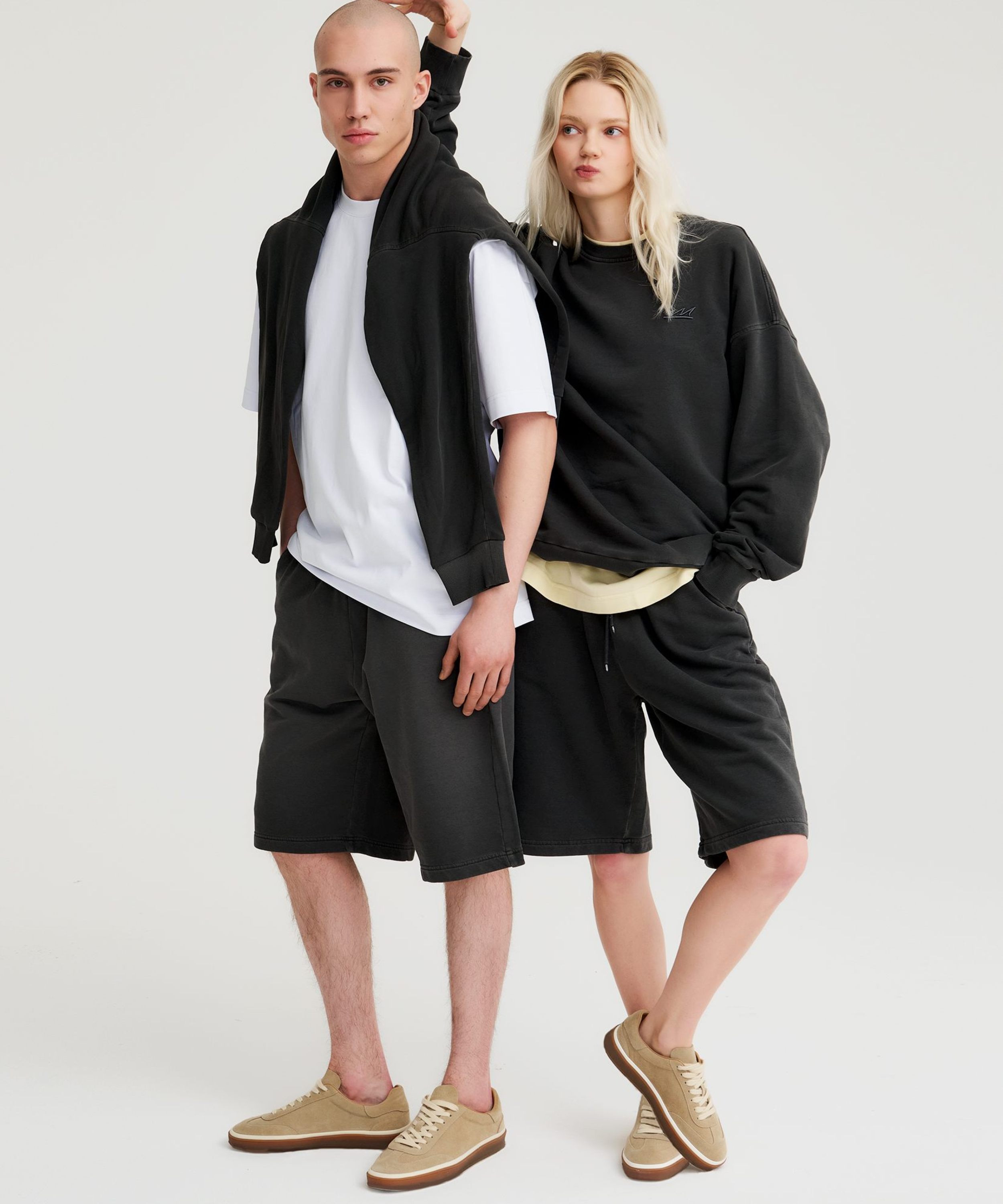 Оверсайз шорты бойфренды выполнены из материала средней плотности, в составе которого 85% хлопка и 15% полиэстера. Модель имеет сдвоенные размеры, так как крой - свободный. Посадка на талии - средняя, регулируемая шнуром на поясе. Шорты имеют два боковых кармана для хранения личных вещей и фирменную вышивку-логотип на левой ноге. Представлены в двух трендовых цветах: графитовая голубая варка. Созданы для повседневных образов в спортивном стиле и позволяют создавать крутые комплекты с любой вещью в вашем гардеробе.