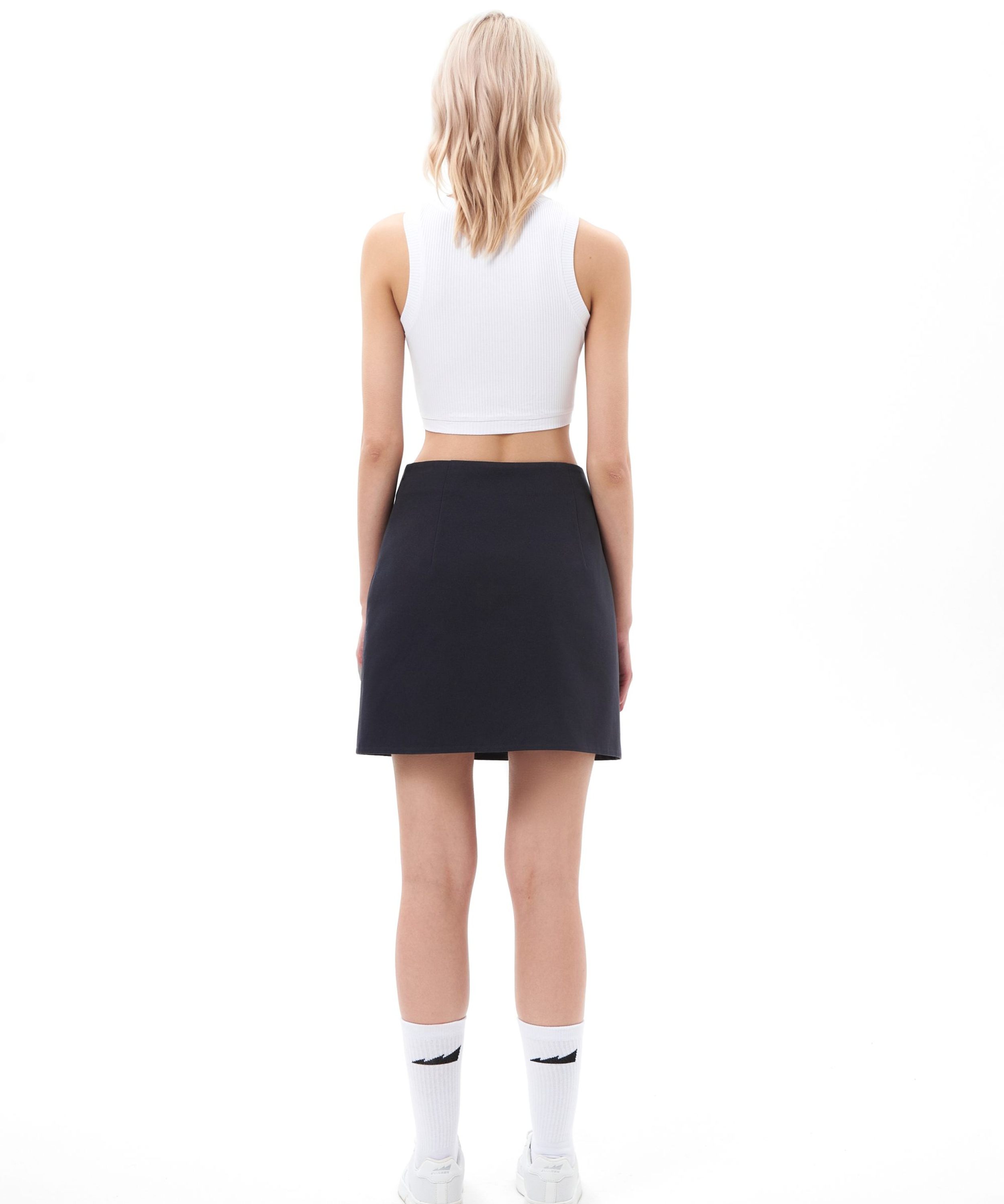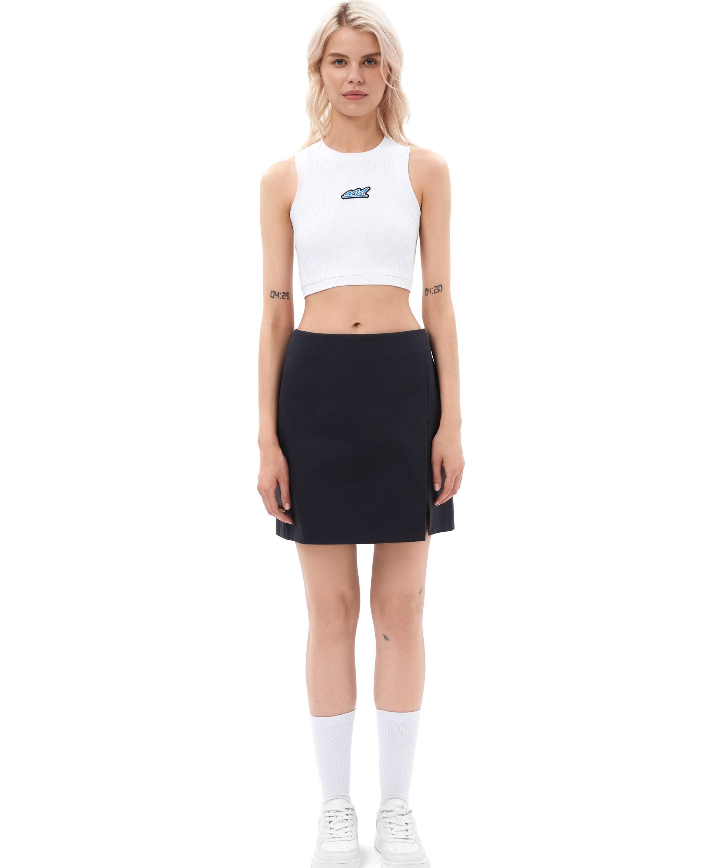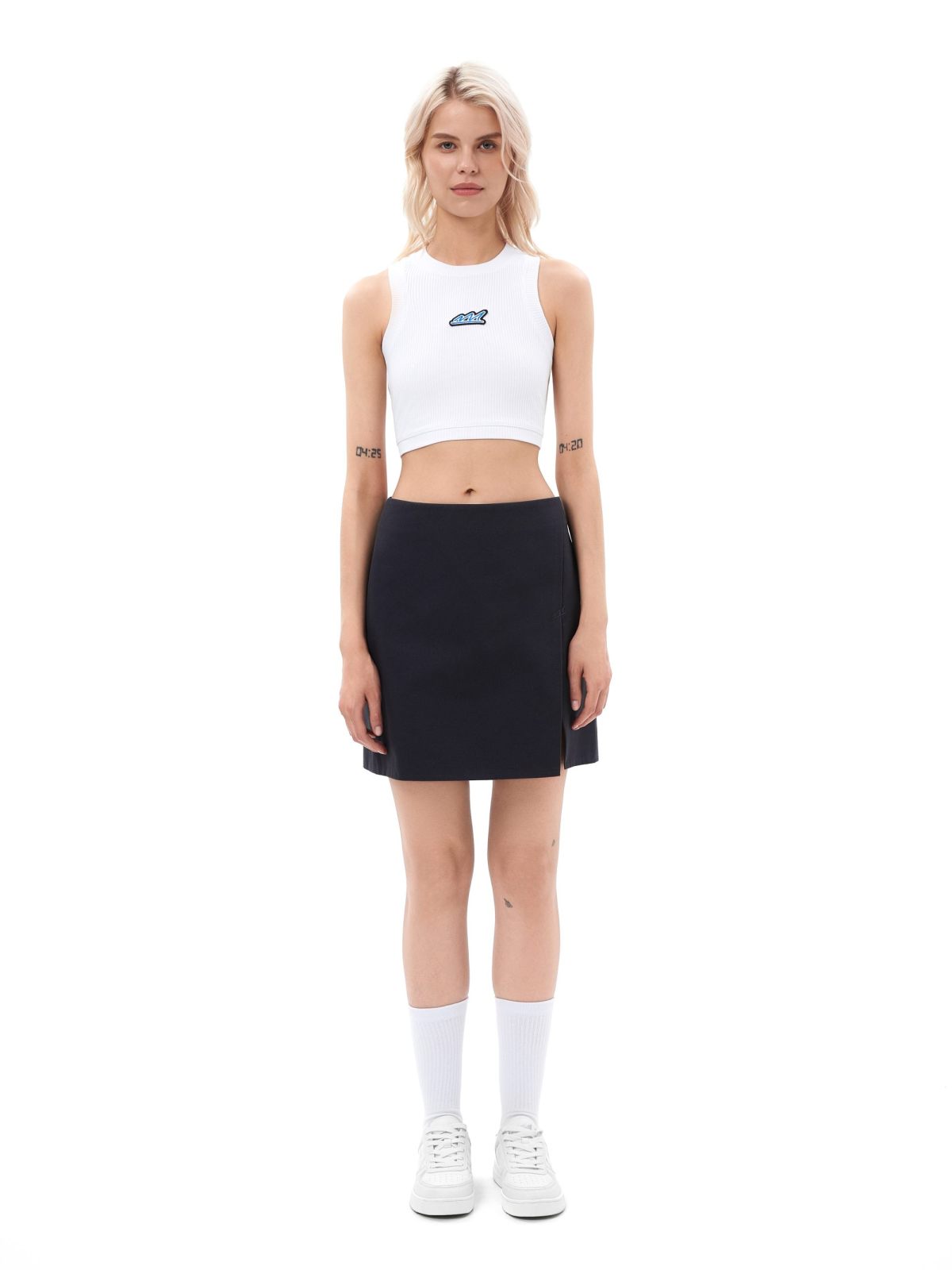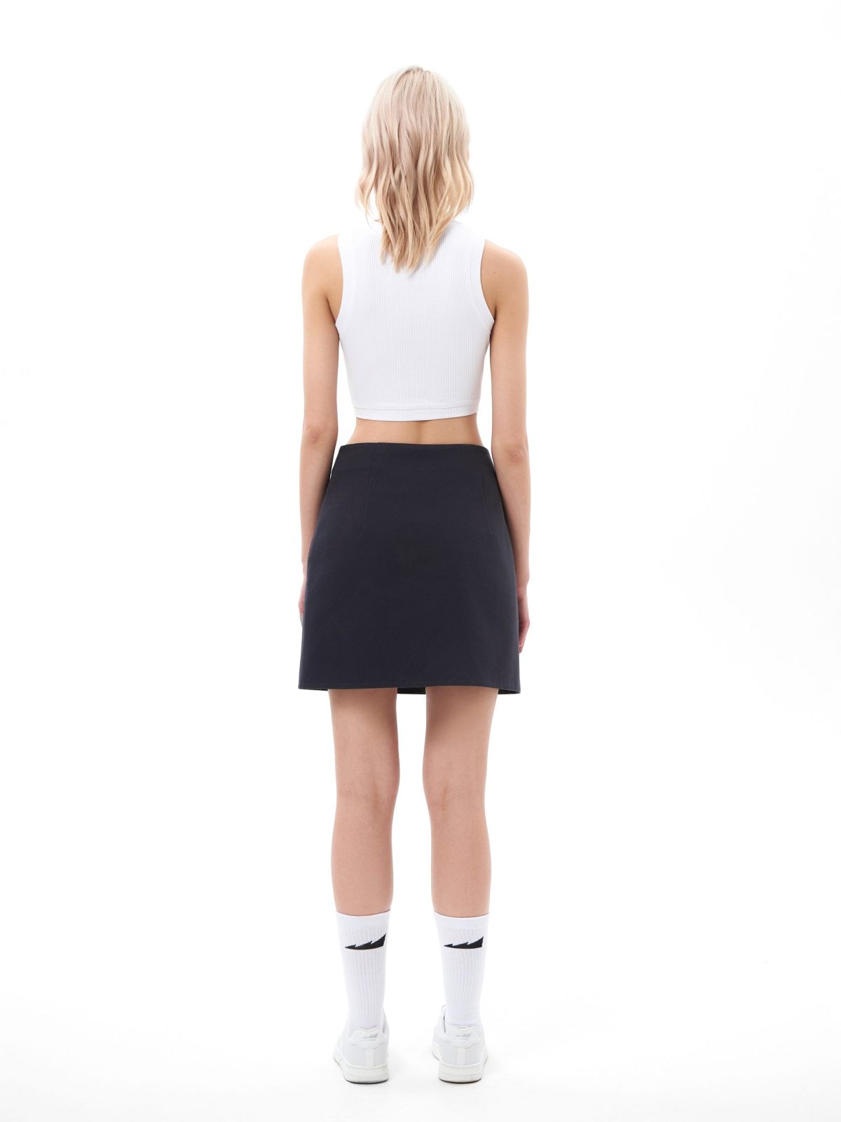 Женская короткая юбка "малышка" сделана из 100% плотного хлопка - гипоаллергенного материала, отлично пропускающего воздух. Прямой облегающий крой, необычный косой разрез, прихваченный стильной тональной вышивкой-логотипом, глубокий графитовый цвет - все это поможет вам создать стильный и дерзкий образ.