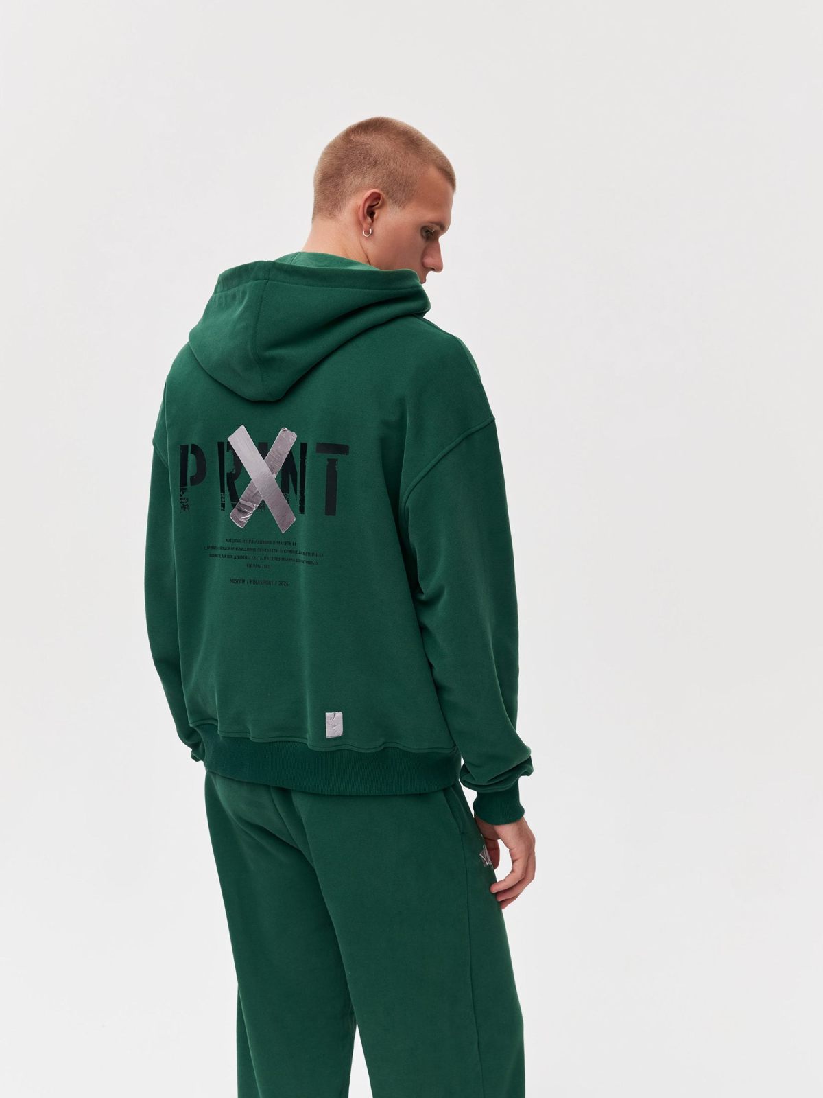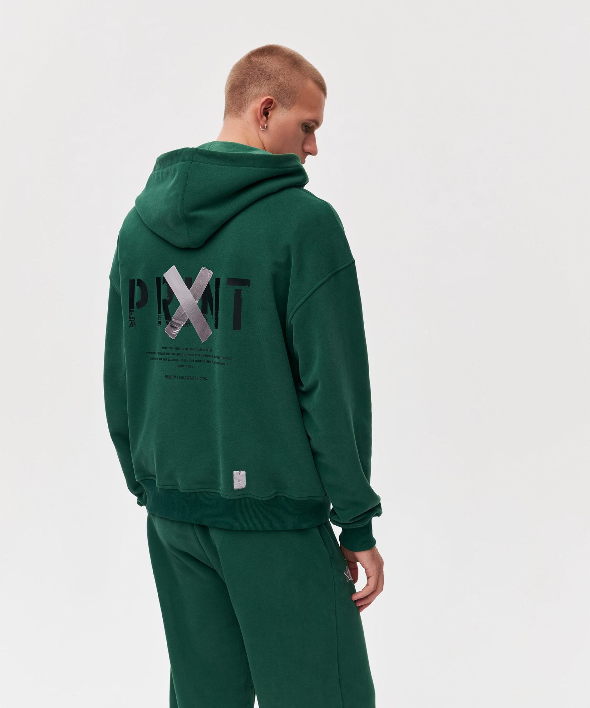 Мужской худи на молнии свободного кроя с принтом на спине из коллекции Oops выполнен из материала с эффектом peach, в составе которого 90% хлопка 10% полиэстера, что делает худи невероятно мягким, обеспечивает отличную посадку и долговечность изделия. На груди расположен принт с логотипом бренда в стиле Oops, а так же несколько маленьких принтов на рукаве, кармане кенгуру и нижней части спины. Стильный худи с объемным капюшоном и спущенным плечом отлично дополнит ваш классный образ. В комплекте к худи в ассортименте представлены брюки M4OPS83-DRK/GRN.