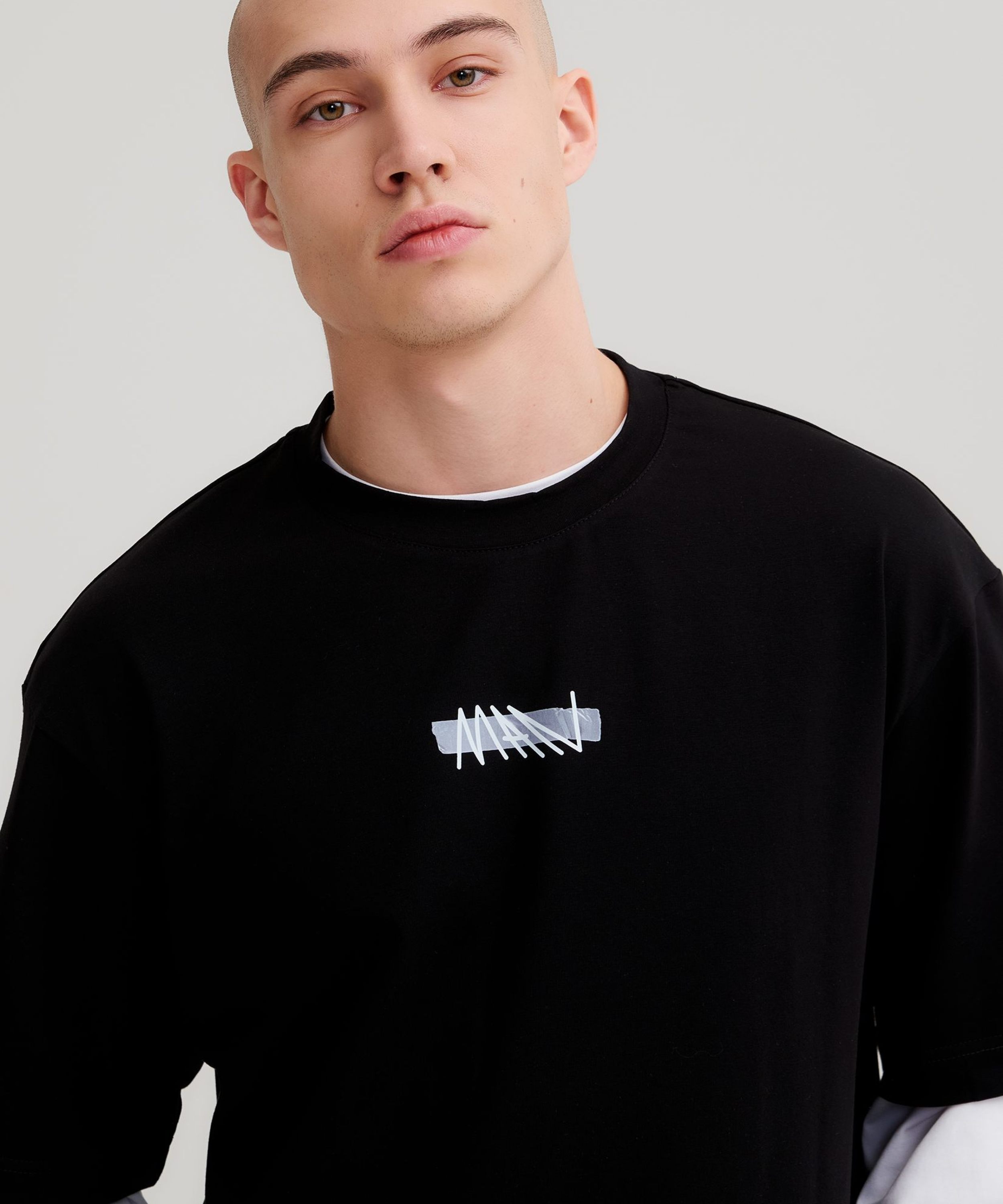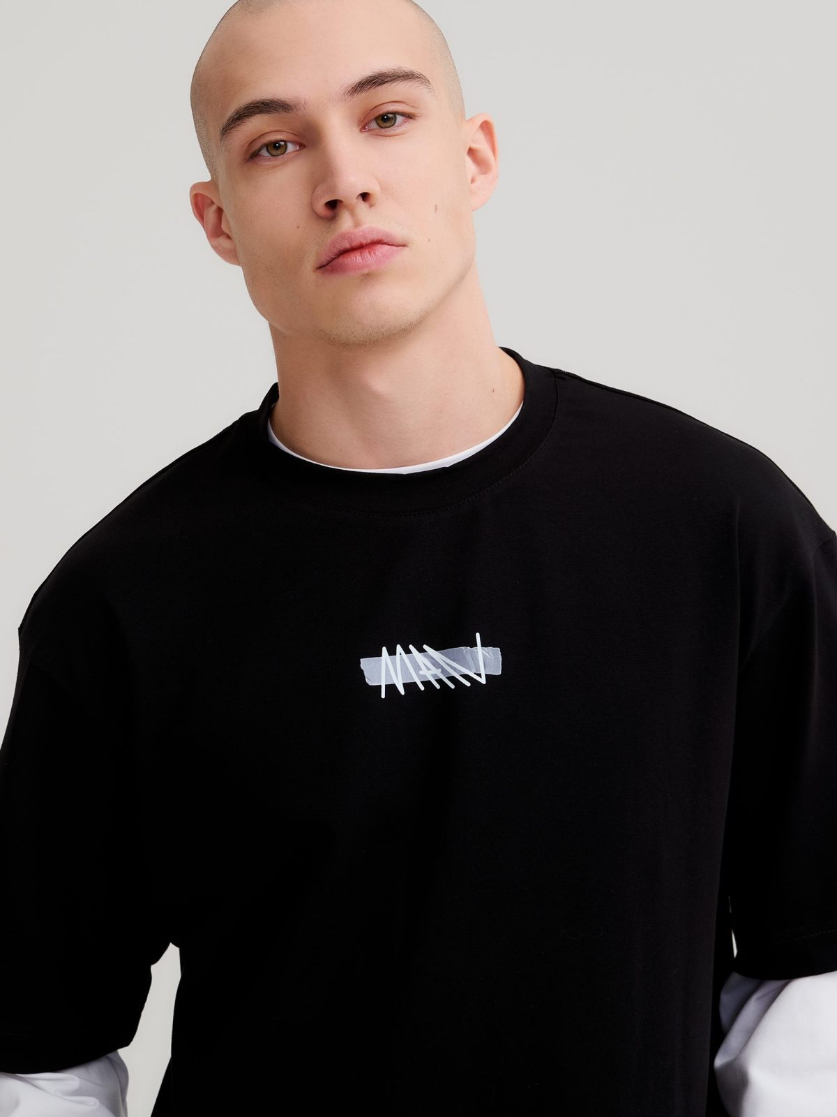 Мужская футболка oversize силуэта из коллекции Oops выполнена из материала, в составе которого 92% хлопка и 8% эластана, за счет чего футболка более эластичная и лучше держит форму. На груди и на спине расположены тематические принты в духе коллекции. Модель представлена в трех цветах: белый, черный и кирпичный. Футболка легко сочетается как со спортивной так и с повседневной одеждой и легко дополнит ваш дерзкий образ.