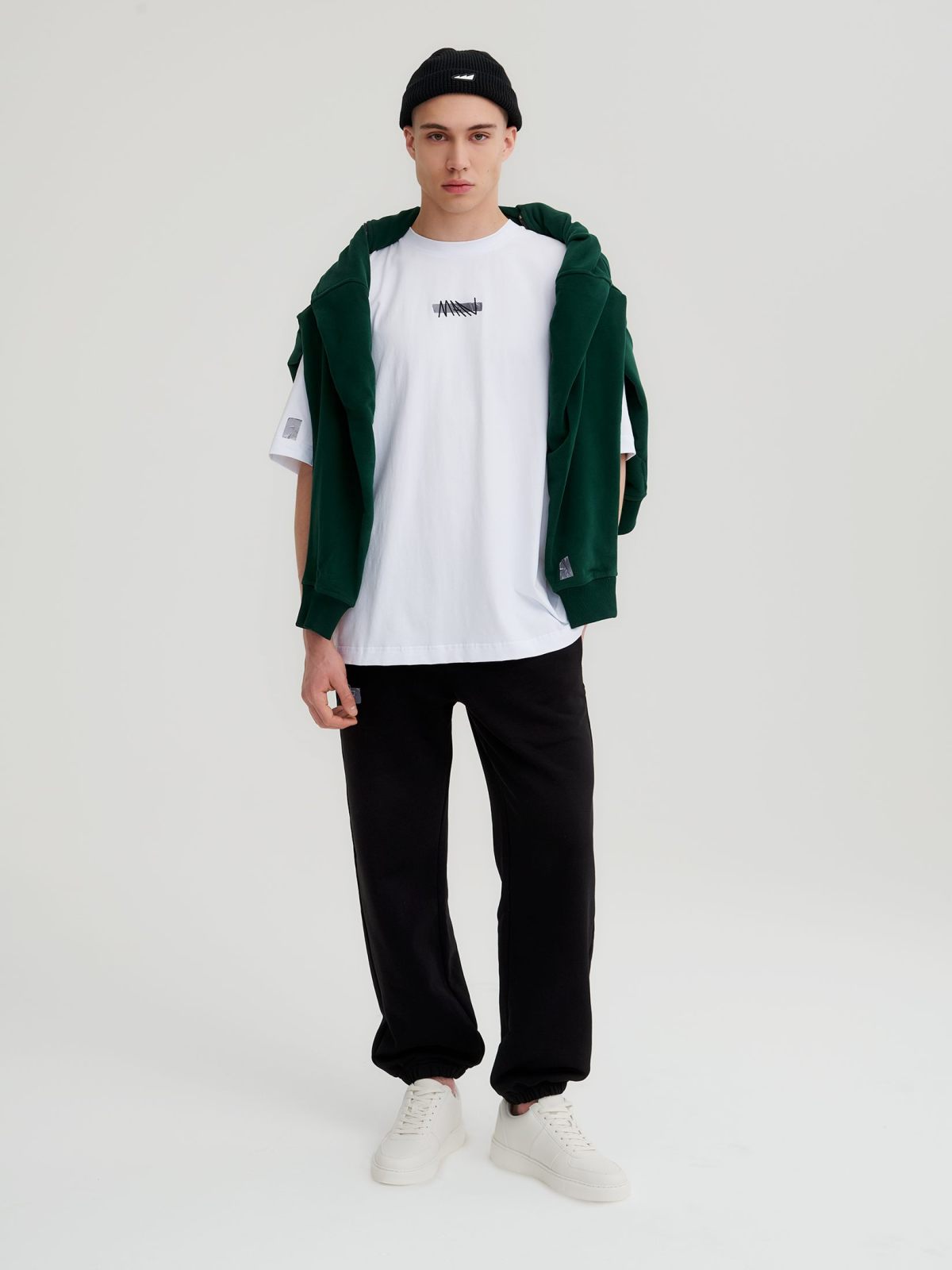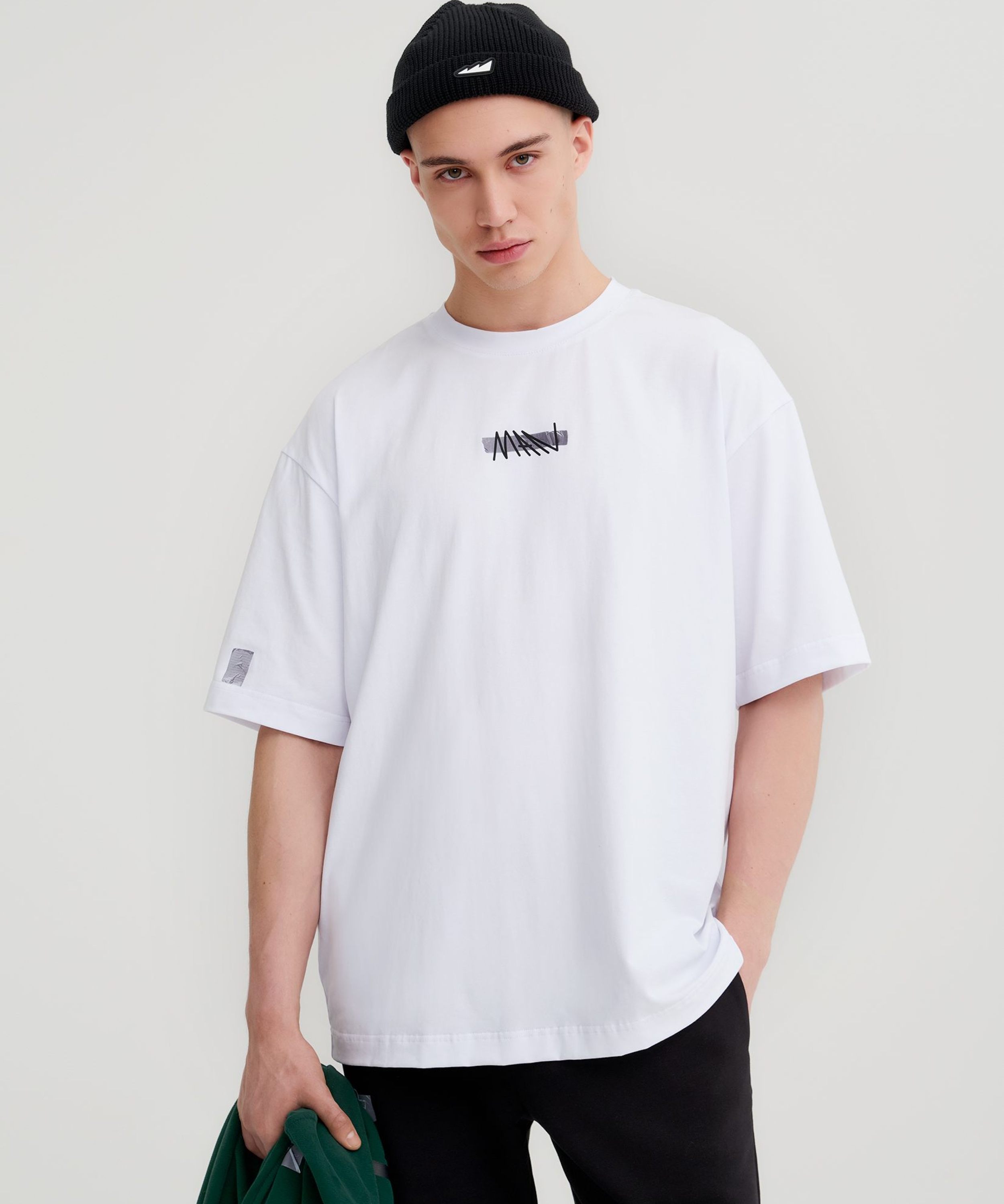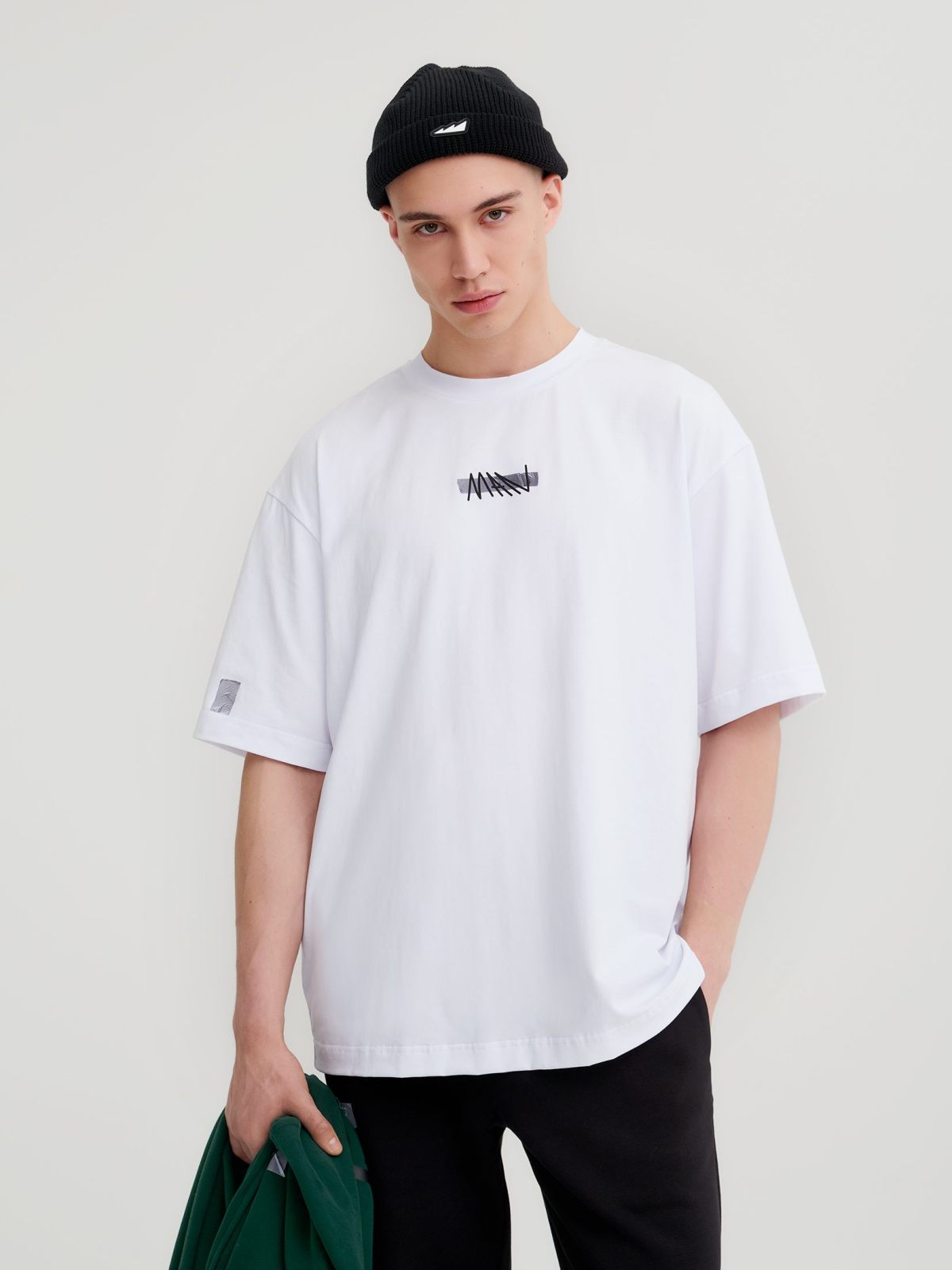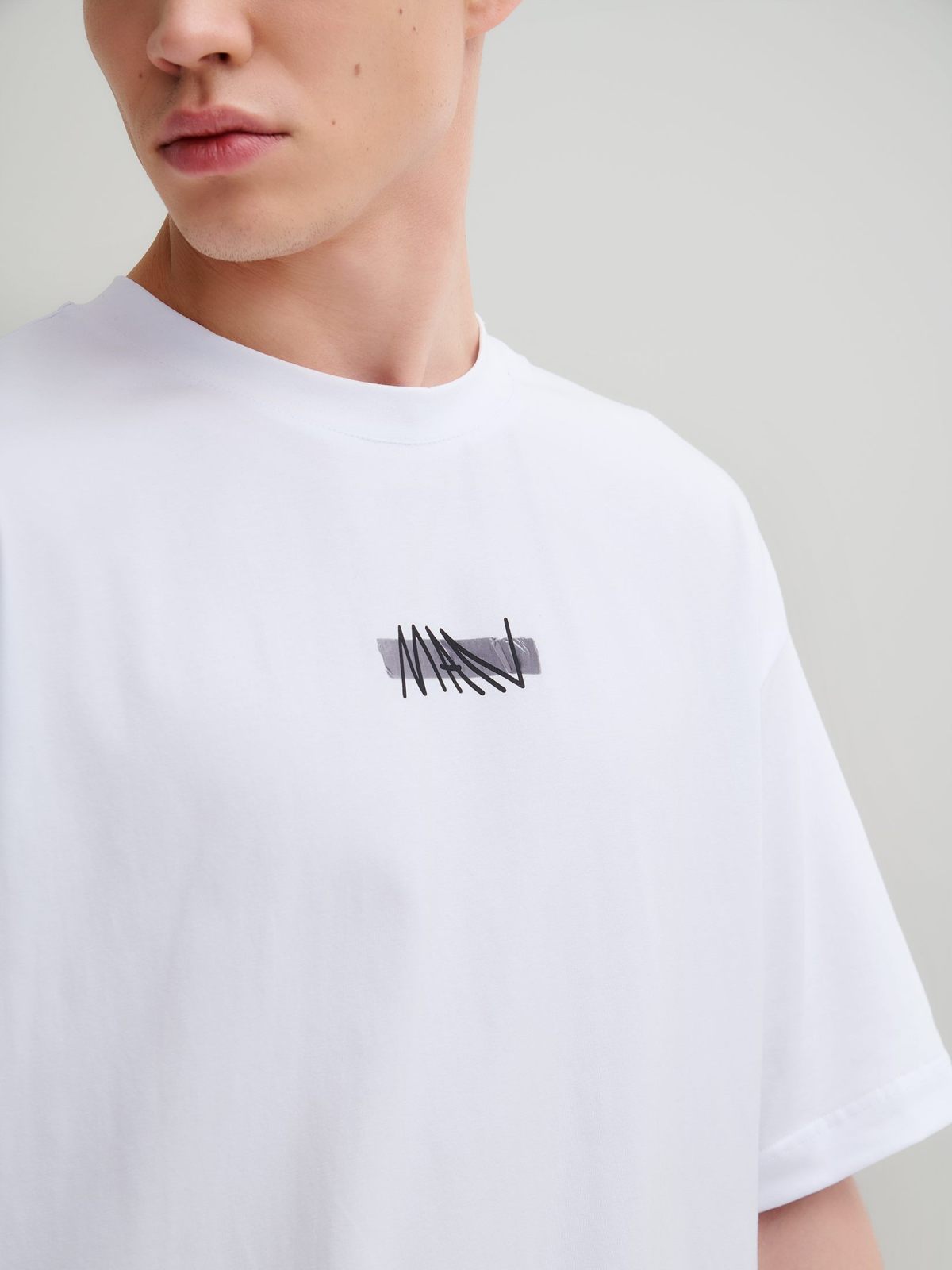 Мужская футболка oversize силуэта из коллекции Oops выполнена из материала, в составе которого 92% хлопка и 8% эластана, за счет чего футболка более эластичная и лучше держит форму. На груди и на спине расположены тематические принты в духе коллекции. Модель представлена в трех цветах: белый, черный и кирпичный. Футболка легко сочетается как со спортивной так и с повседневной одеждой и легко дополнит ваш дерзкий образ.