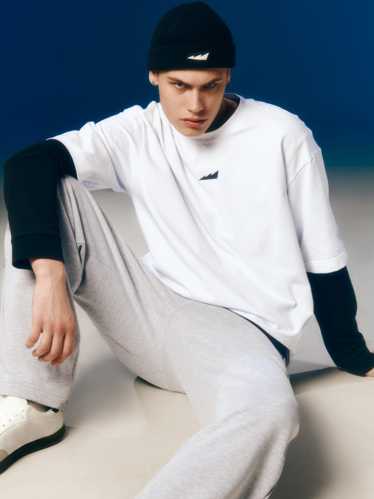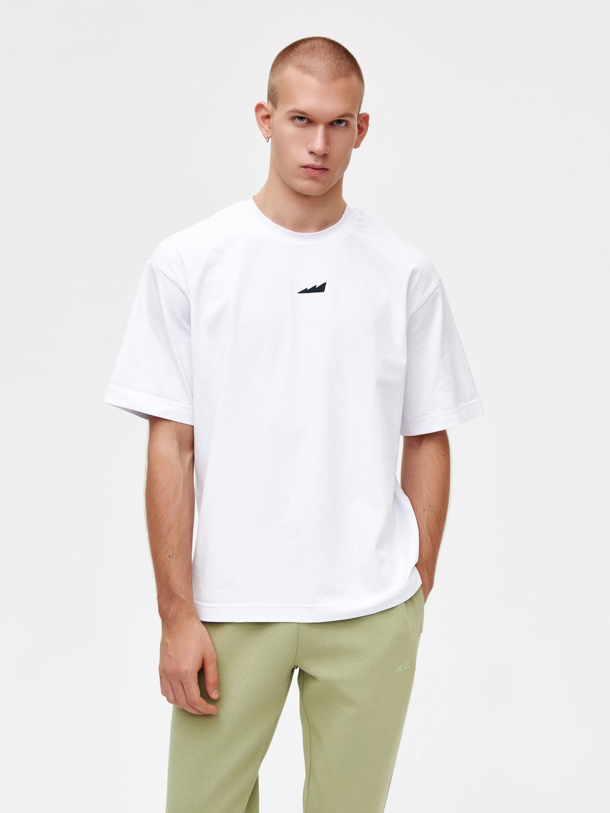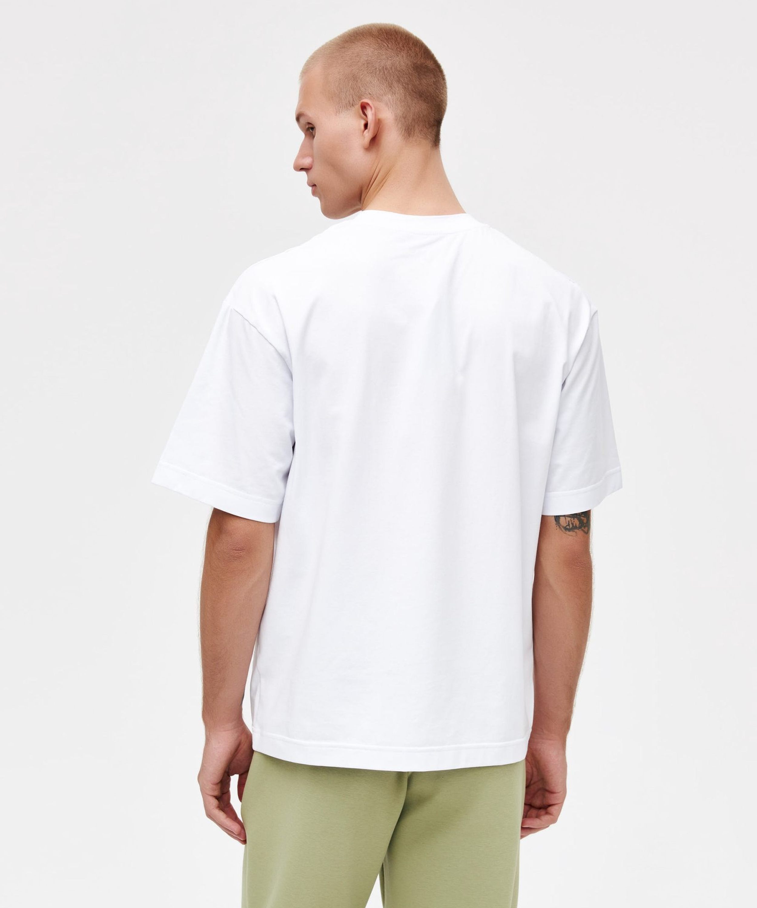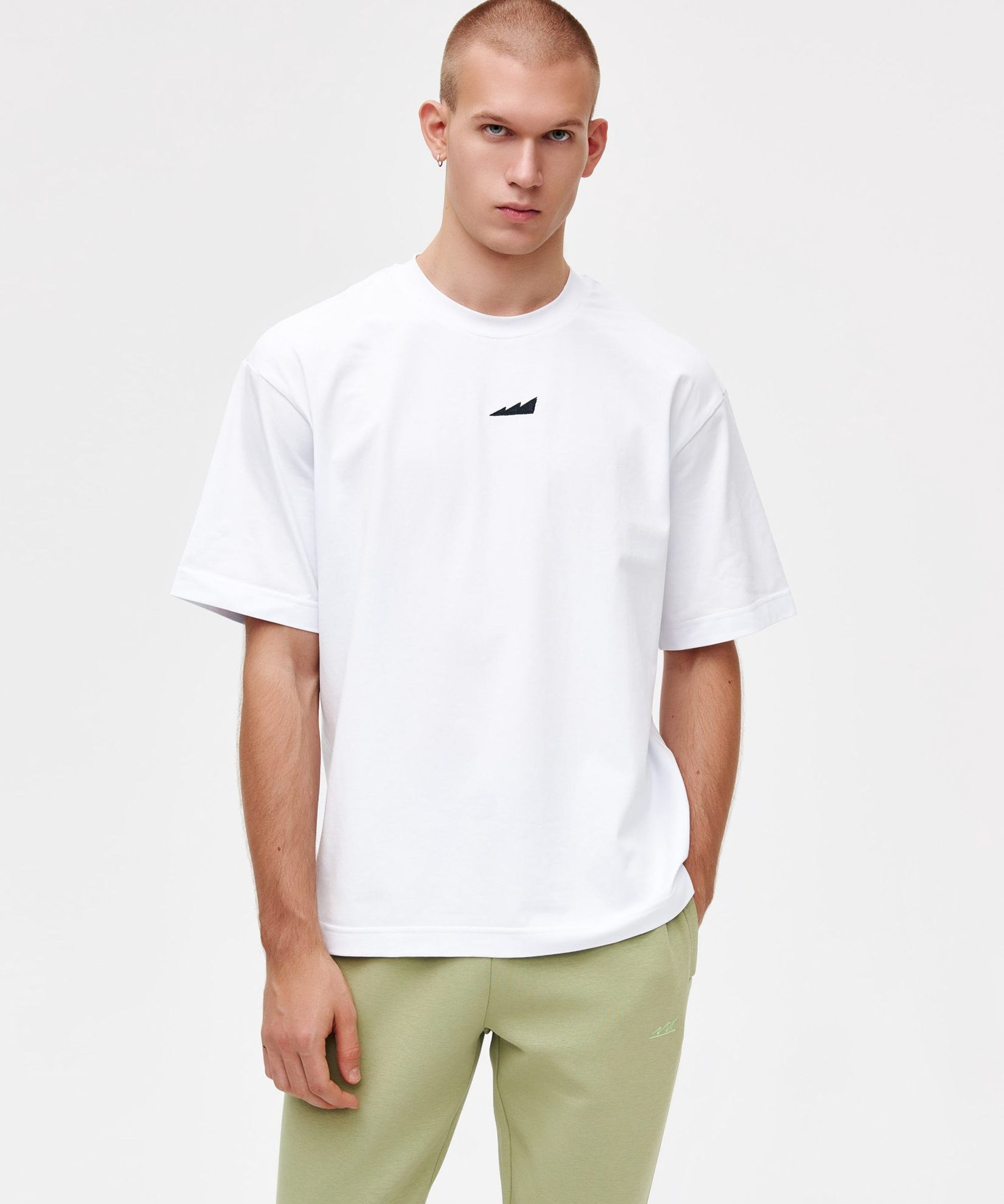 Мужская футболка oversize силуэта выполнена из материала, в состав которого входит 92% хлопка и 8% эластана, за счет чего футболка более эластичная и лучше держит форму. На груди расположена тональная вышивка с логотипом бренда, на плече - принт. Модель представлена в трех классических цветах: серый меланж, темно-синий и белый. Футболка легко сочетается как со спортивной так и с повседневной одеждой, и является незаменимой в вашем базовом гардеробе.