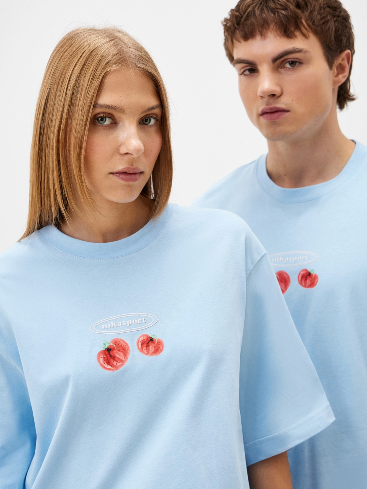 Футболка oversize силуэта из лимитированной коллекции "Фрукты". Выполнена из материала с эффектом peach, в составе которого 92% хлопка и 8% эластана, за счет чего футболка лучше держит форму и очень мягкая на ощупь. Спущенная линия плеча делает крой футболки более молодежным. Представлены в 3 цветах: классический белый, нежный голубой и ваниль, каждая с уникальным дизайнерским тематическим принтом на спине. Созданы для повседневных образов в спортивном стиле и позволяют создавать крутые комплекты с любой вещью в вашем гардеробе.
