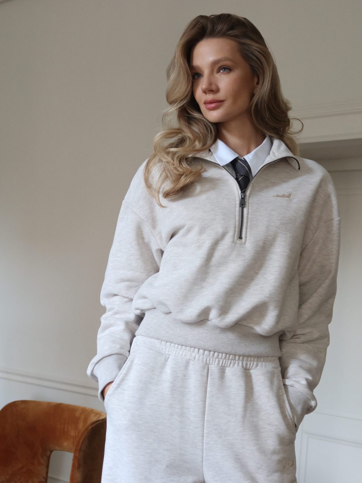 Женский джемпер half-zip с воротником-стойкой и контрастным логотипом-вышивкой на груди. Джемпер выполнен из материала с эффектом peach, в состав которого входит 90% хлопка и 10% полиэстра, поэтому джемпер невероятно мягкий и приятный на ощупь. Данная модель подчеркивает ваш уникальный стиль и дополнит любой ваш образ.