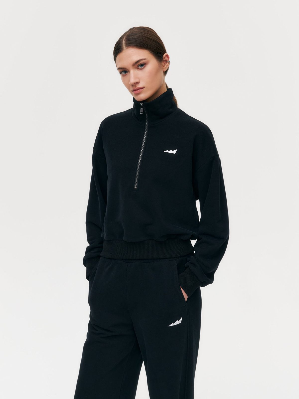 Женский джемпер half-zip с воротником-стойкой и контрастным логотипом-вышивкой на груди. Джемпер выполнен из материала с эффектом peach, в состав которого входит 90% хлопка и 10% полиэстера, поэтому джемпер невероятно мягкий и приятный на ощупь. Данная модель подчеркивает ваш уникальный стиль и дополнит любой ваш образ.