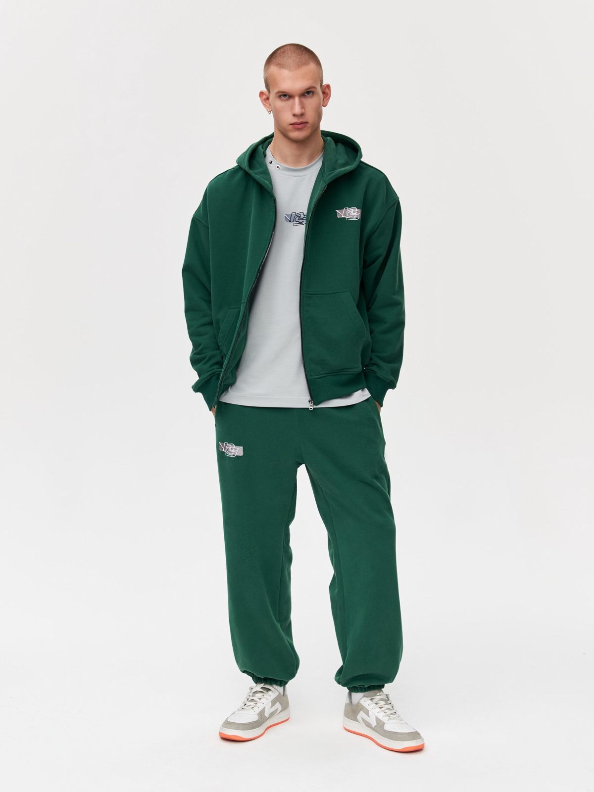 Мужские брюки-джоггеры свободного кроя из коллекции Oops выполнены из материала с эффектом peach, в составе которого 90% хлопка 10% полиэстера, что делает брюки невероятно мягкими, обеспечивает отличную посадку и долговечность изделия. Брюки имеют два боковых кармана для хранения личных вещей, эластичный шнур в поясе для регулировки посадки и принт в стиле Oops с логотипом бренда спереди и сзади на левой ноге. За счет свободного кроя брюки смотрятся трендово и отлично дополнят любой ваш образ. В комплекте к брюкам в ассортименте представлен худи M4OPS34-GRK/GRN.