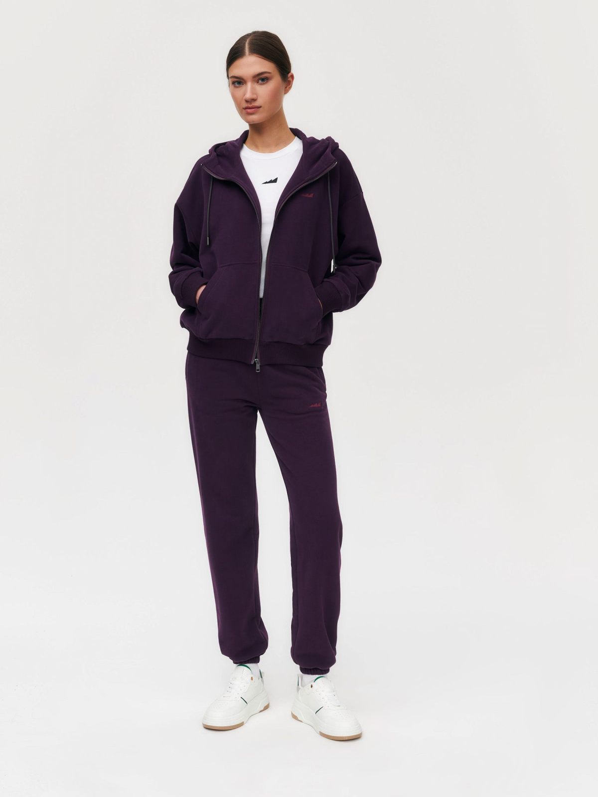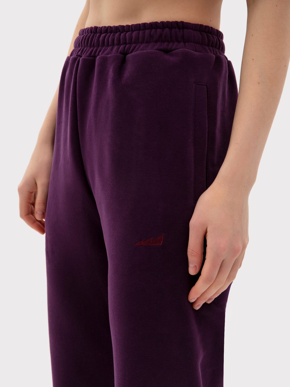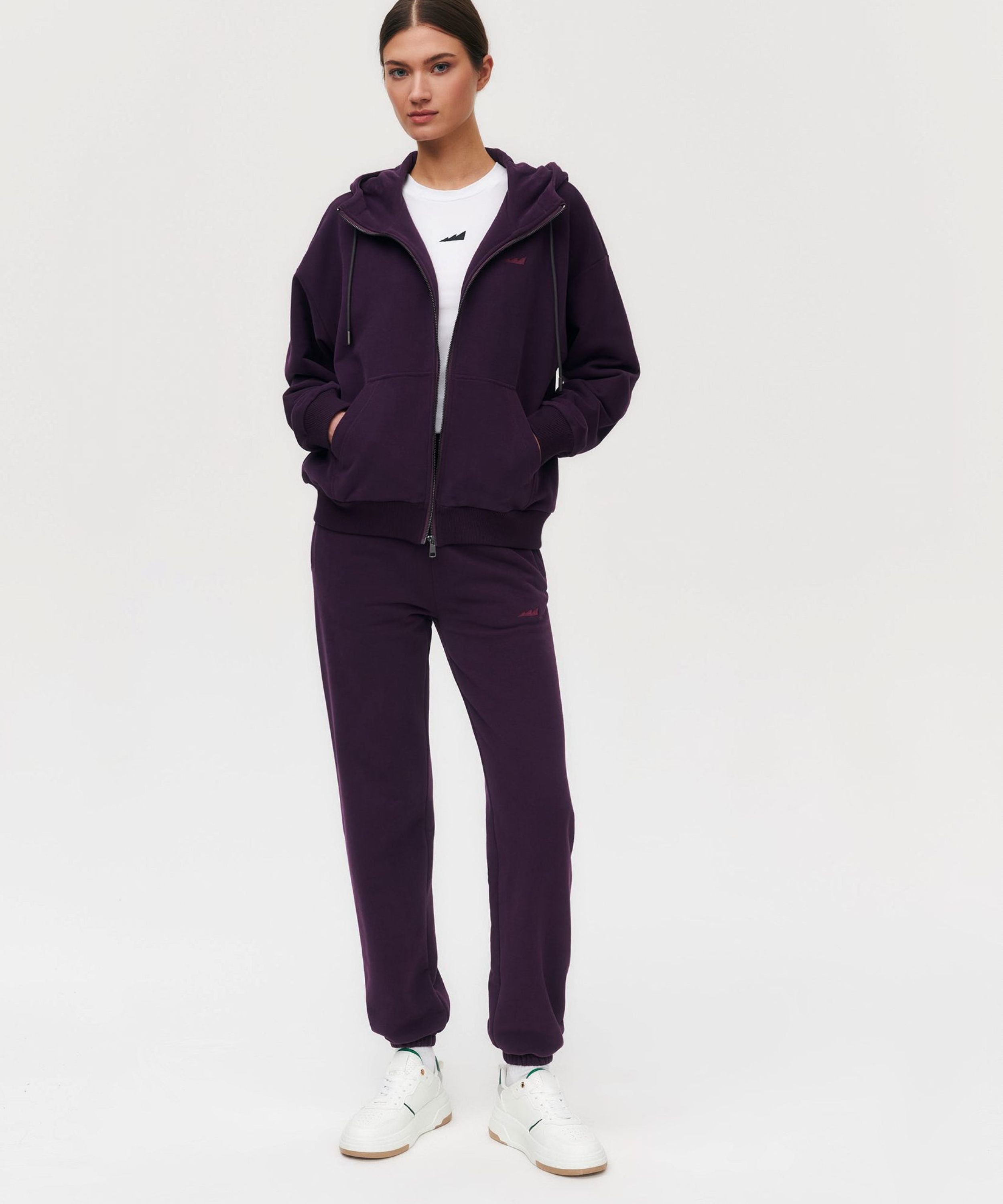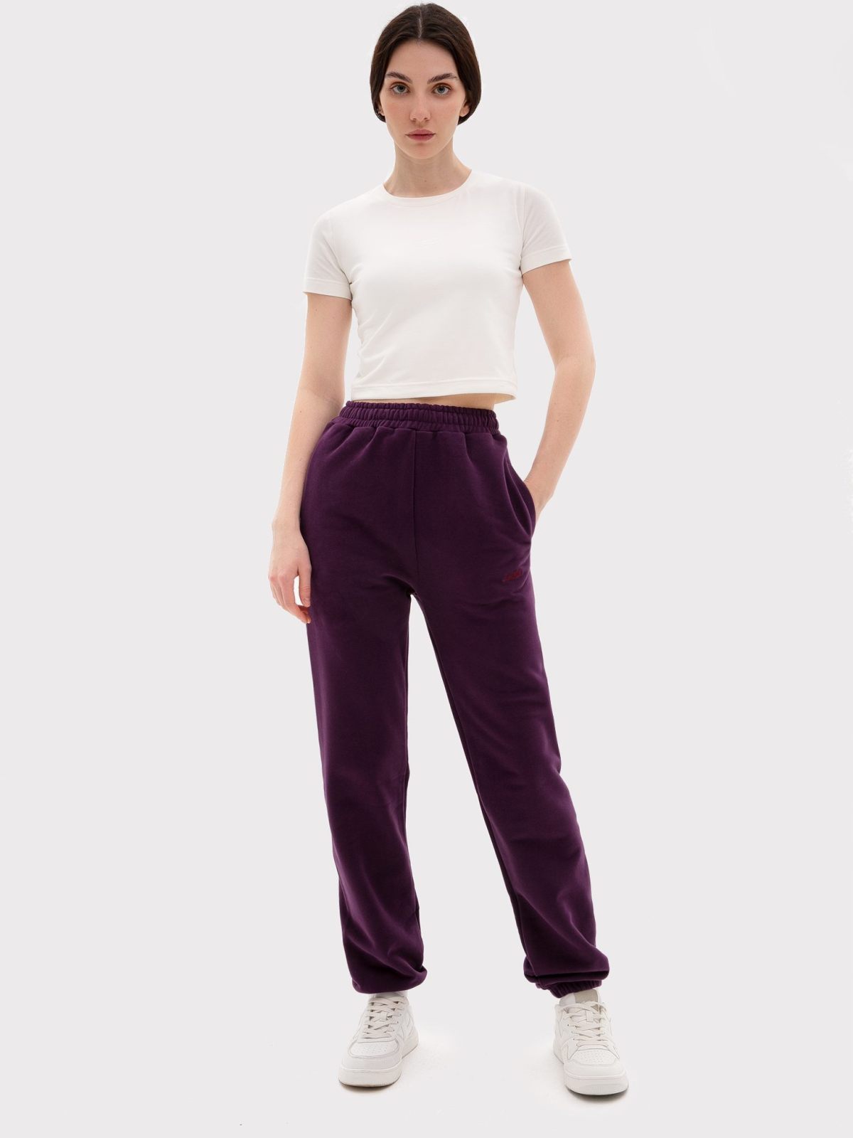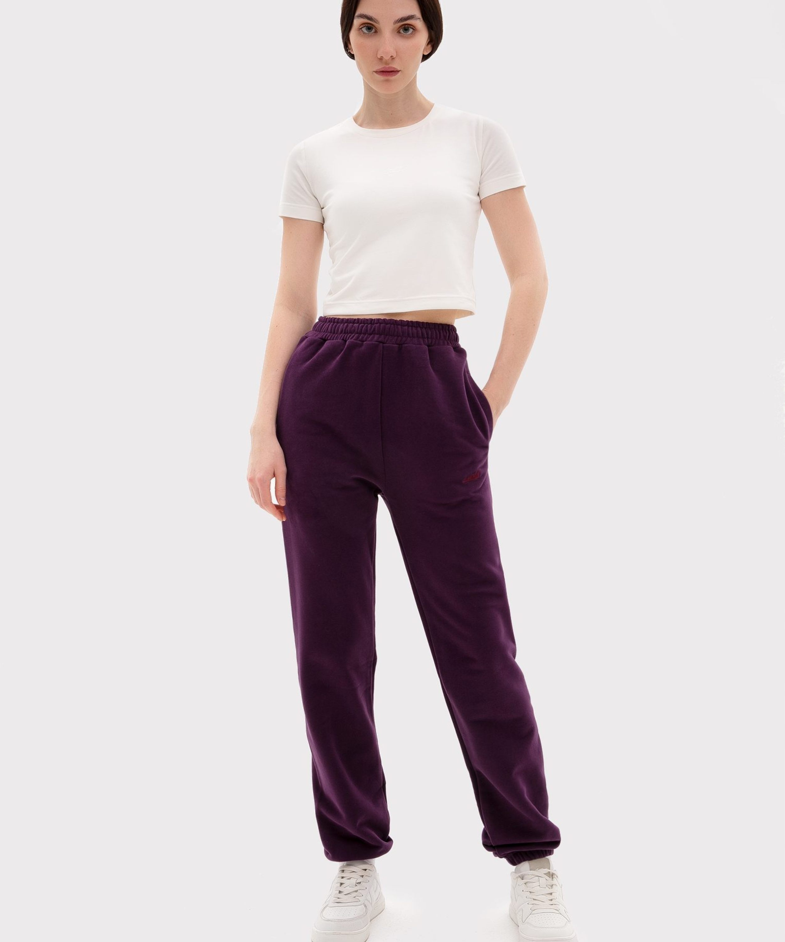 Женские брюки-джоггеры прямого силуэта Loose выполнены из материала, в составе которого 90% хлопка и 10% полиэстера, что обеспечивает отличную посадку и долговечность изделия. Брюки имеют два боковых кармана для хранения личных вещей и лаконичную тональную лого-вышивку на левой ноге. Мягкий, невероятно комфортный материал с peach-эффектом, эластичный шнур в поясе для регулировки посадки и трендовый сливовый цвет делают модель незаменимой и стильной вещью вашего повседневного гардероба.