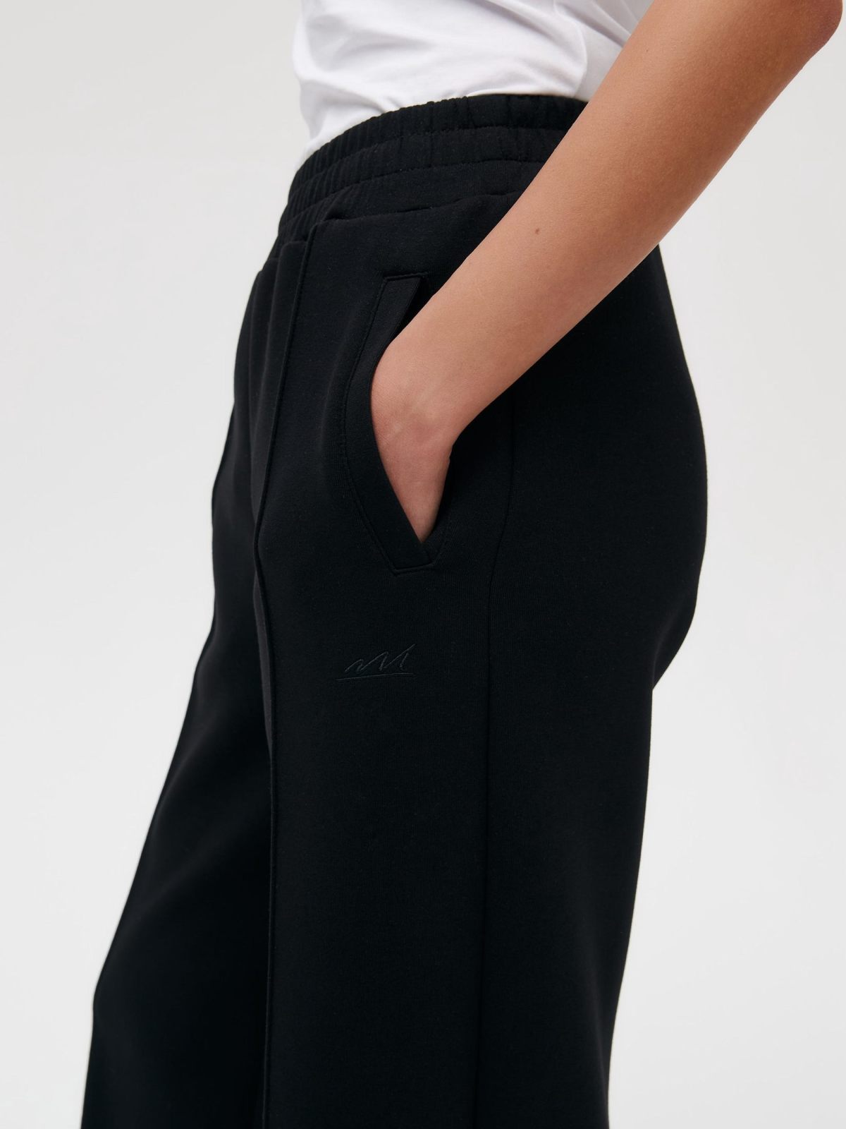 Женские широкие прямые брюки со стрелками в классическом стиле из новой коллекции Classic Pure выполнены из материала скуба, в состав которого входит 82% хлопка, 12% полиэстера, 6% эластана, за счет чего брюки отлично держат форму и долговечные в носке. Благодаря большой доле хлопка в изделии, данная скуба является гипоаллергенной. Посадка брюк - средняя. Брюки представлены в трех цветах: классический черный, нежный голубой и сочный красный. На левой ноге расположена лаконичная тональная вышивка с логотипом бренда. Внизу брюк по бокам имеются небольшие разрезы, что делает силуэт более женственным и игривым. В комплекте к брюкам в ассортименте имеются джемперы W5CLP33, худи на молнии с капюшоном W5CLP34 и жилеты W5CLP21. Костюм отлично подойдет не только для повседневных образов, но и для офиса, так как отлично сочетаются с классической белой рубашкой.