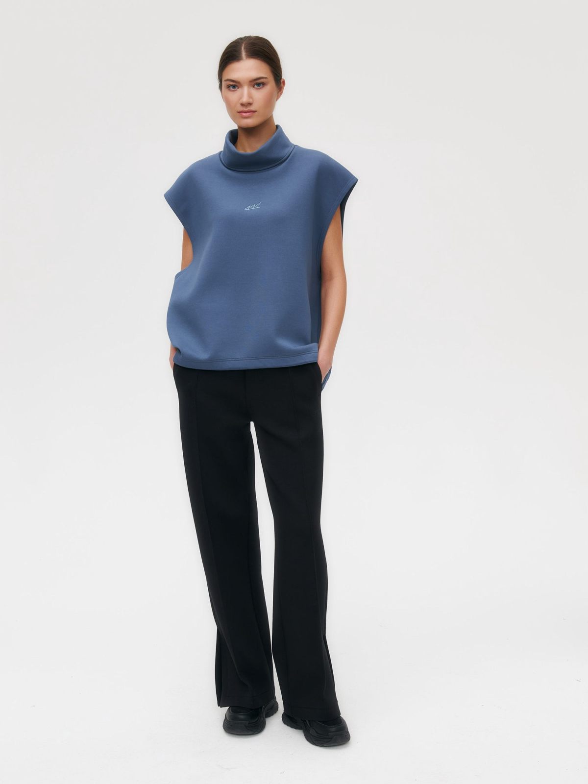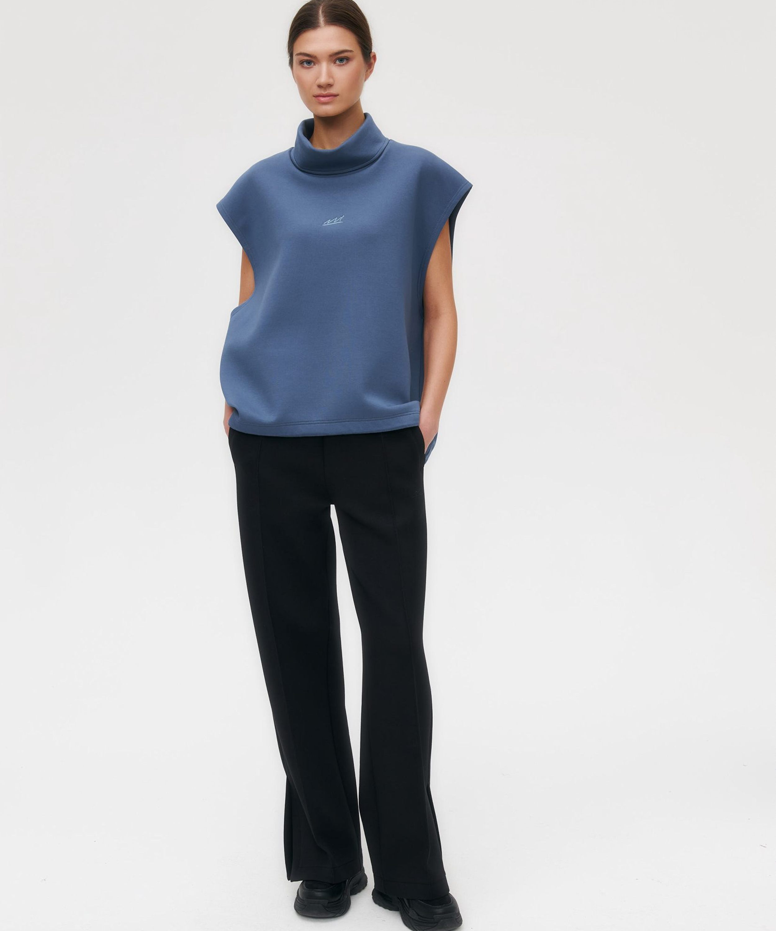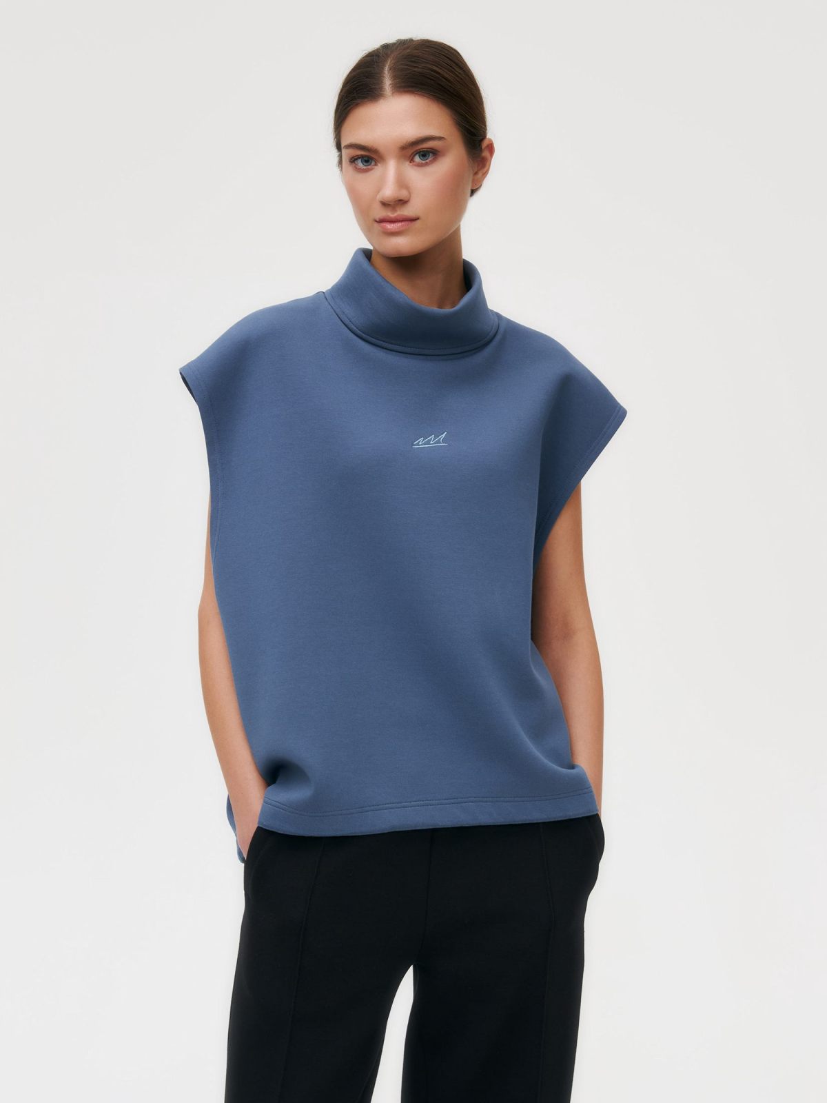 Oversize жилет необычного кроя из новой коллекции Classic Pure выполнен из материала скуба, в состав которого входит 82% хлопка, 12% полиэстера, 6% эластана, за счет чего жилет отлично держит форму и долговечный в носке. Благодаря большой доле хлопка в изделии, данная скуба является гипоаллергенной. Жилет представлен в двух цветах: классический черный и туманный синий. Жилет имеет высокий ворот, интересную деталь с задний стороны воротника, корд-систему утяжки по низу, что позволяет экспериментировать с силуэтом. По центру на груди расположена лаконичная тональная вышивка с логотипом бренда. Жилет отлично подойдет не только для повседневных образов, но и для офиса, так как отлично сочетается с классической белой рубашкой.