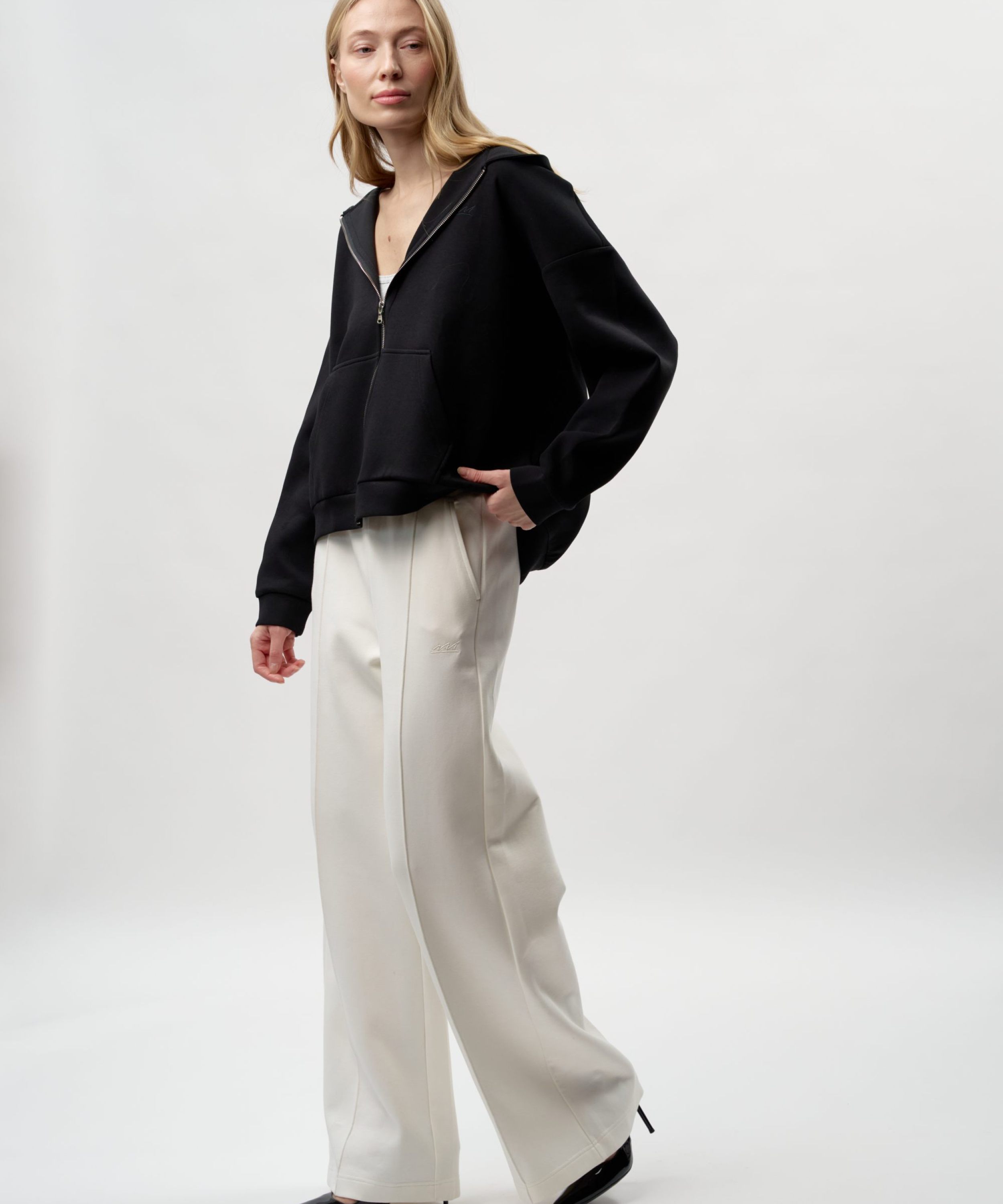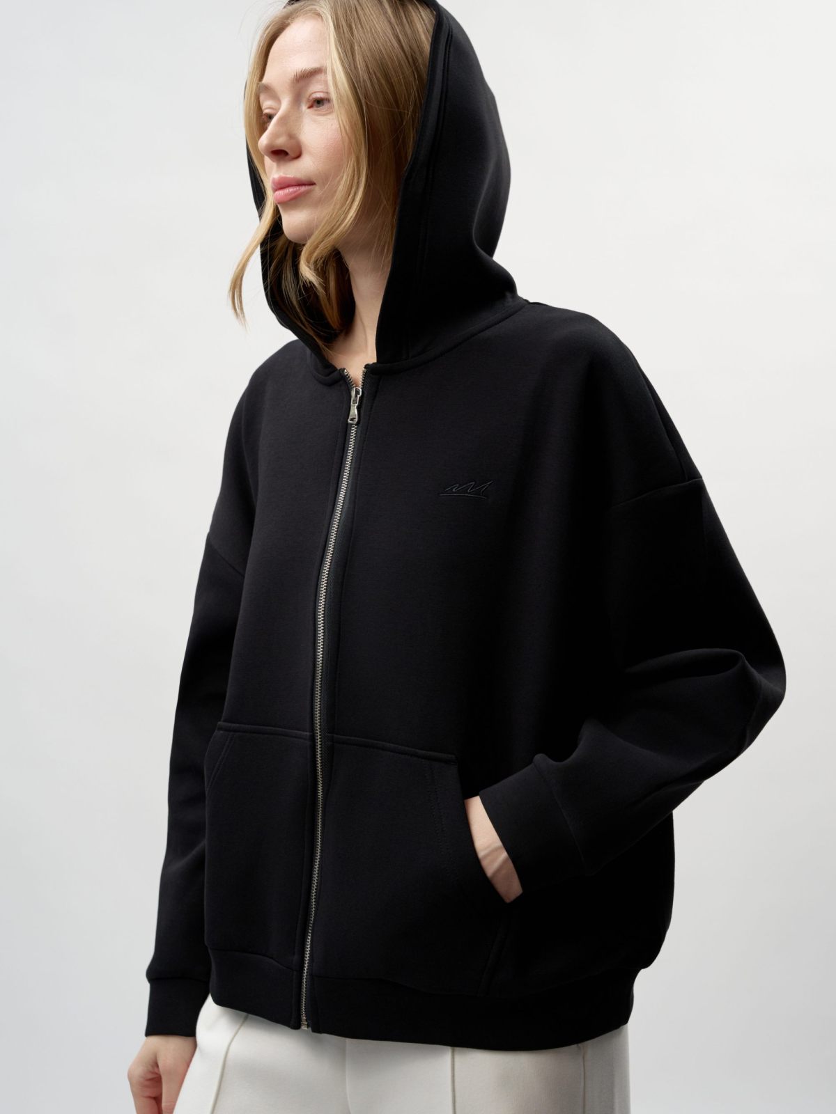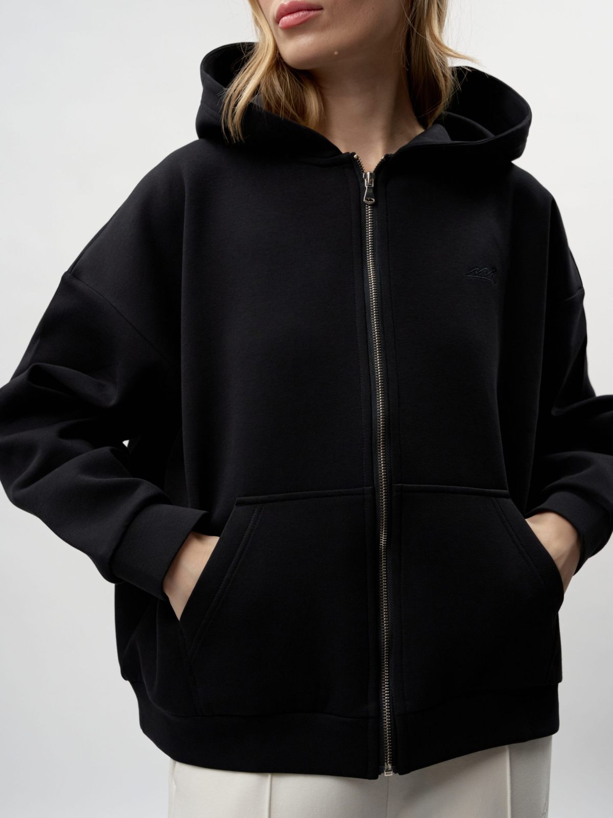 Женский худи на молнии свободного кроя из новой коллекции Classic Pure выполнен из материала скуба, в состав которого входит 82% хлопка, 12% полиэстера, 6% эластана, за счет чего джемпер отлично держит форму и долговечный в носке. Благодаря большой доле хлопка в изделии, данная скуба является гипоаллергенной. Джемпер представлен в двух цветах - нежный голубой и классический черный. На груди расположена лаконичная тональная вышивка с логотипом бренда. Худи имеет два боковых кармана. В комплекте к худи в ассортименте имеются брюки W5CLP84. Костюм отлично подойдет не только для повседневных образов, но и для офиса, так как отлично сочетаются с классической белой рубашкой.