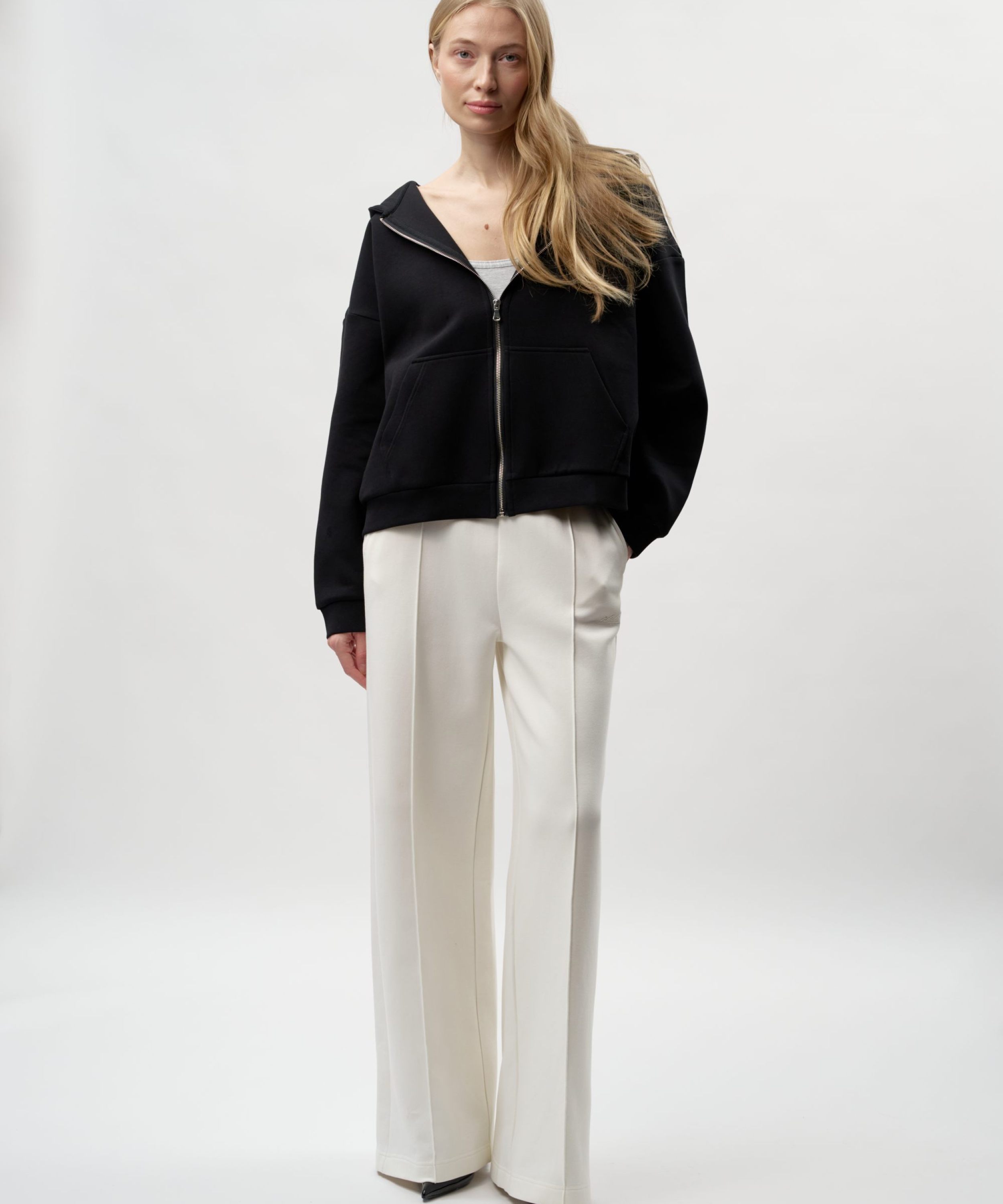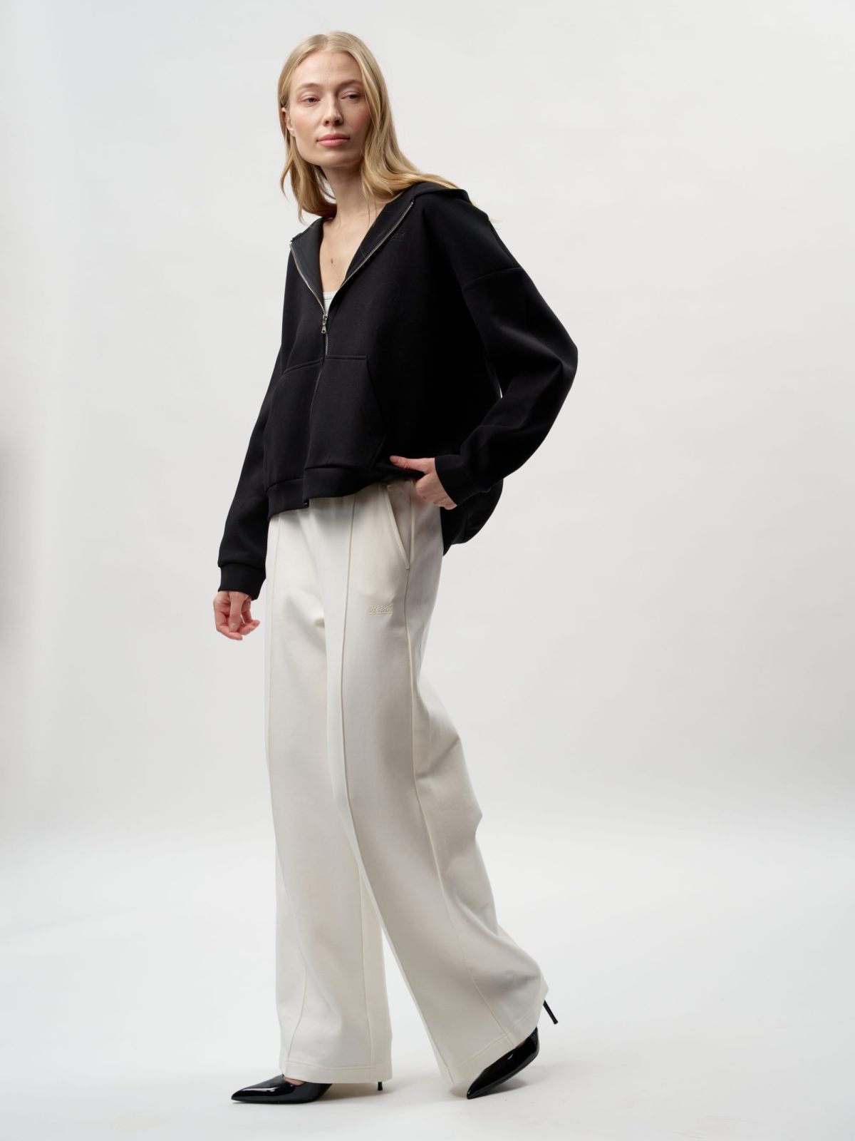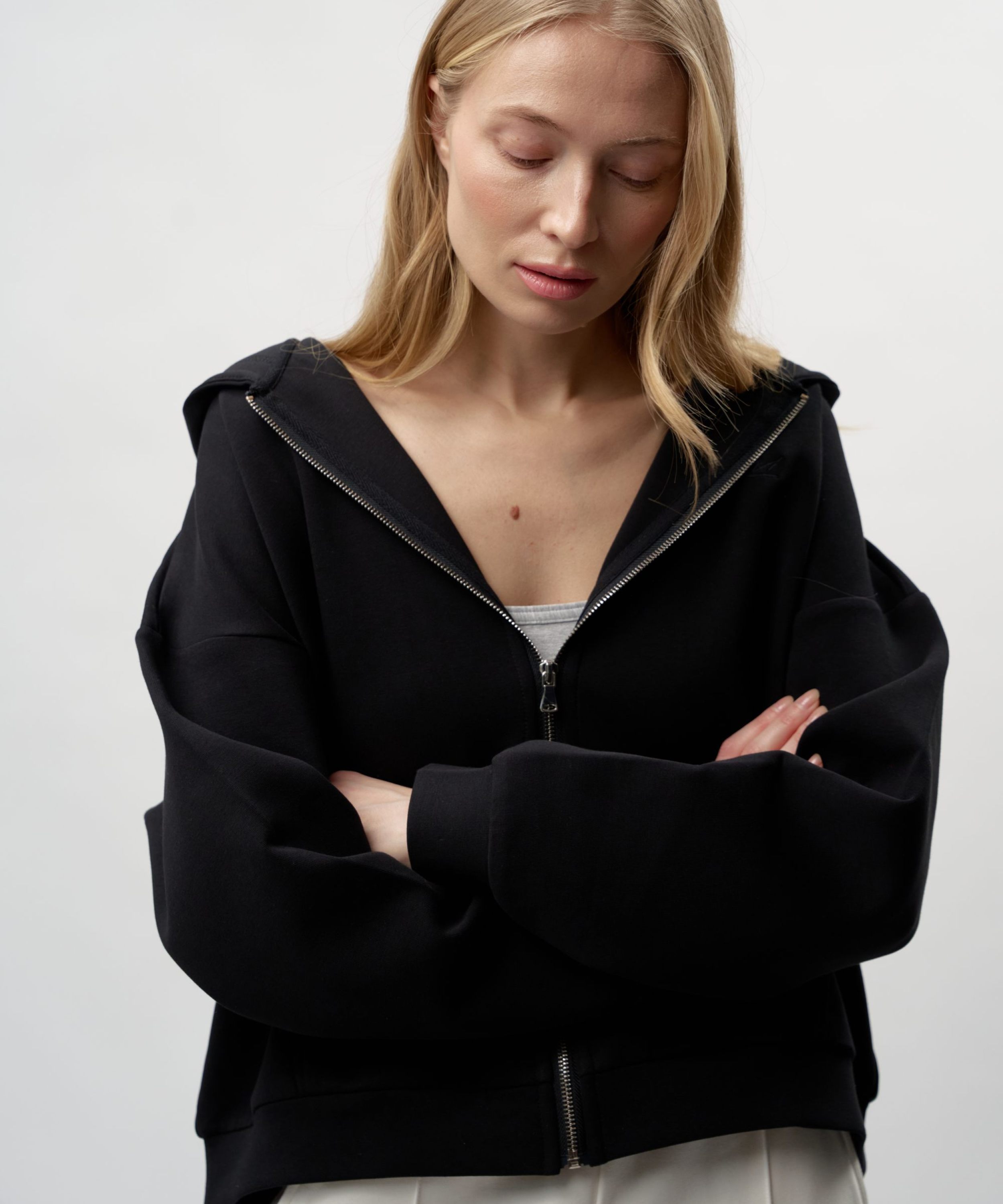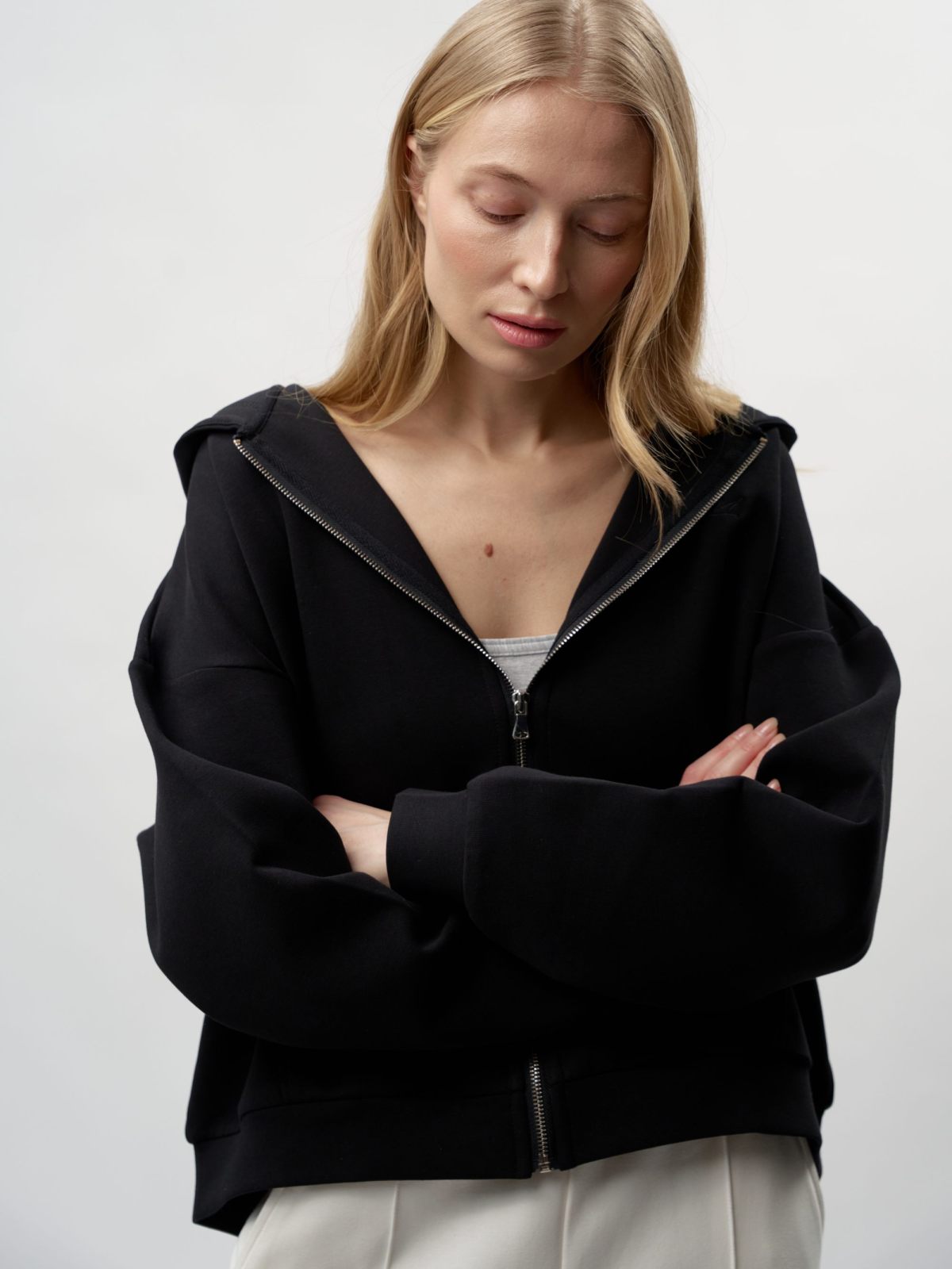 Женский худи на молнии свободного кроя из новой коллекции Classic Pure выполнен из материала скуба, в состав которого входит 82% хлопка, 12% полиэстера, 6% эластана, за счет чего джемпер отлично держит форму и долговечный в носке. Благодаря большой доле хлопка в изделии, данная скуба является гипоаллергенной. Джемпер представлен в двух цветах - нежный голубой и классический черный. На груди расположена лаконичная тональная вышивка с логотипом бренда. Худи имеет два боковых кармана. В комплекте к худи в ассортименте имеются брюки W5CLP84. Костюм отлично подойдет не только для повседневных образов, но и для офиса, так как отлично сочетаются с классической белой рубашкой.