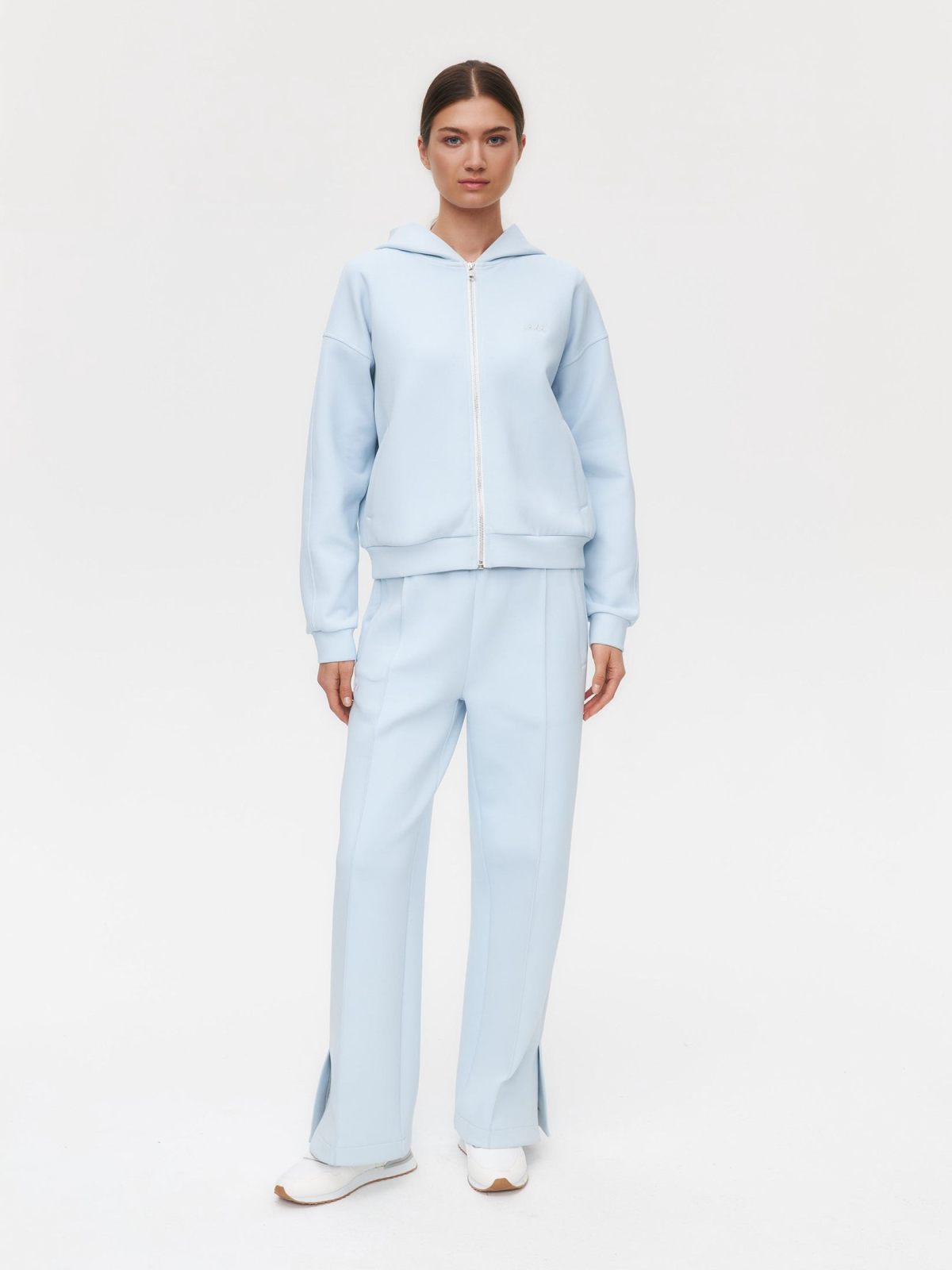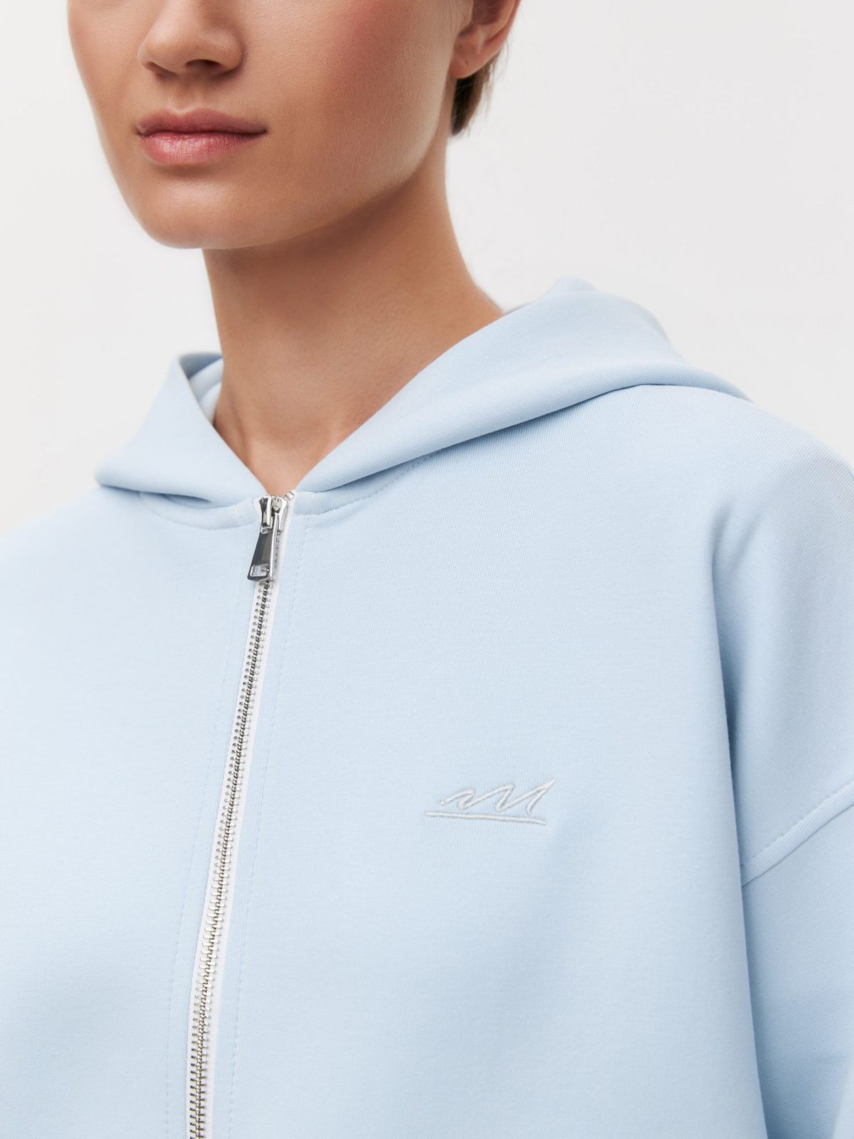 Женский худи на молнии свободного кроя из новой коллекции Classic Pure выполнен из материала скуба, в состав которого входит 82% хлопка, 12% полиэстера, 6% эластана, за счет чего джемпер отлично держит форму и долговечный в носке. Благодаря большой доле хлопка в изделии, данная скуба является гипоаллергенной. Джемпер представлен в двух цветах - нежный голубой и классический черный. На груди расположена лаконичная тональная вышивка с логотипом бренда. Худи имеет два боковых кармана. В комплекте к худи в ассортименте имеются брюки W5CLP84. Костюм отлично подойдет не только для повседневных образов, но и для офиса, так как отлично сочетаются с классической белой рубашкой.